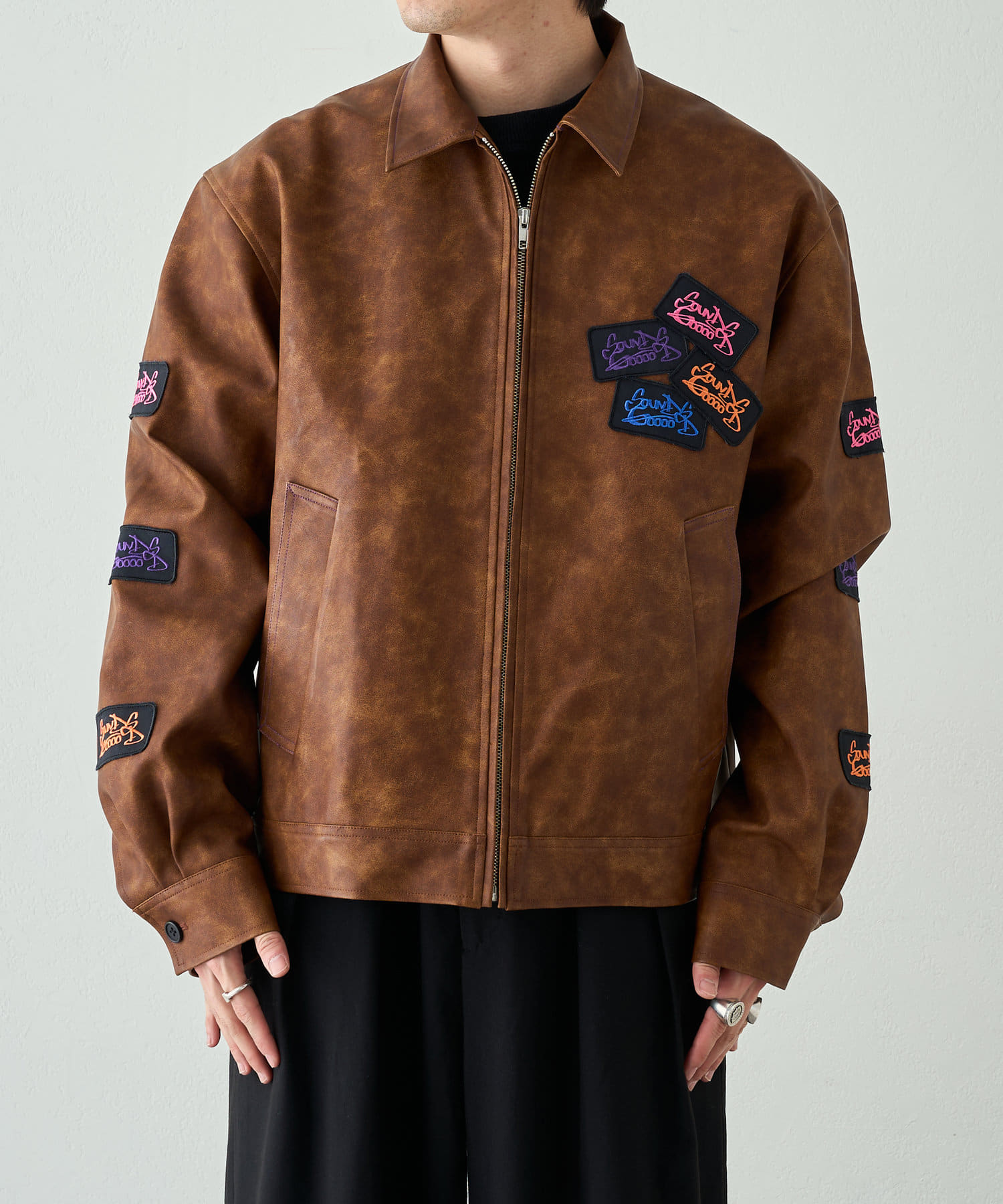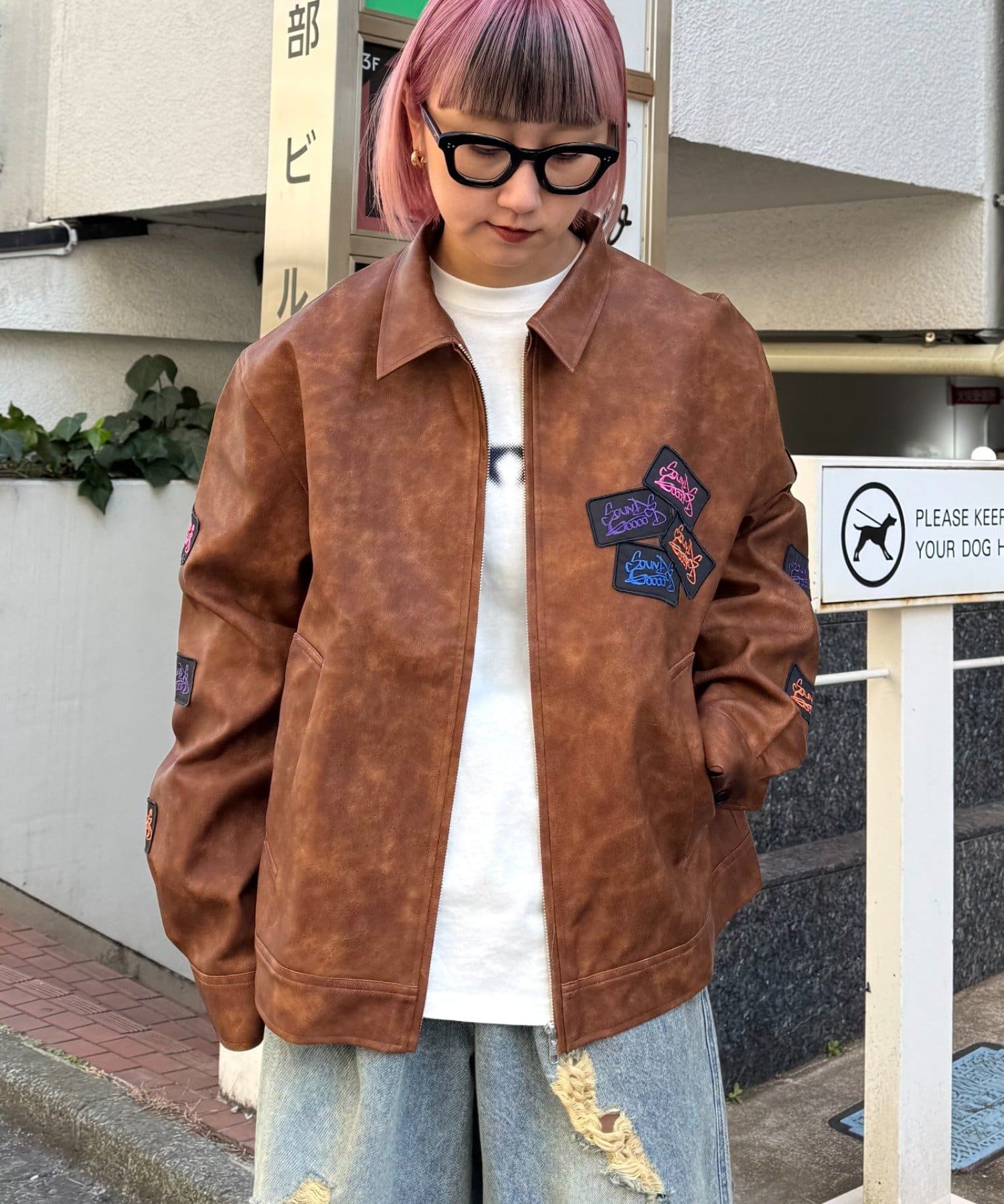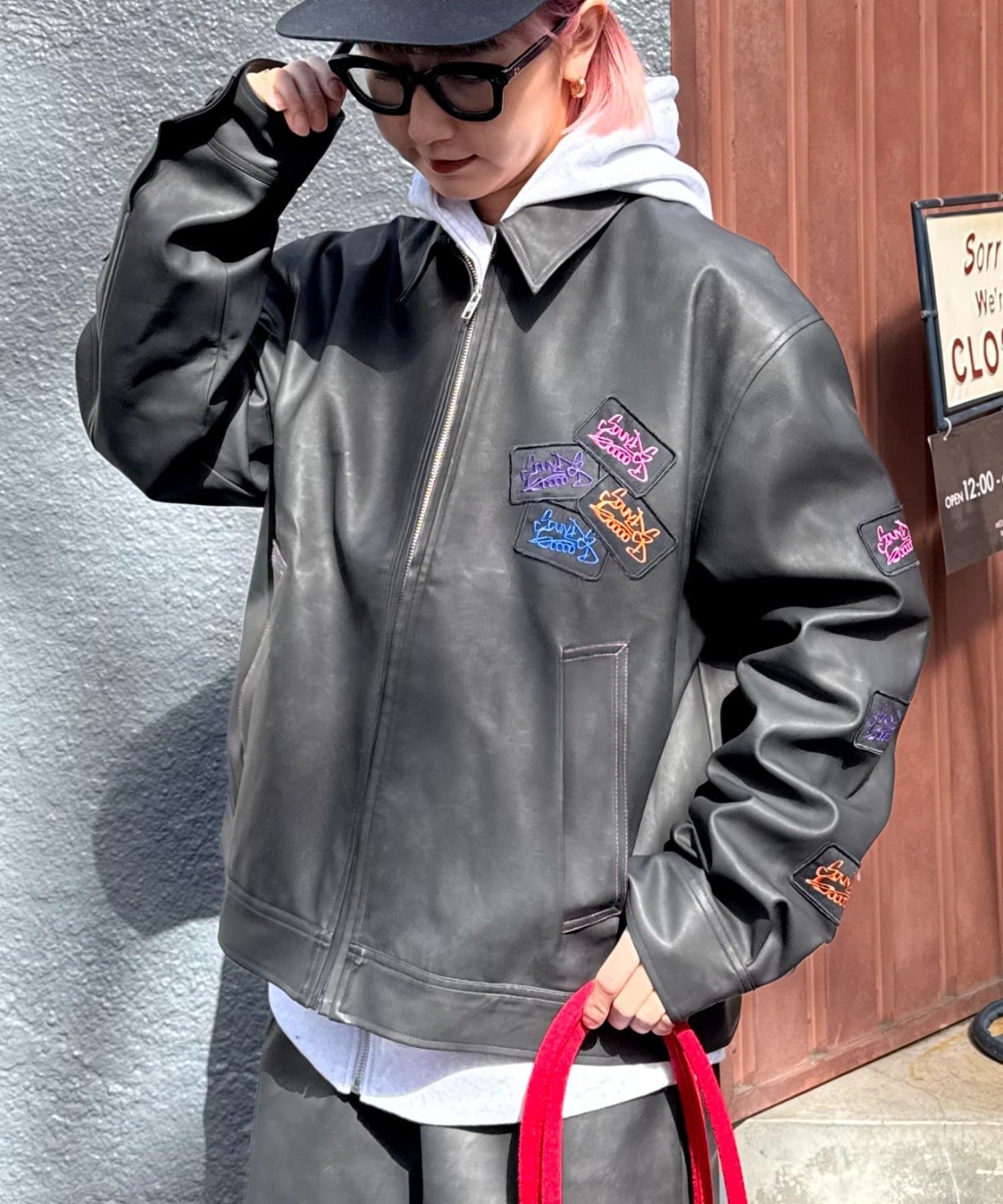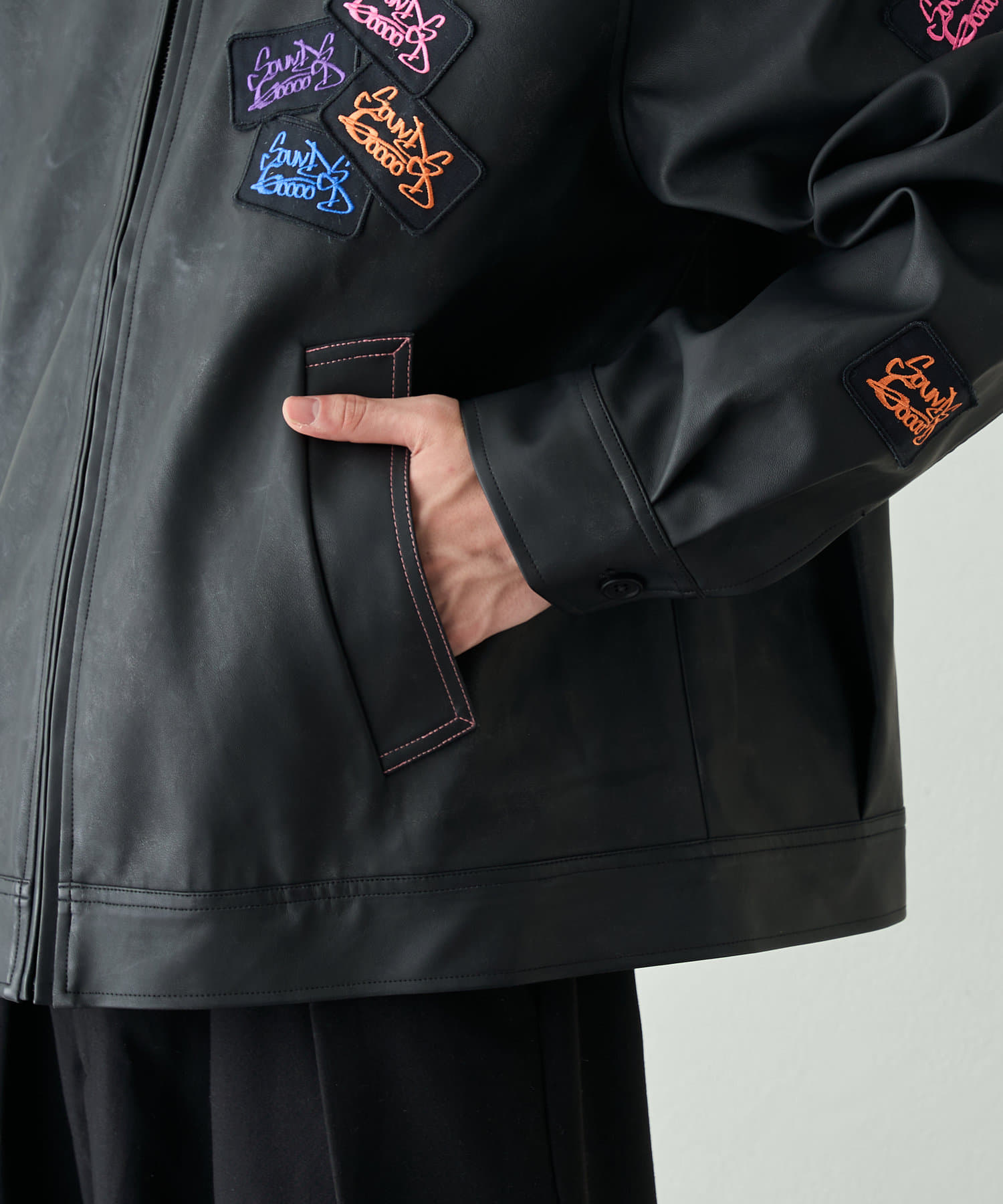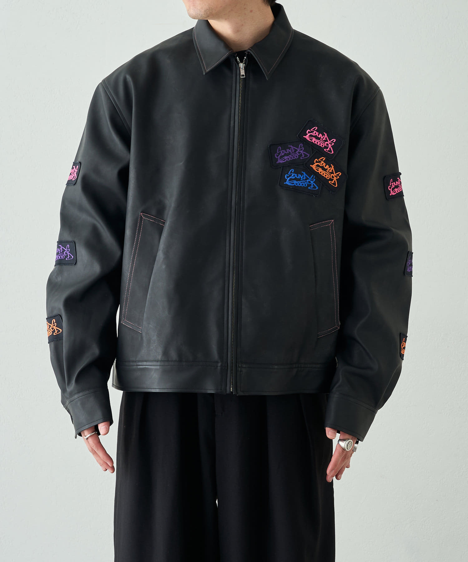 【CIAOPANIC TYPY】ワッペンロゴフェイクレザージャケット