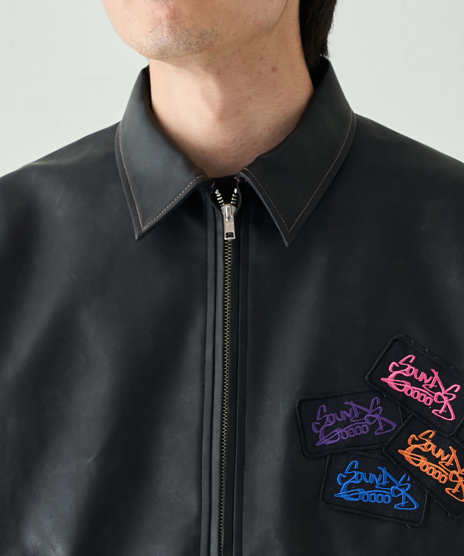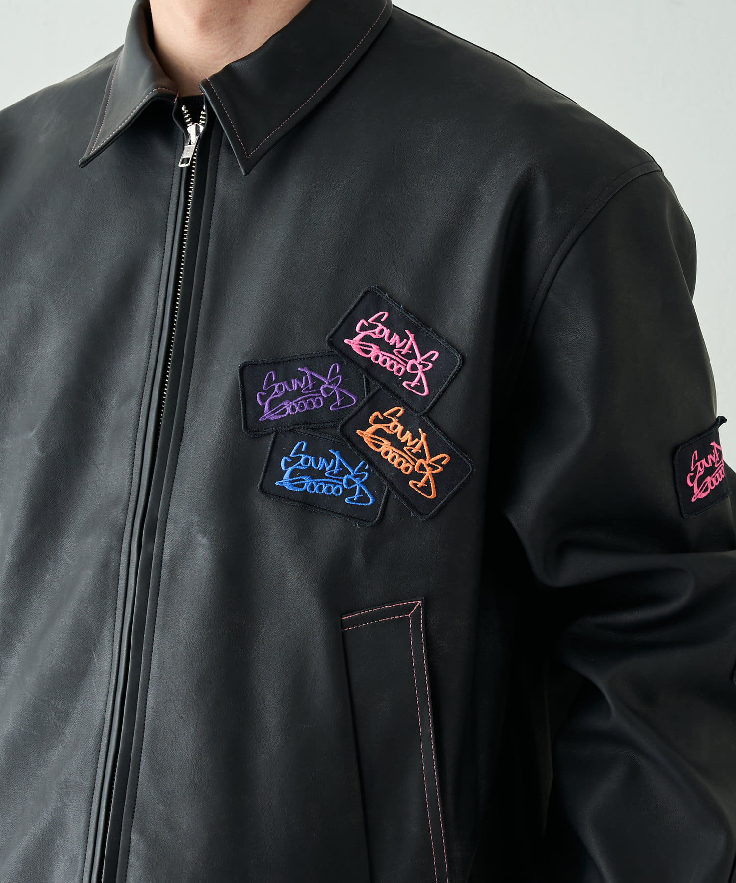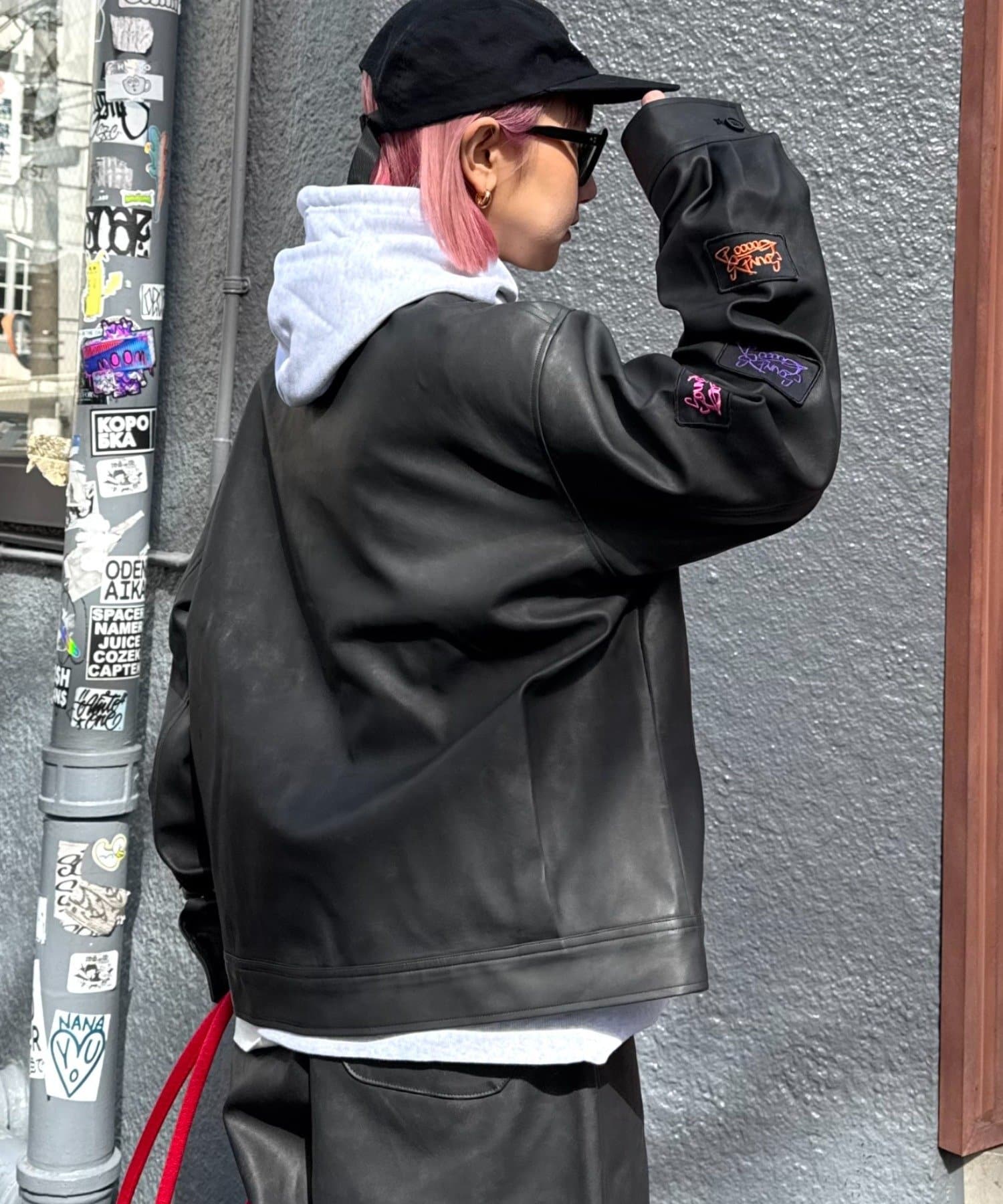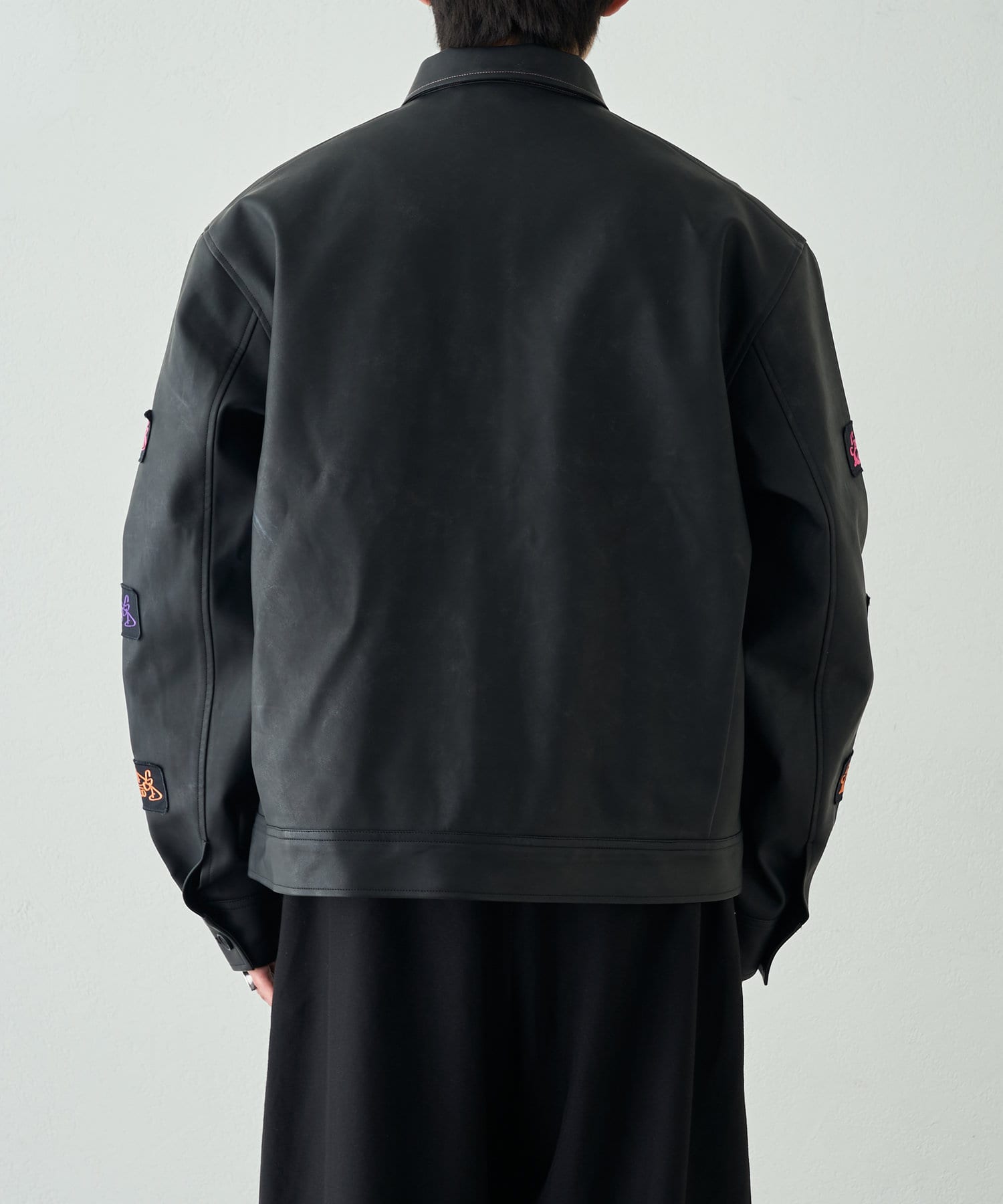 【CIAOPANIC TYPY】ワッペンロゴフェイクレザージャケット