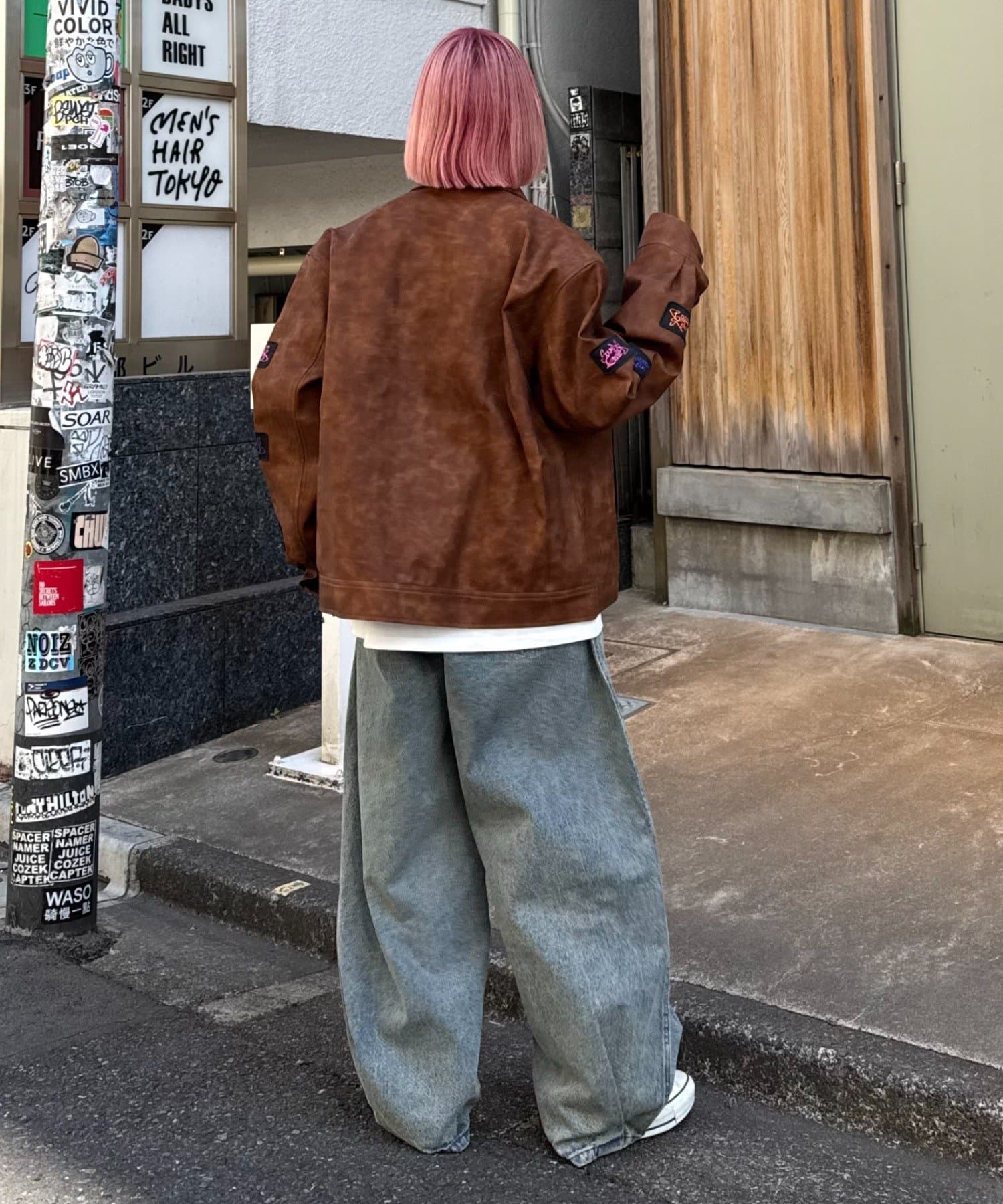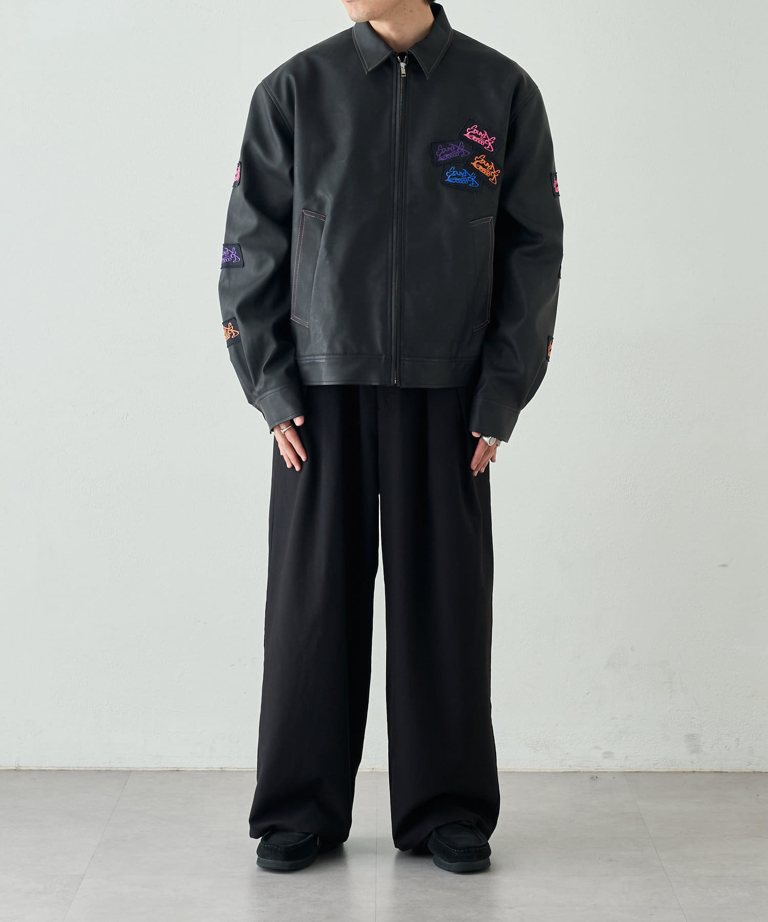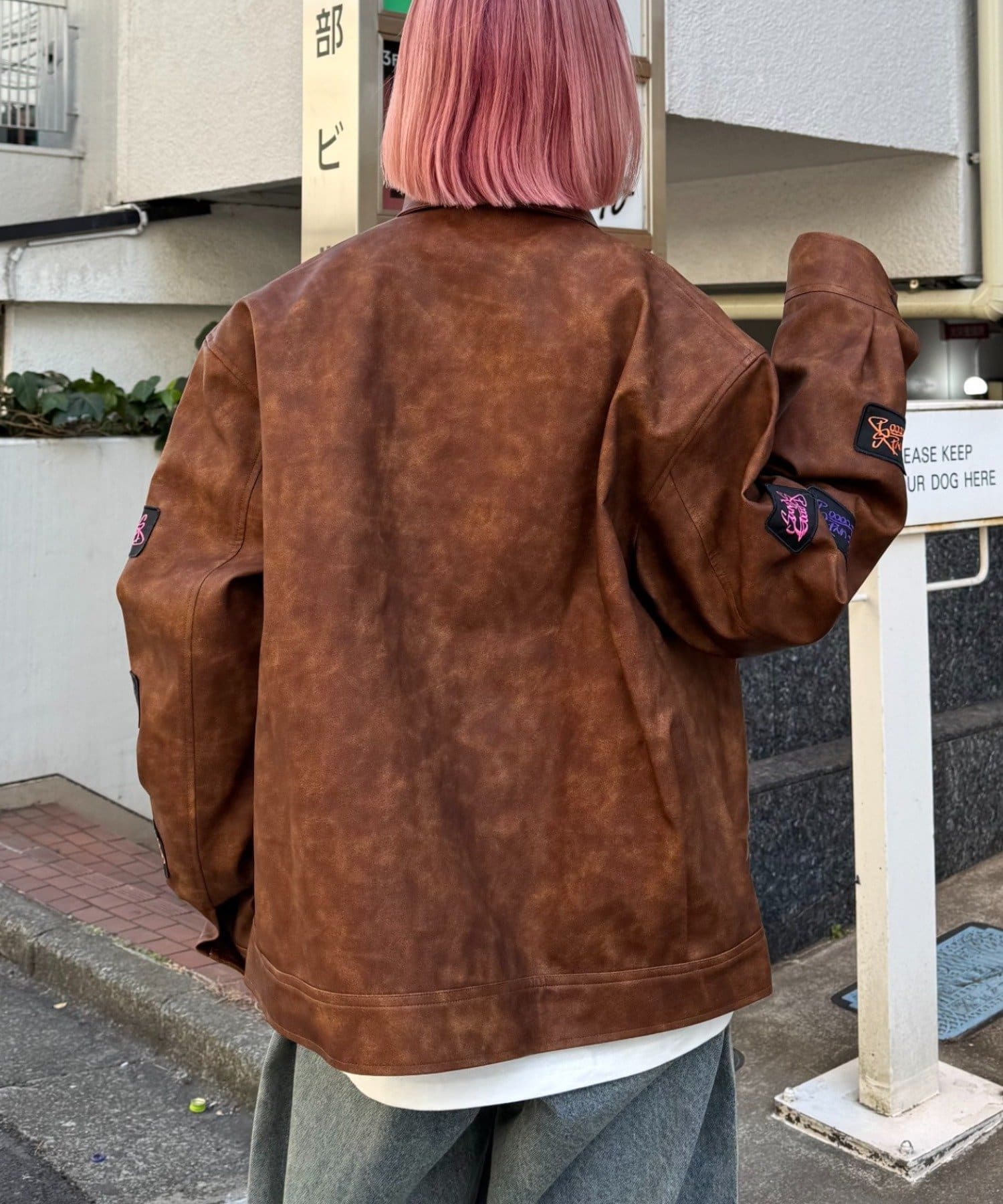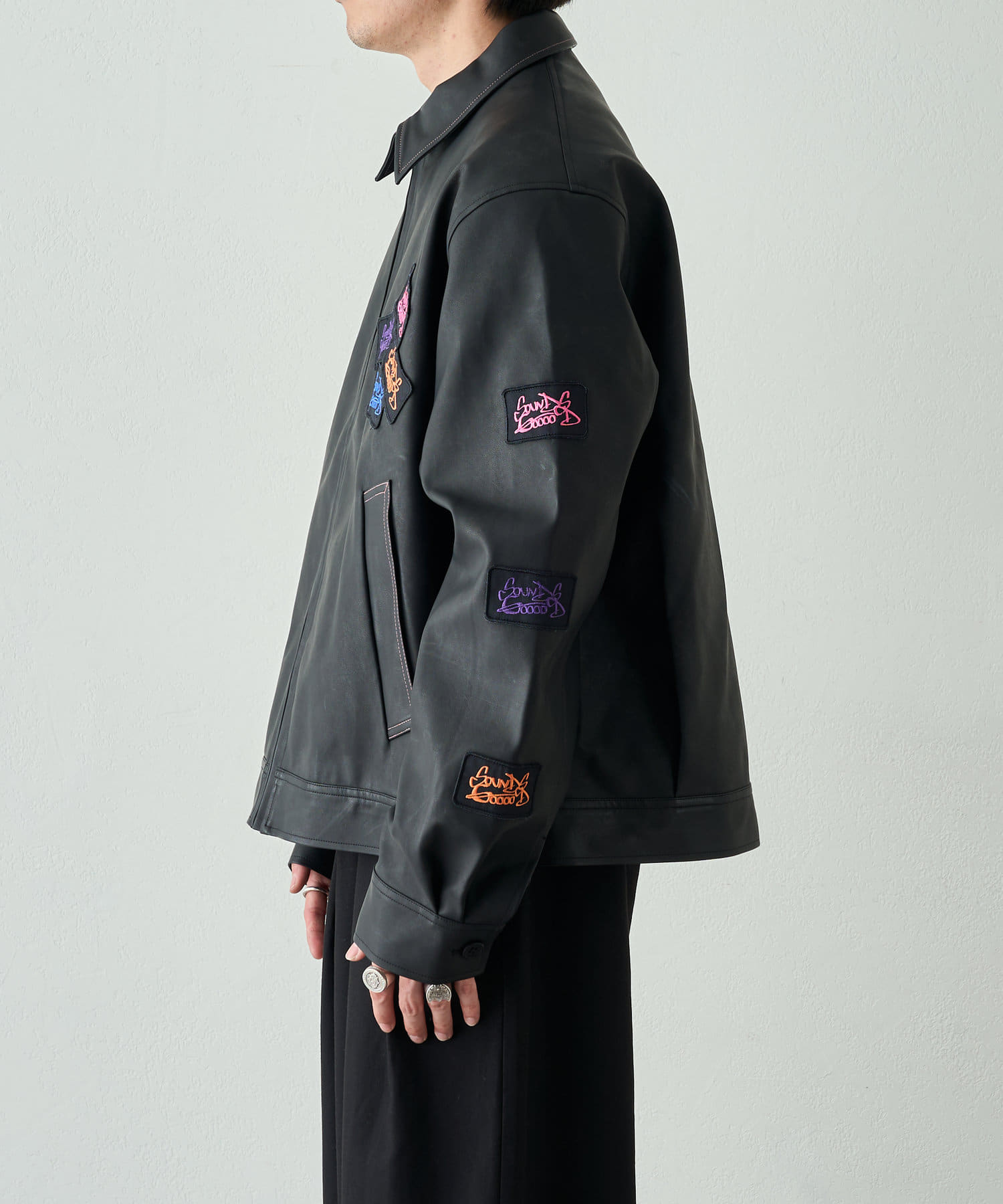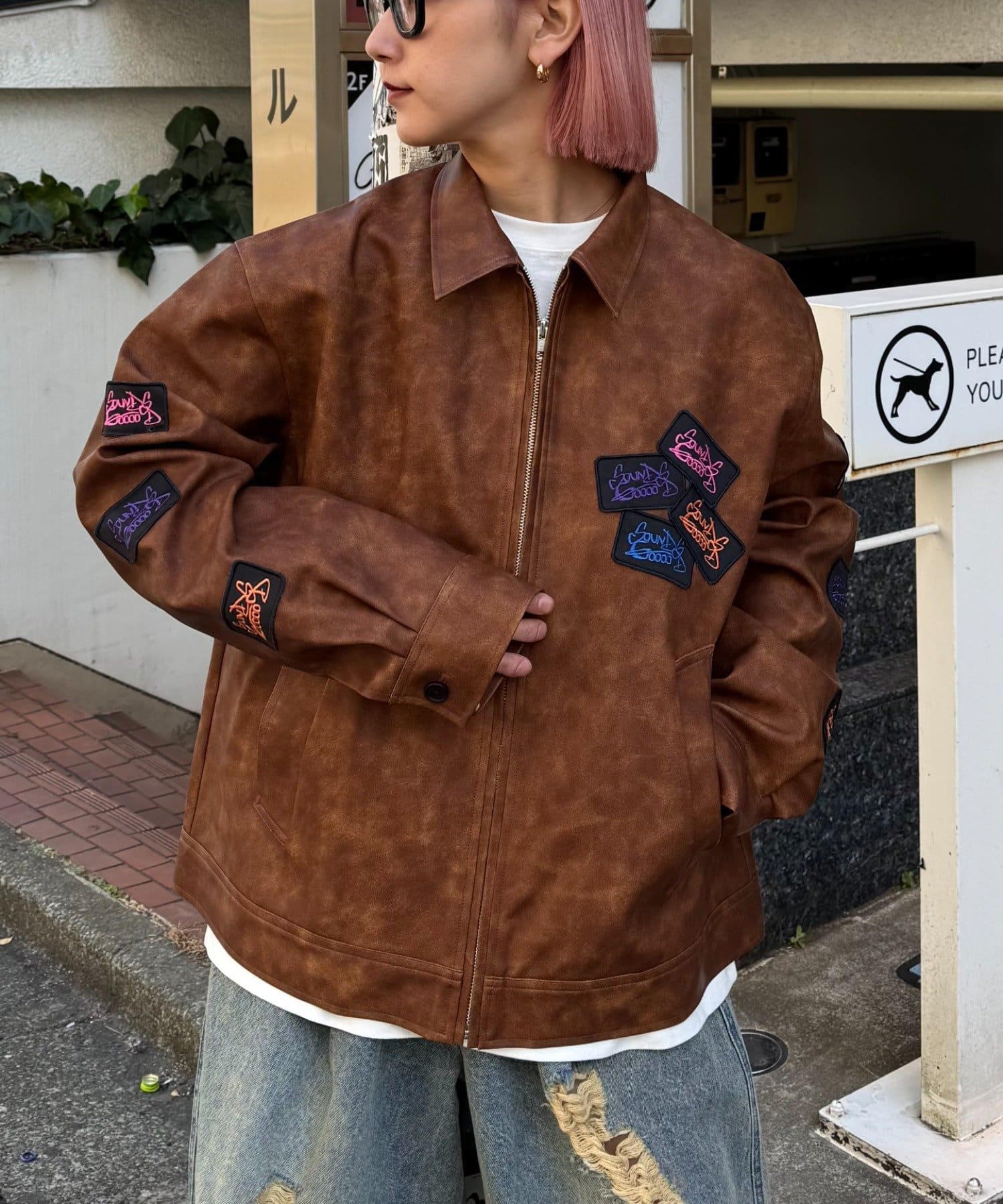 【CIAOPANIC TYPY】ワッペンロゴフェイクレザージャケット