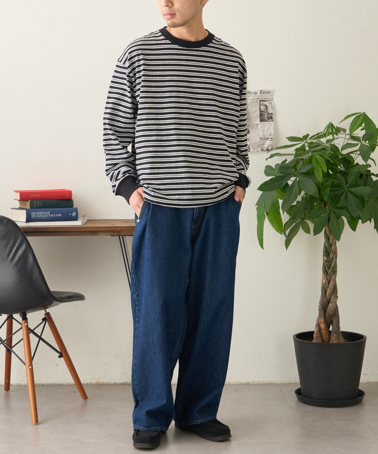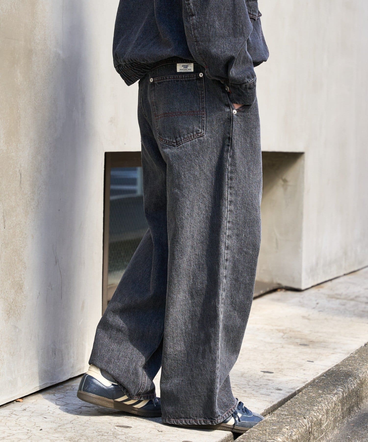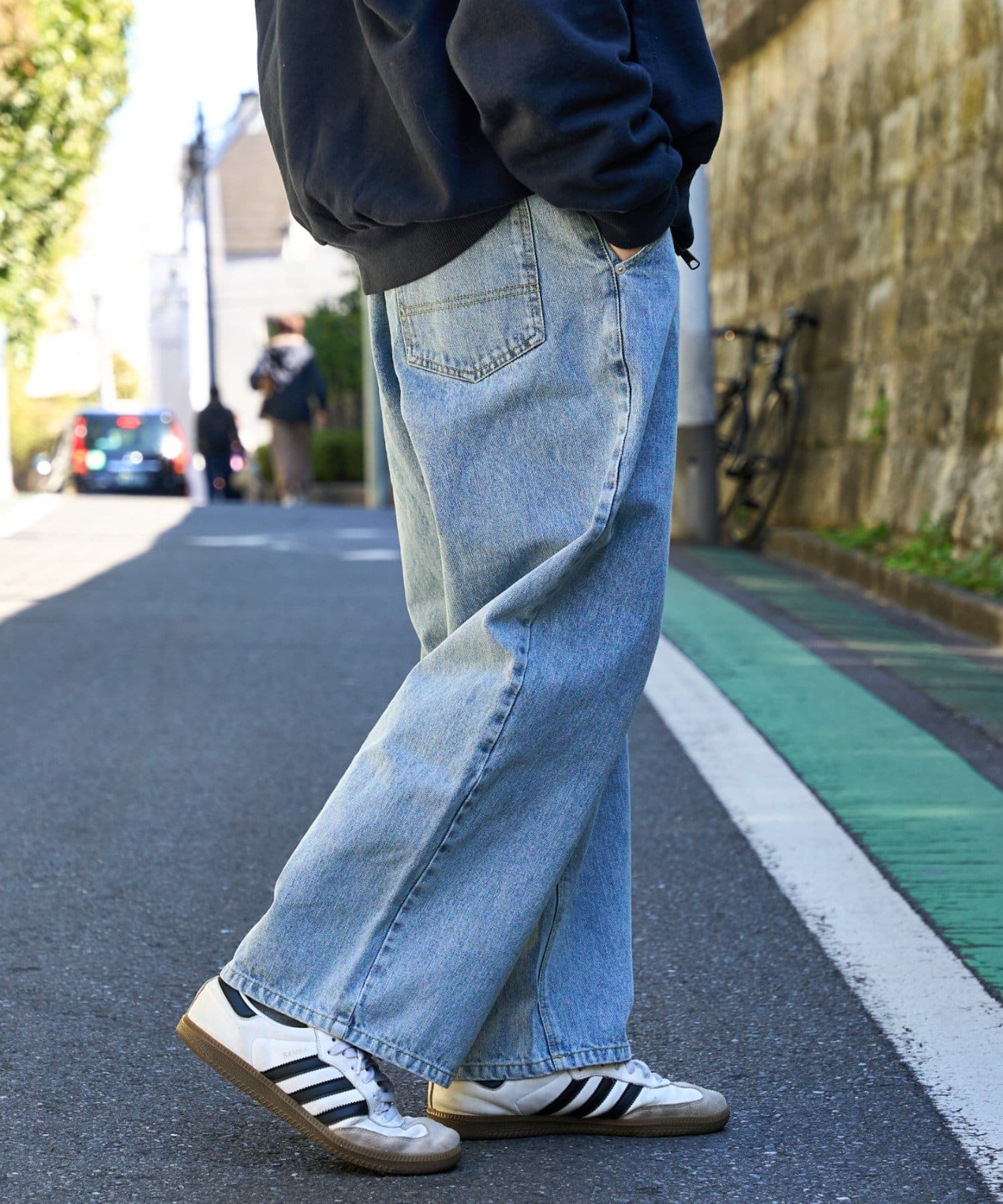 ・ビンテージライクなデザインで印象的なワイドシルエットが今っぽい。