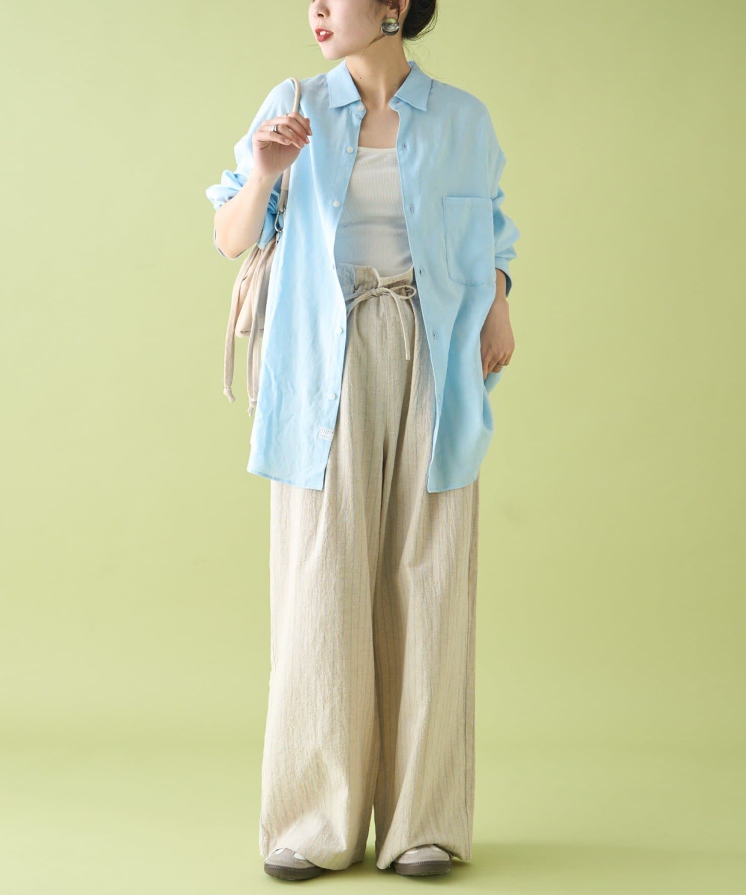 素材は春夏にぴったりの清涼感のでるリネンレーヨンで、春から夏まで着用可能