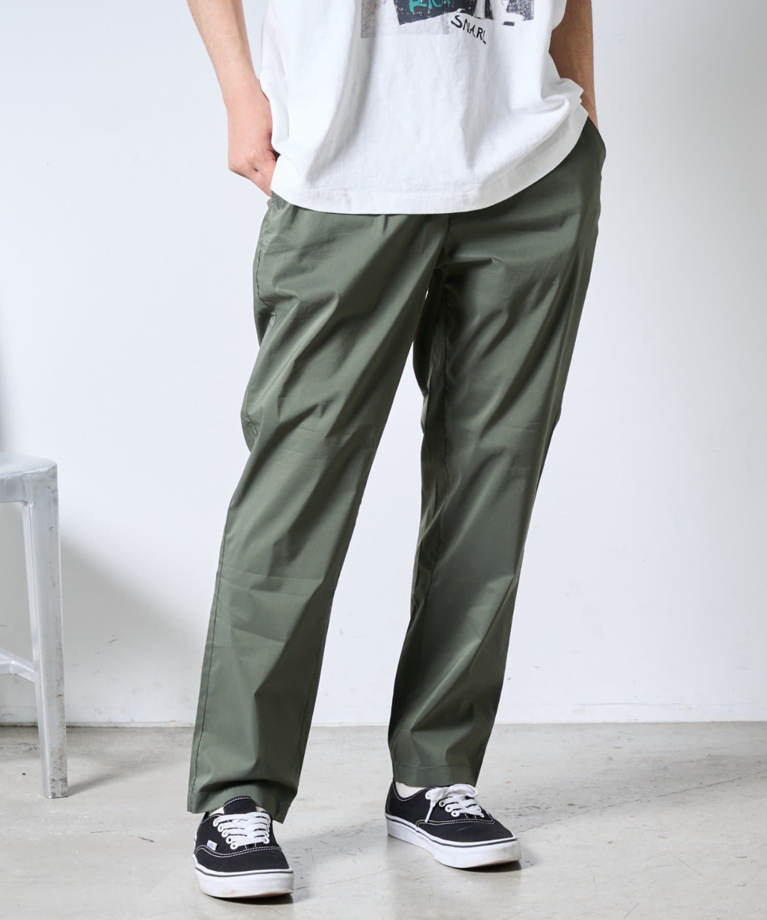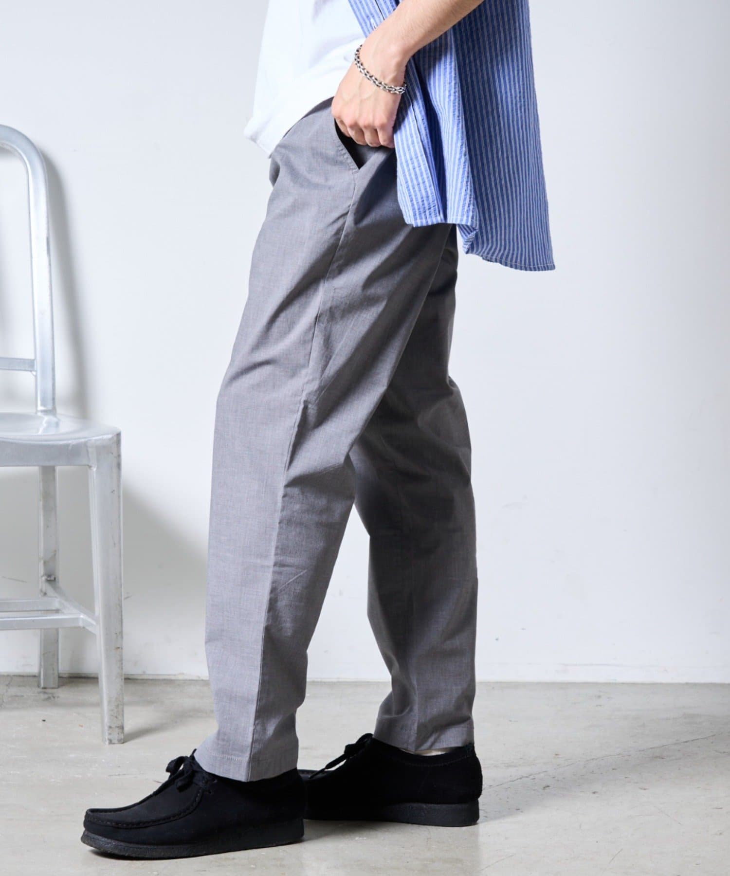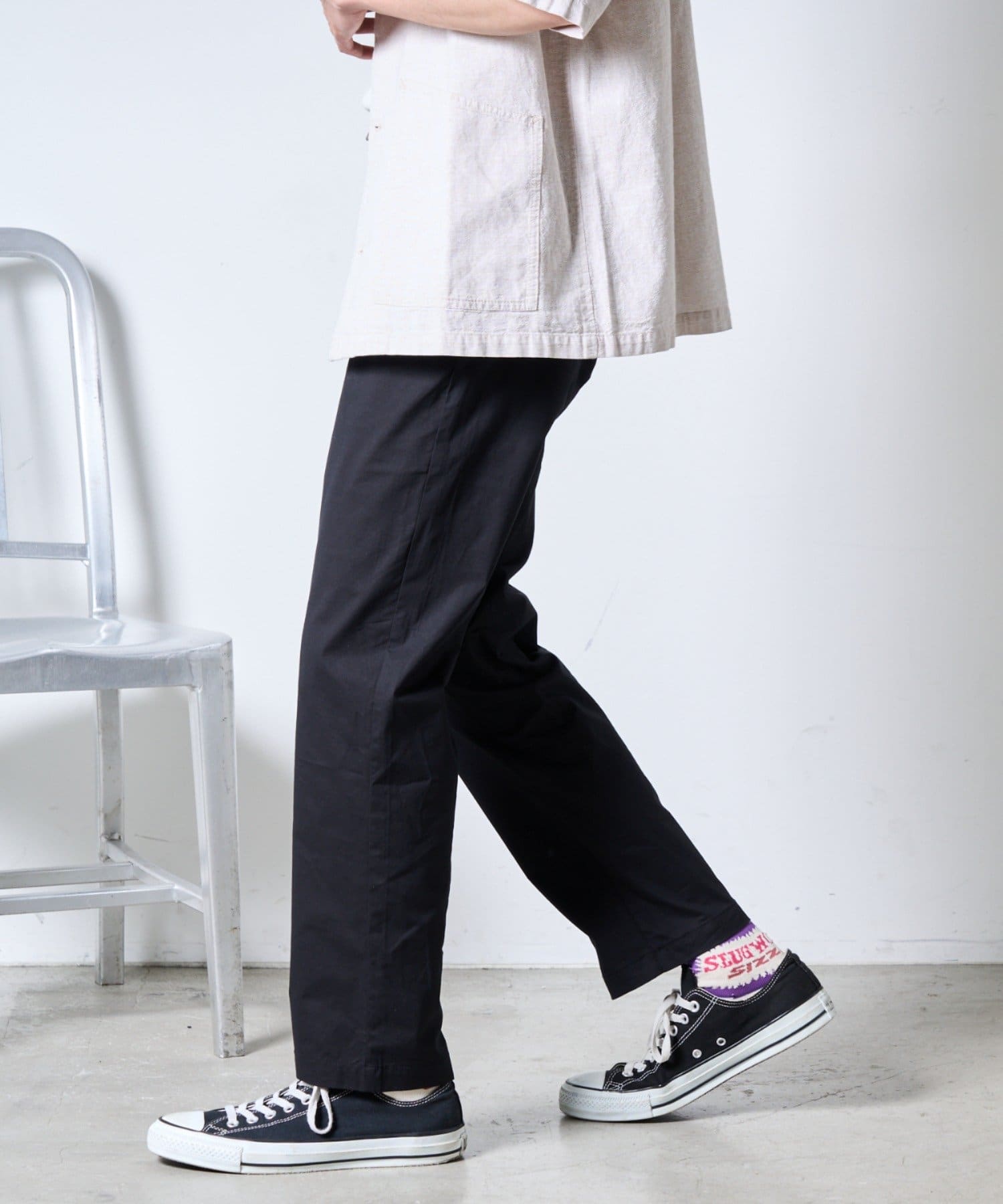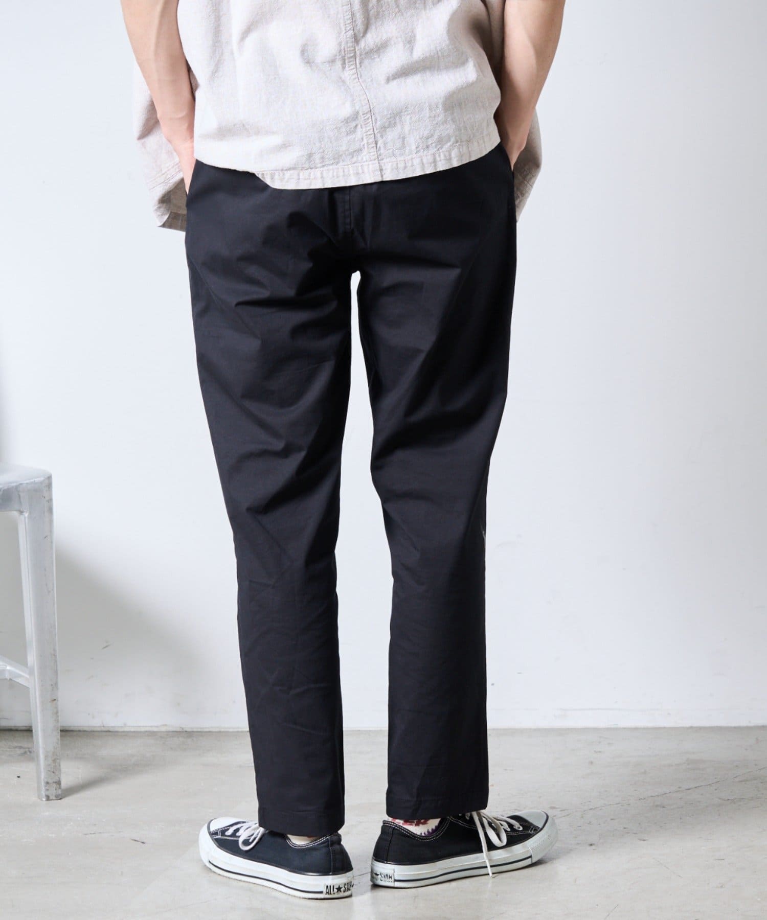 裾にかけて緩やかにテーパードがかかっていてすっきりしたシルエットに。