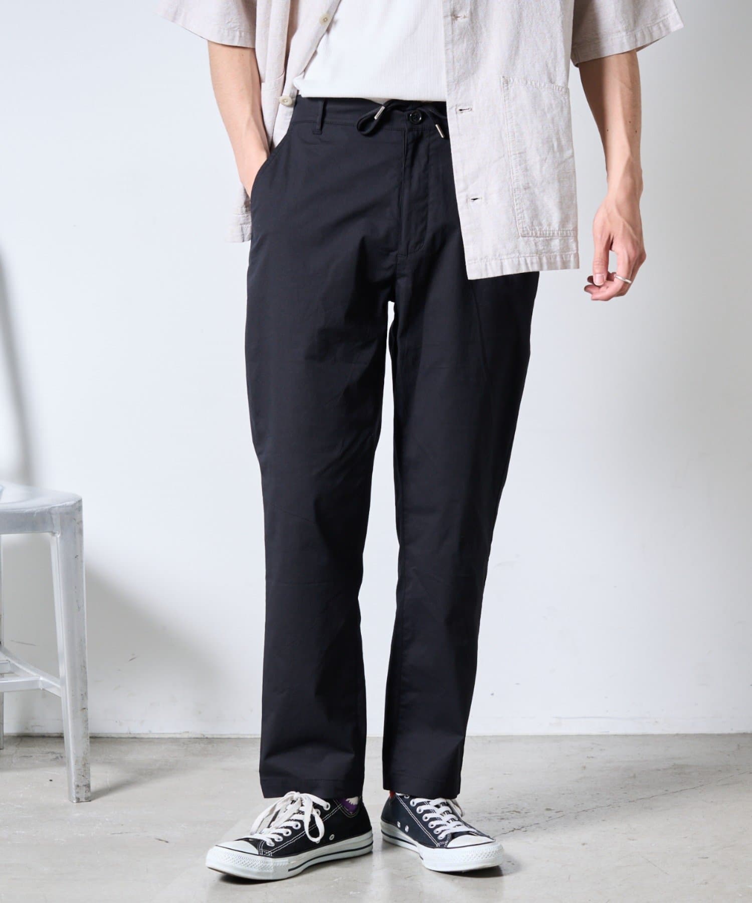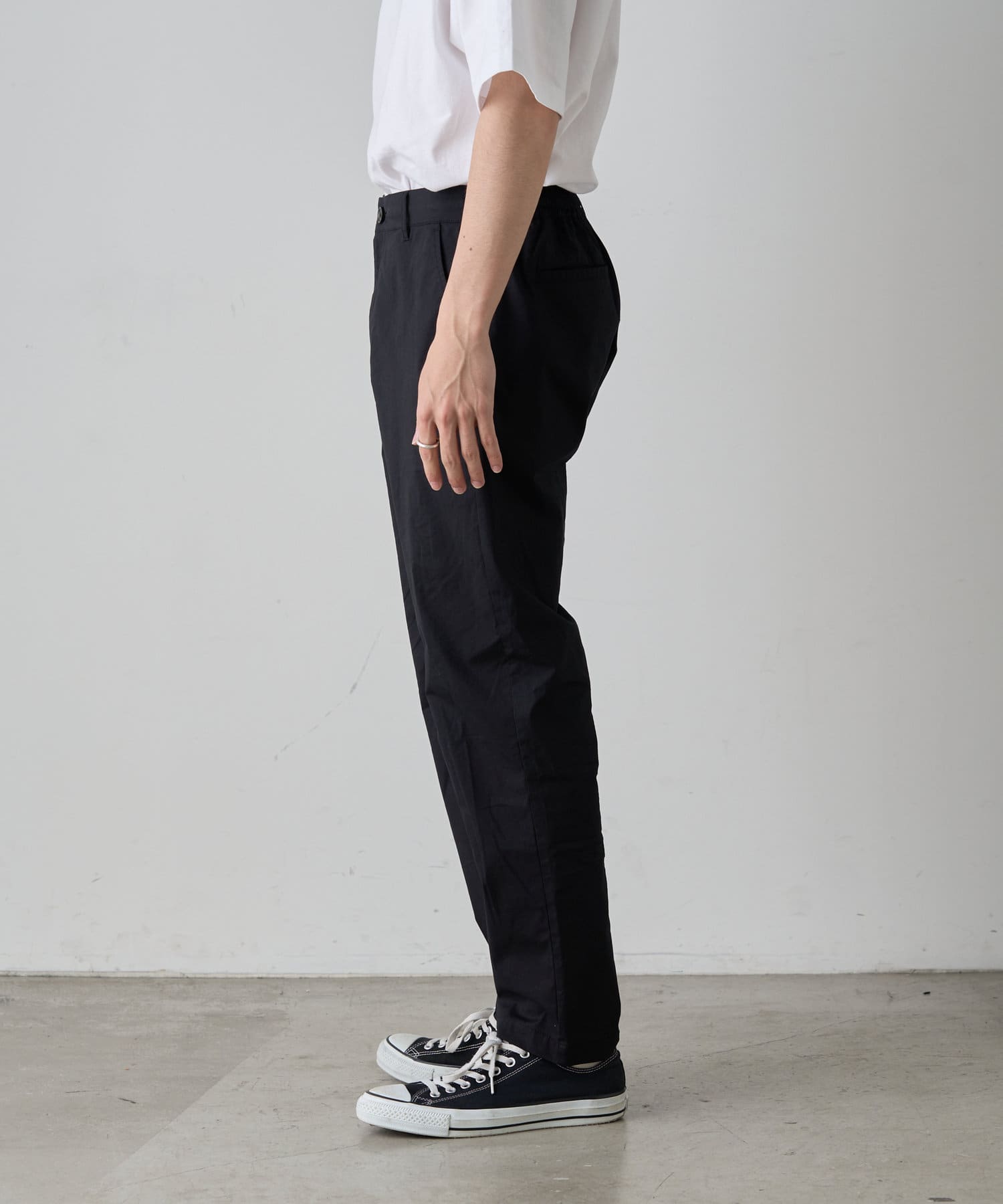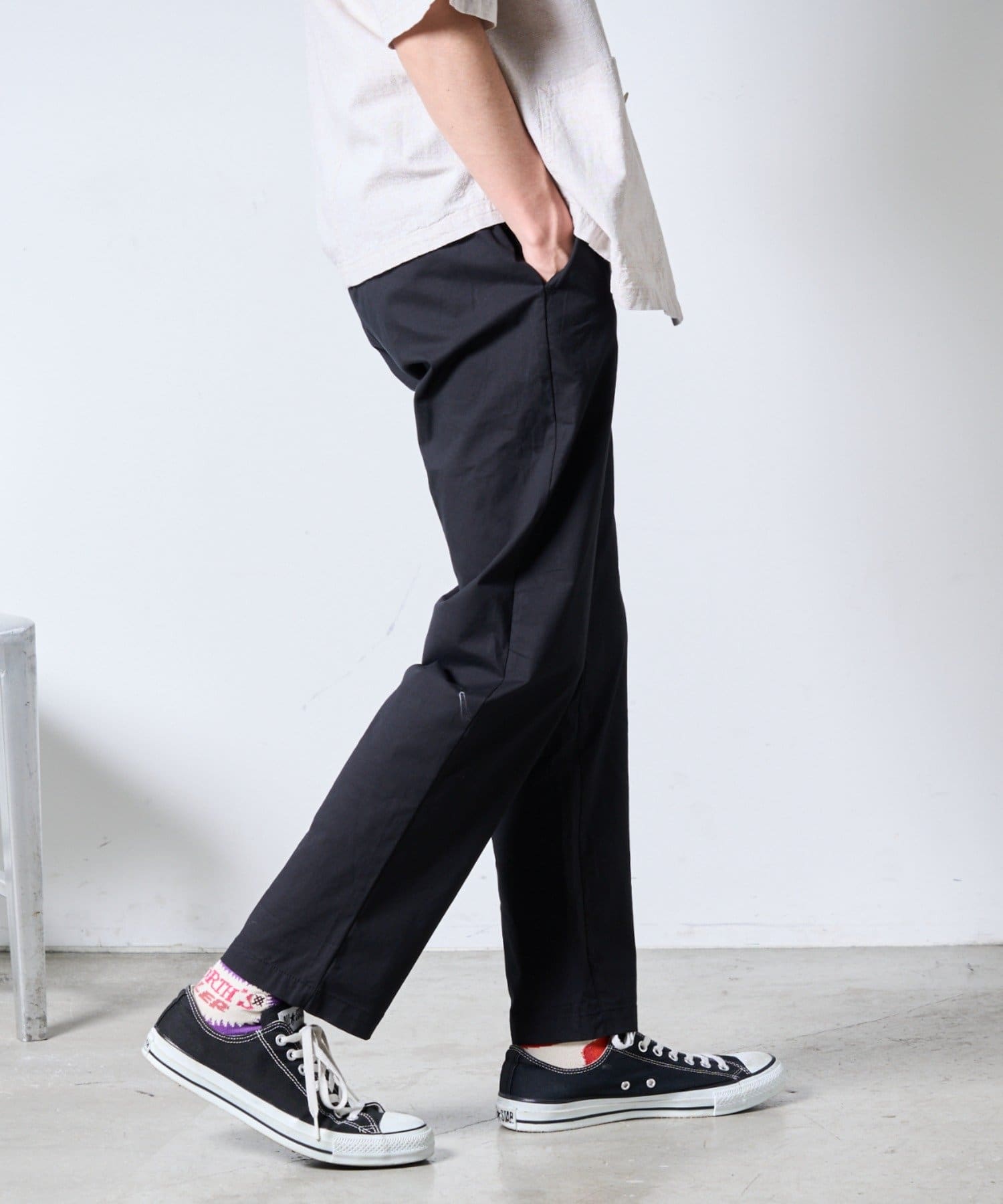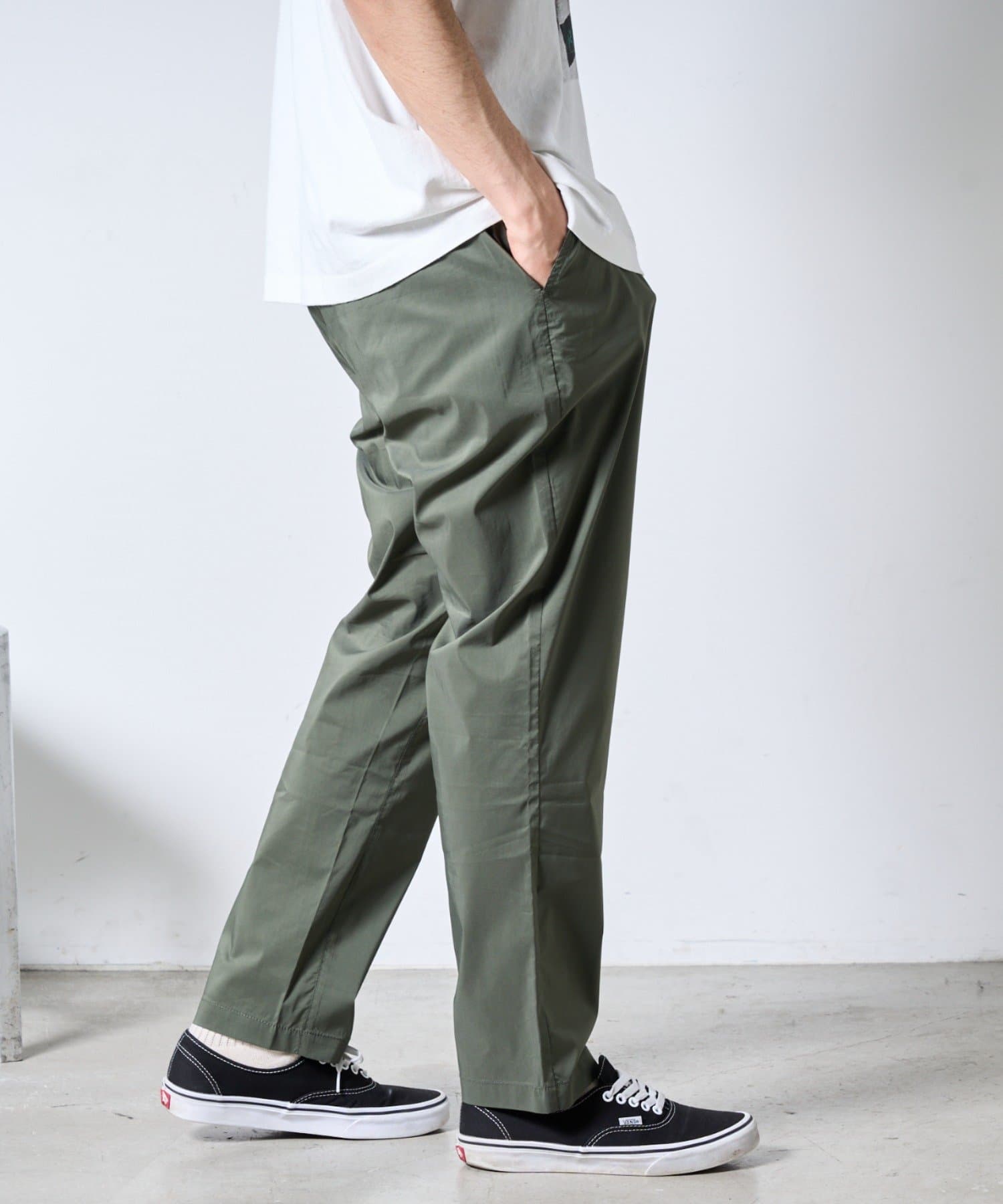裾にかけて緩やかにテーパードがかかっていてすっきりしたシルエットに。