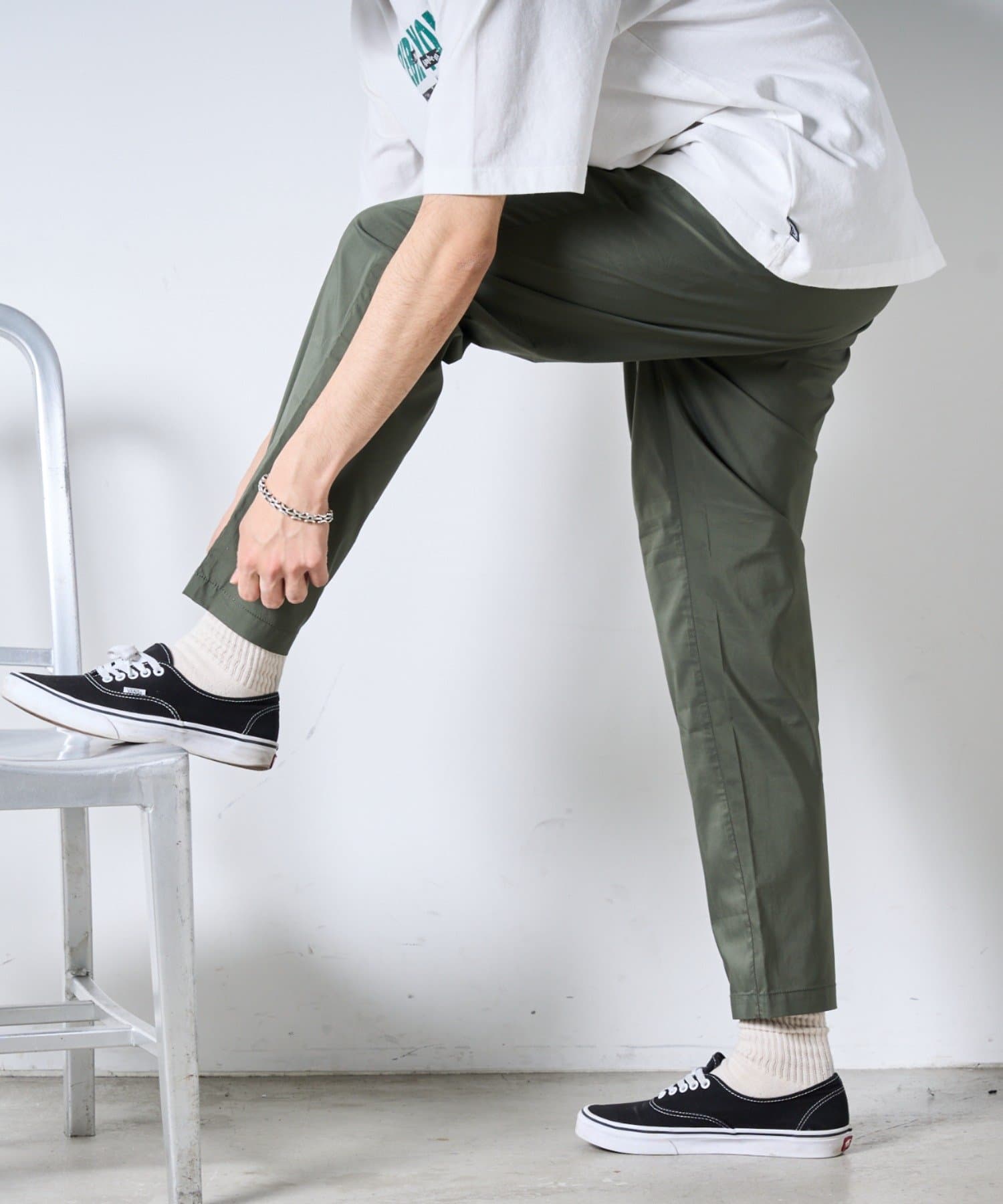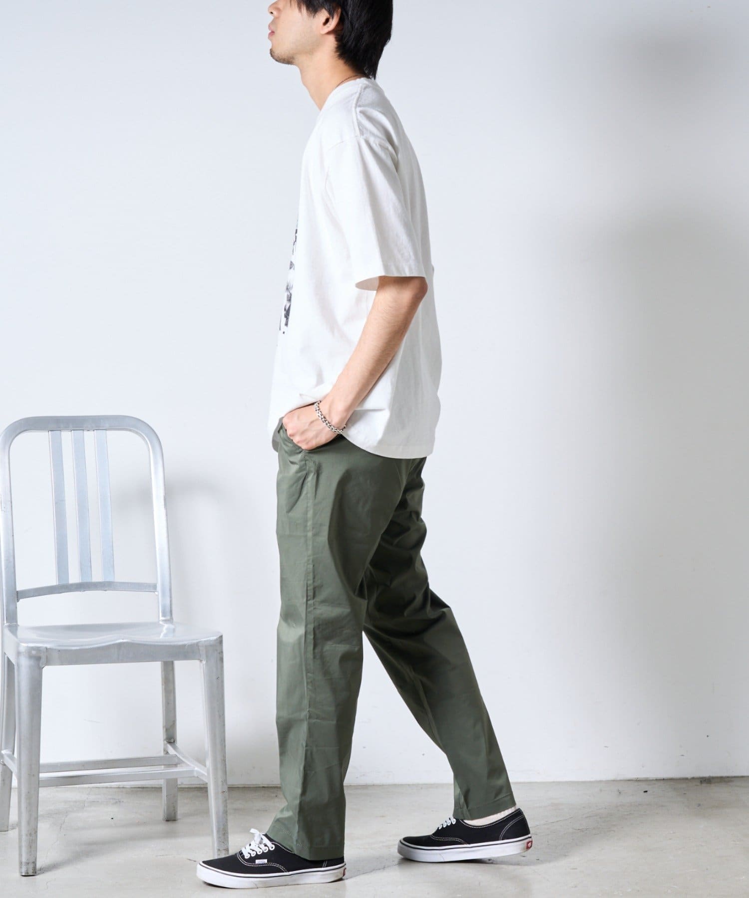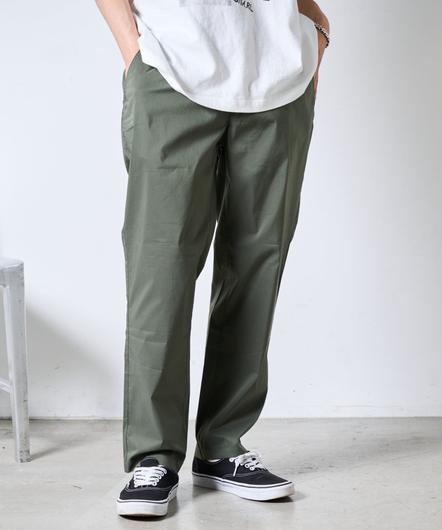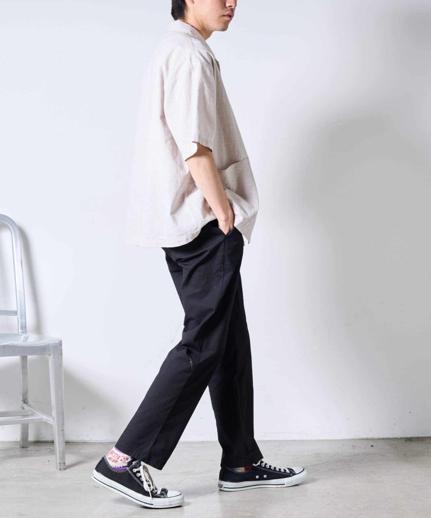 裾にかけて緩やかにテーパードがかかっていてすっきりしたシルエットに。