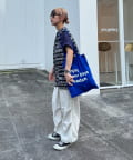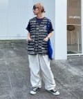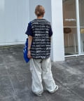 白のロゴプリントで、統一感があり総柄なのに派手すぎない雰囲気に◎