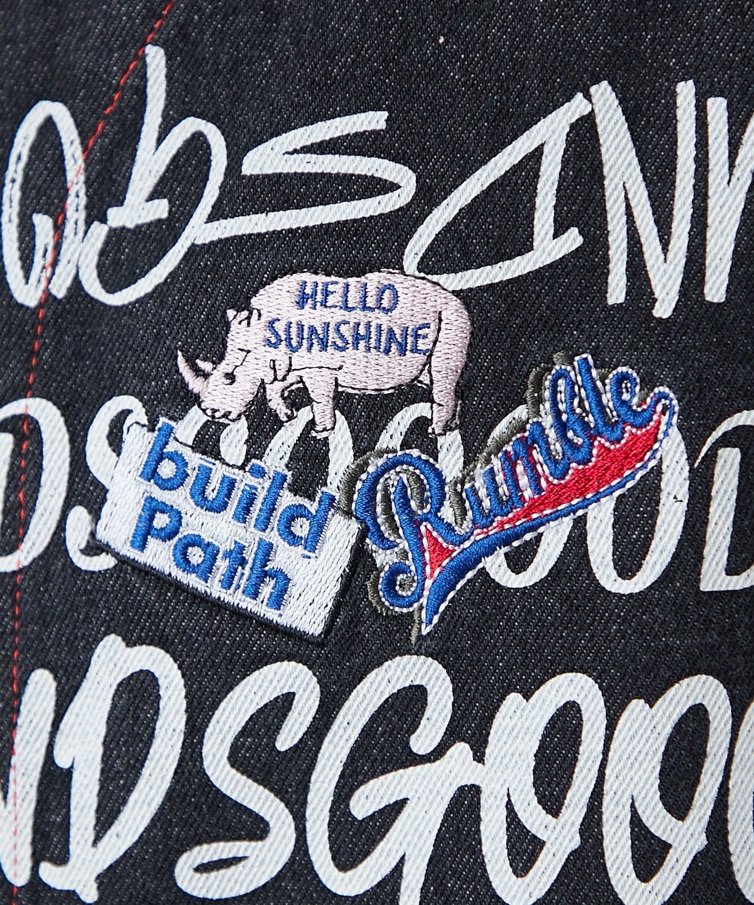 遊び心あるワッペンや赤ステッチなどのディテールが、無地アイテムと相性抜群です。
