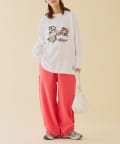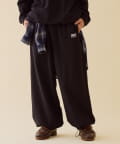 ウエストは紐付き&ゴム仕様なので、楽ちんな履き心地を実現。