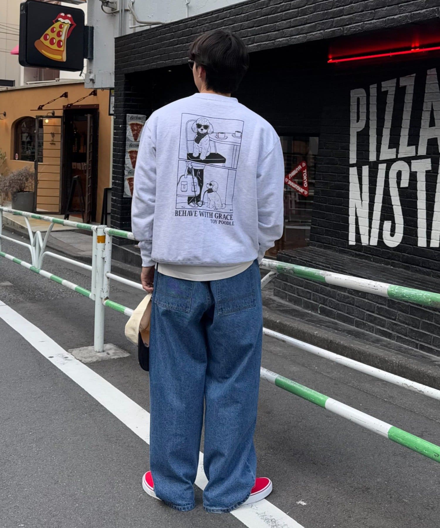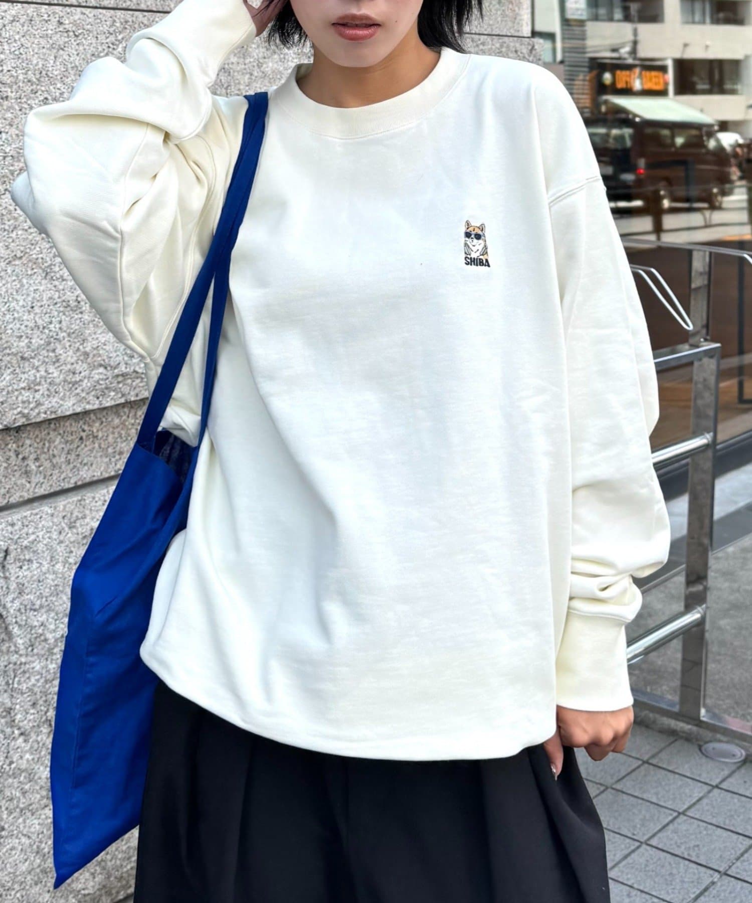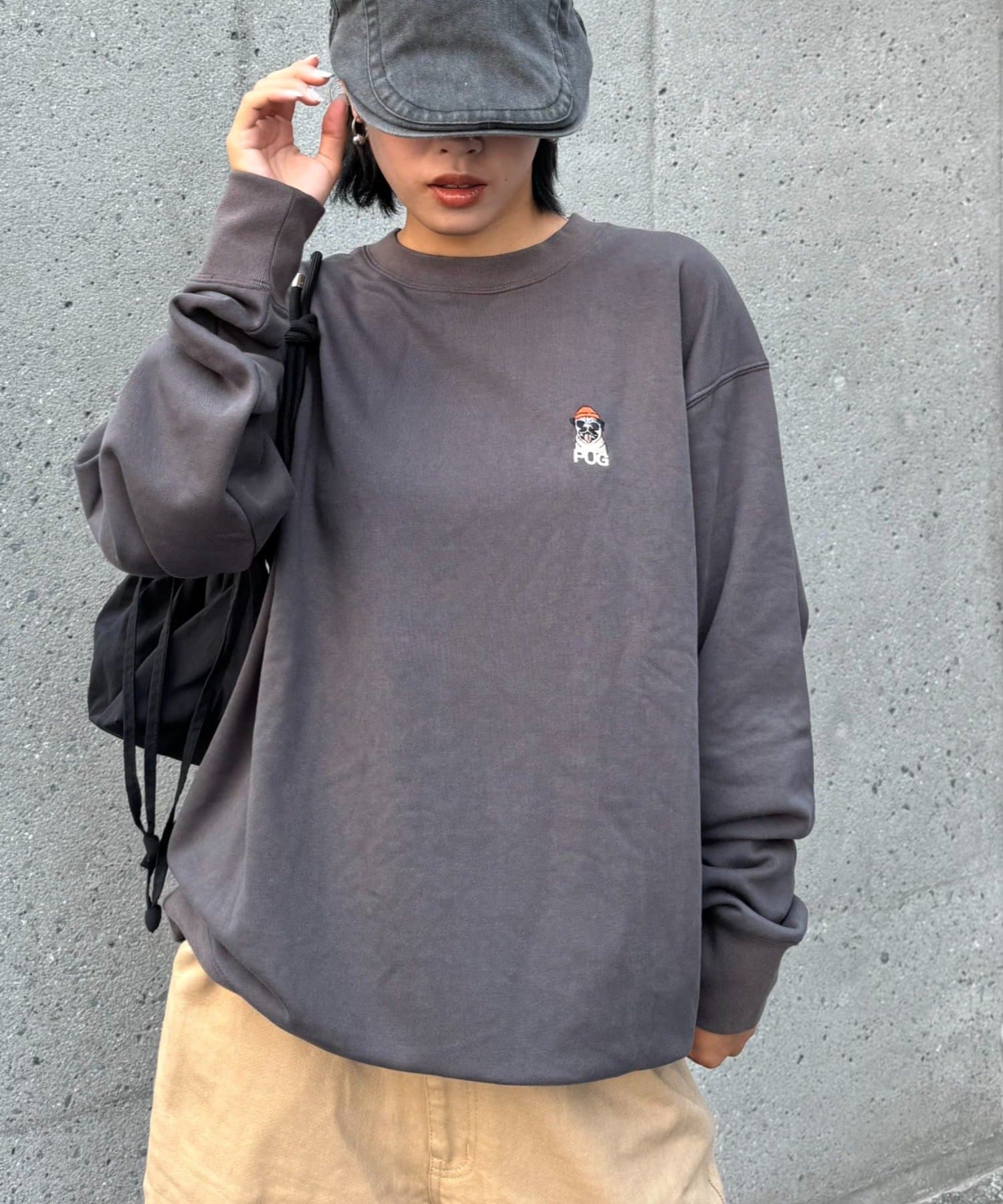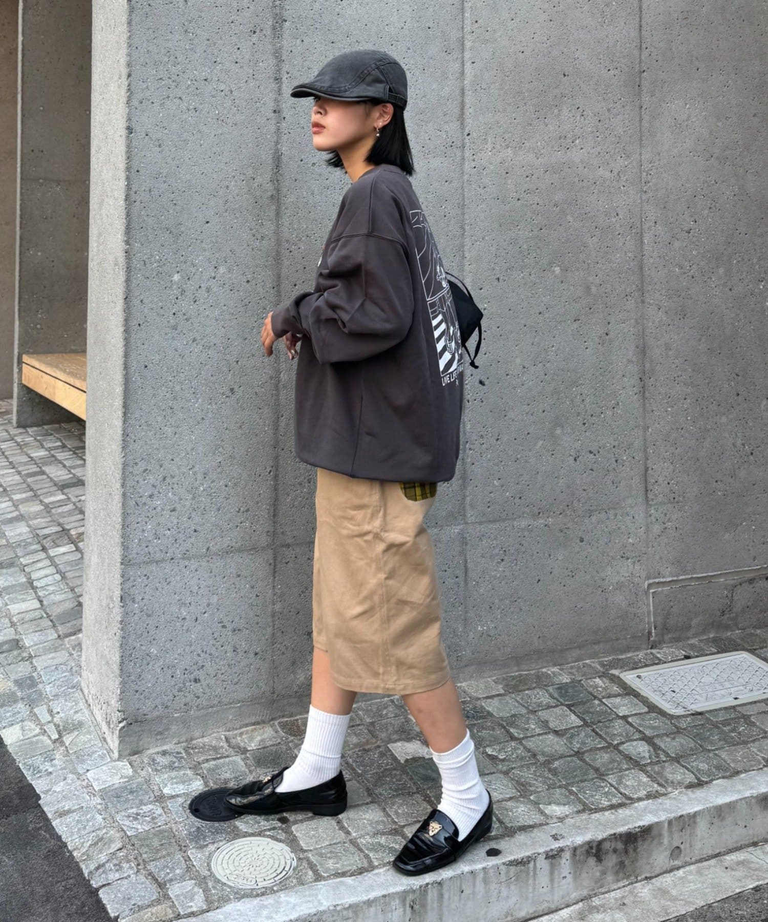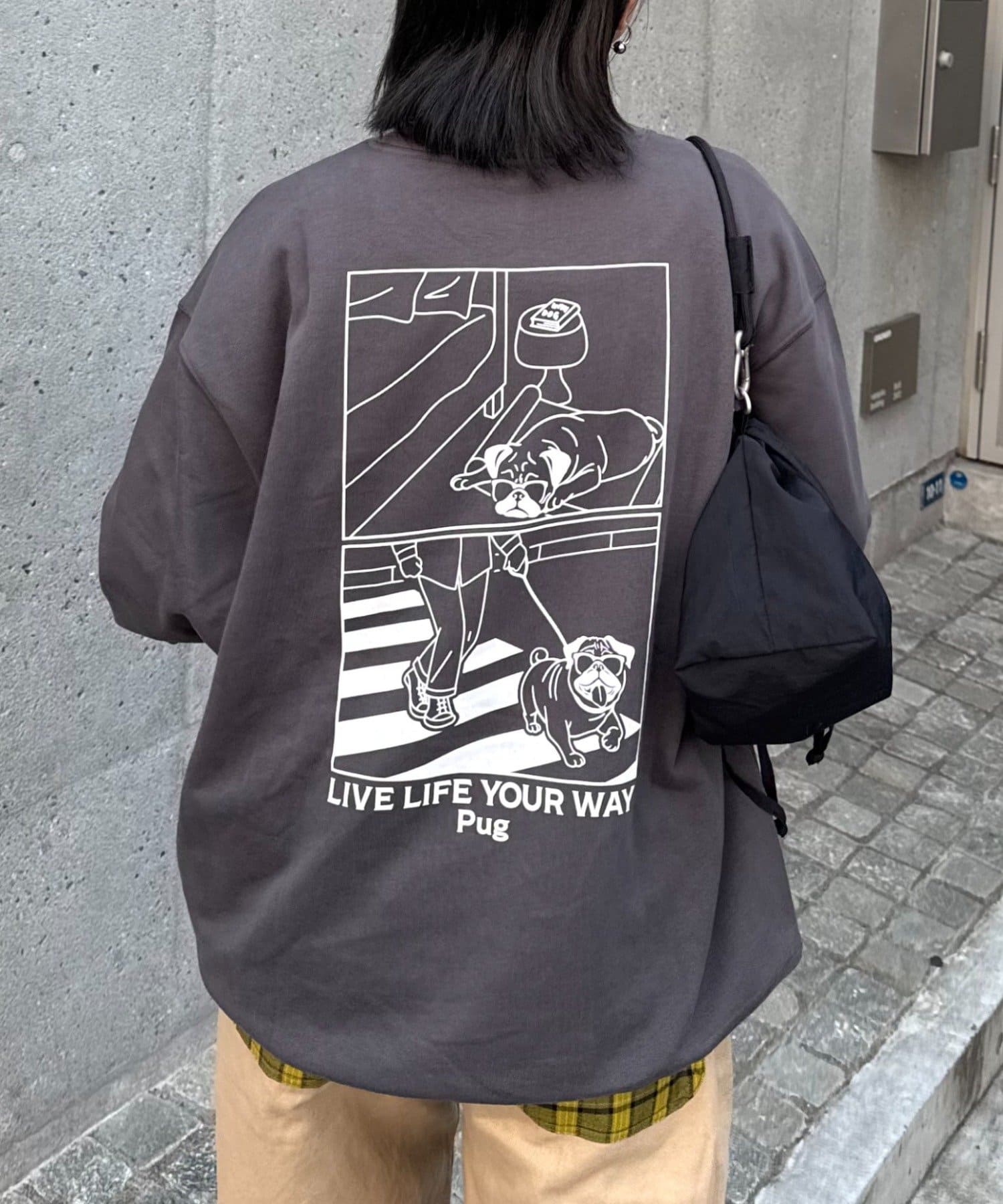 シンプルなシルエットだからこそ、バッグプリントが際立ち、後ろ姿までおしゃれに見せてくれます!
