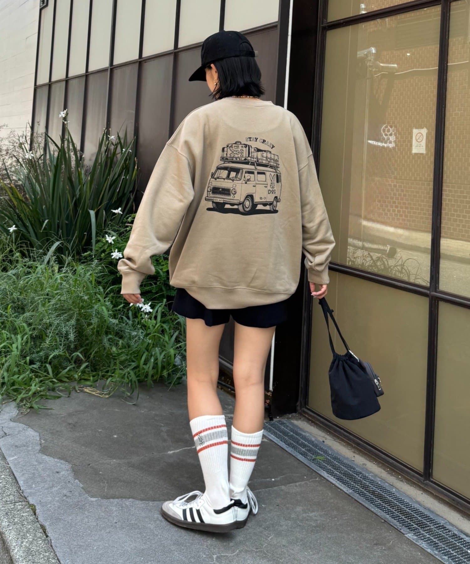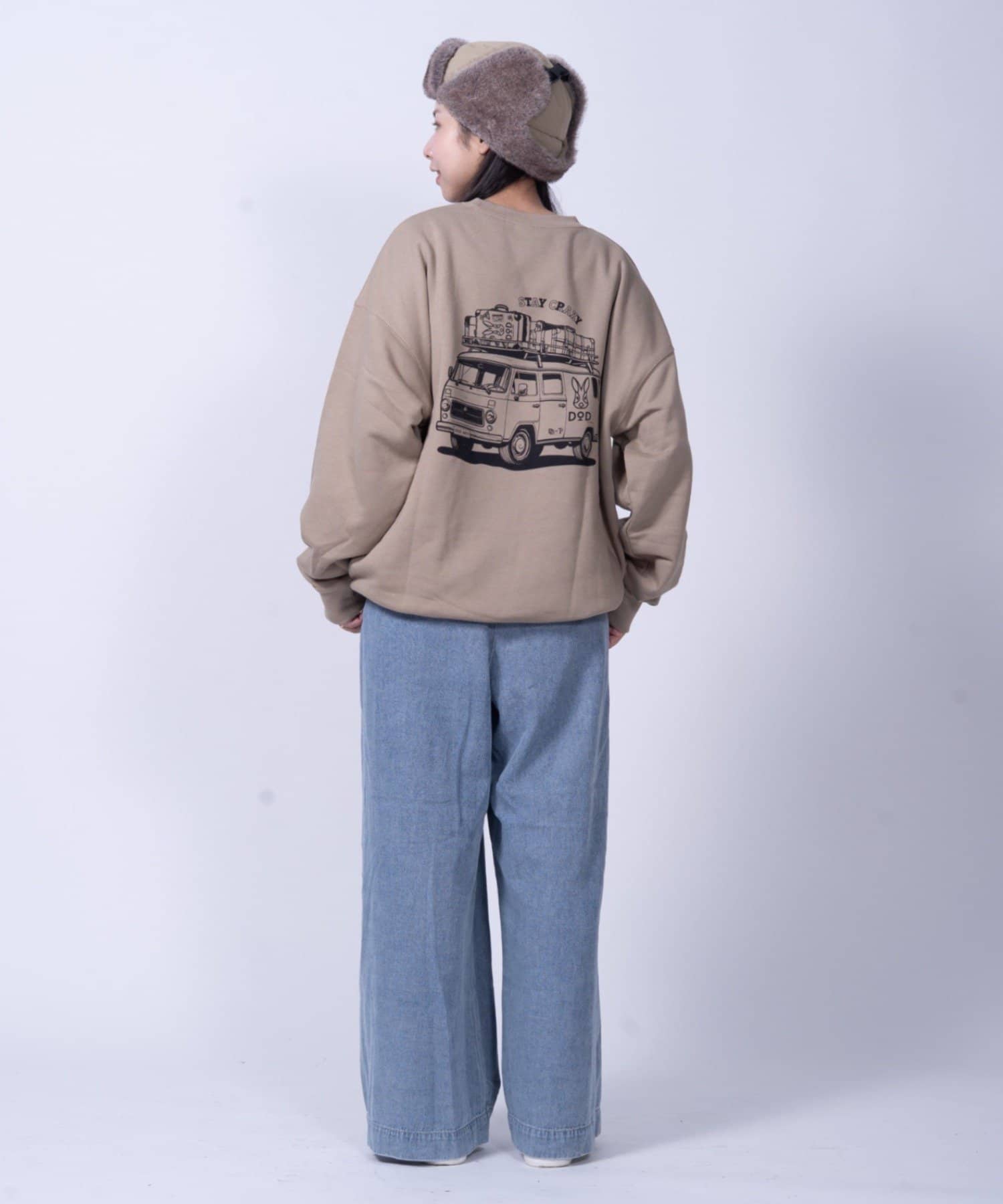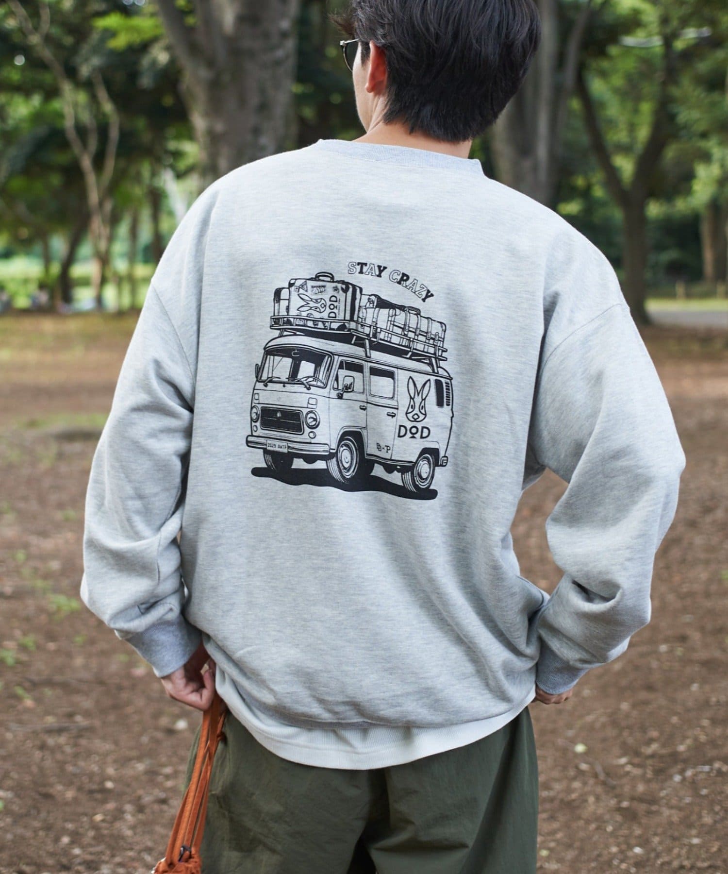 ・キャンプ気分を盛り上げる、遊び心のあるコラボ限定グラフィックのバックプリント