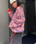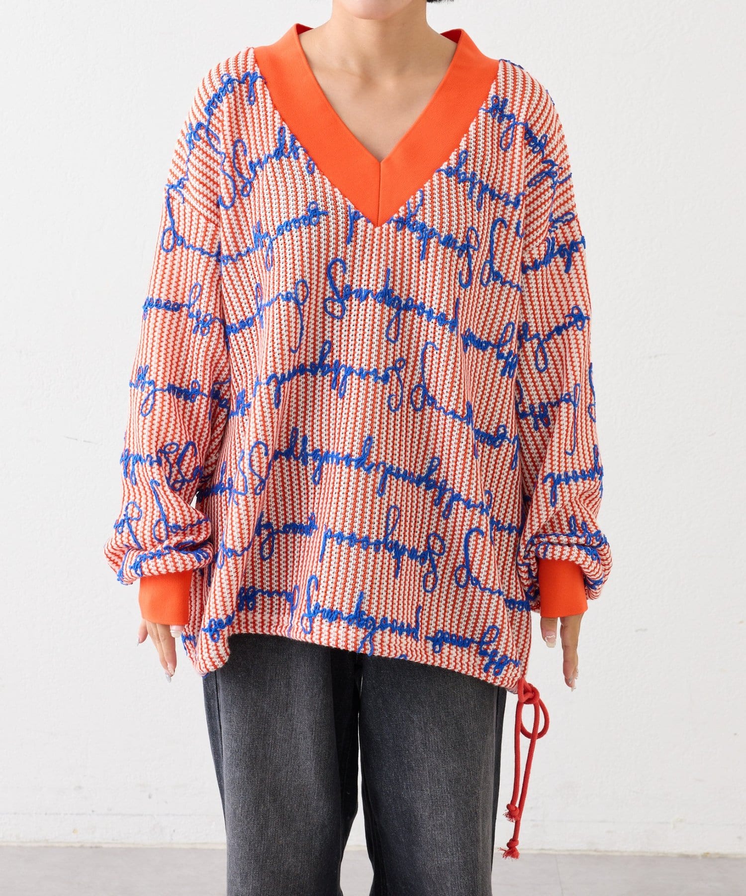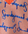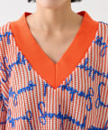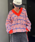 “ユニセックス”オレンジ×ブルーロゴが着映え抜群!総柄ニットソー