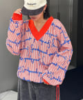 • CIAOPANIC TYPY(チャオパニックティピー) 【SOUNDS GOOOOD】総柄ロゴ刺繍シアーVニットソー