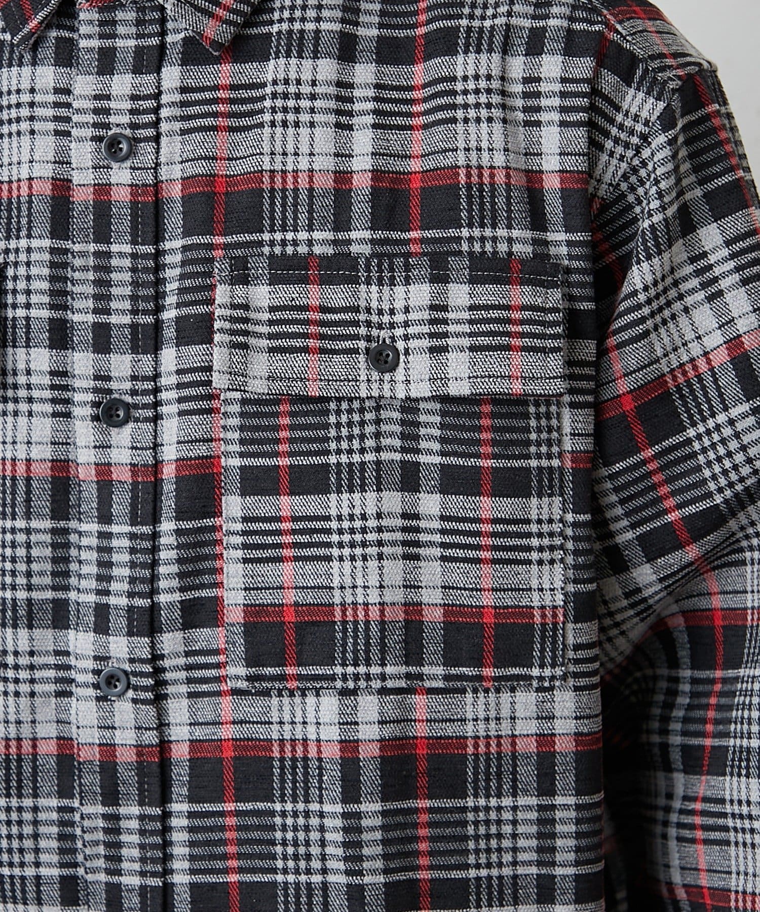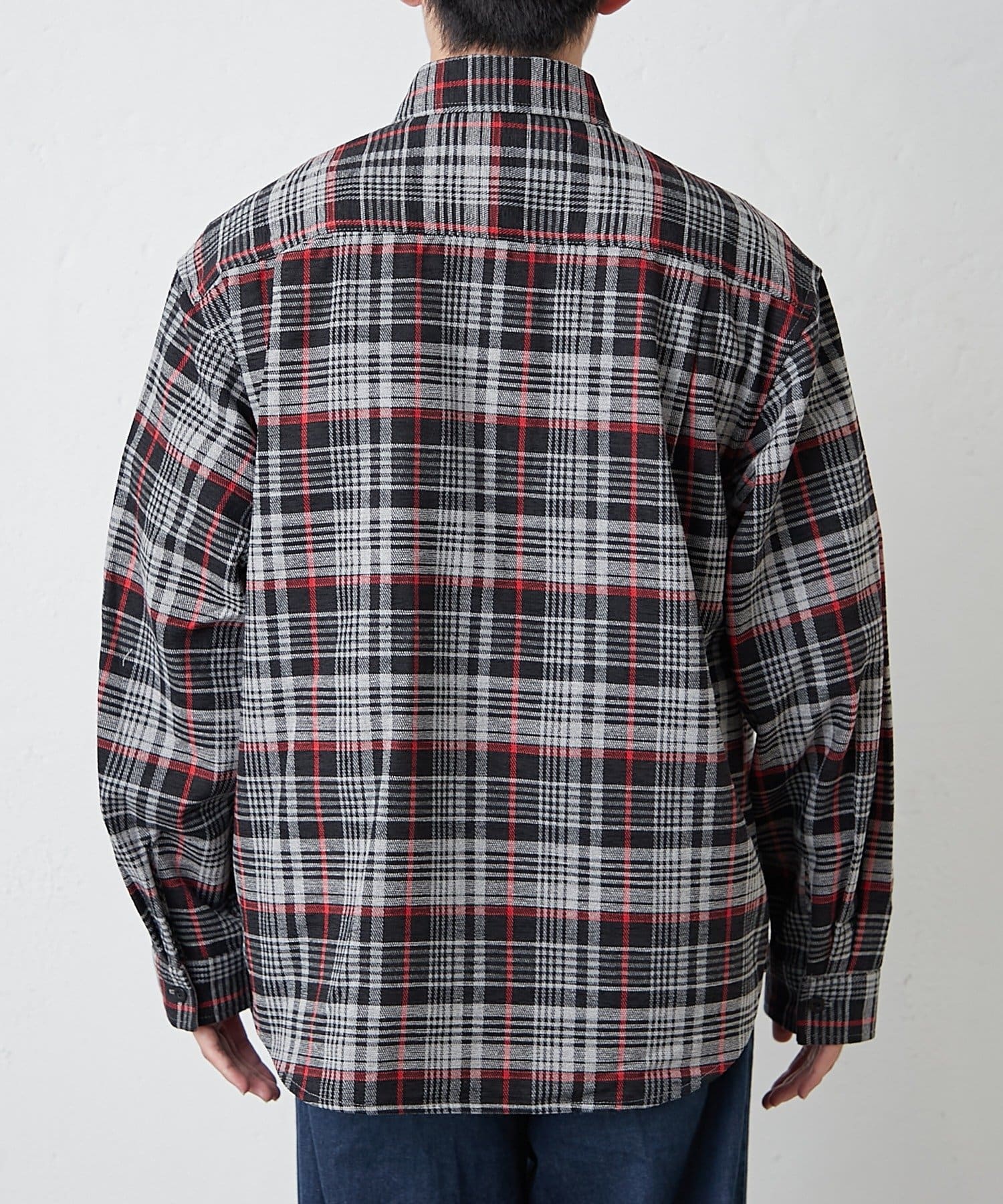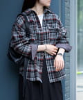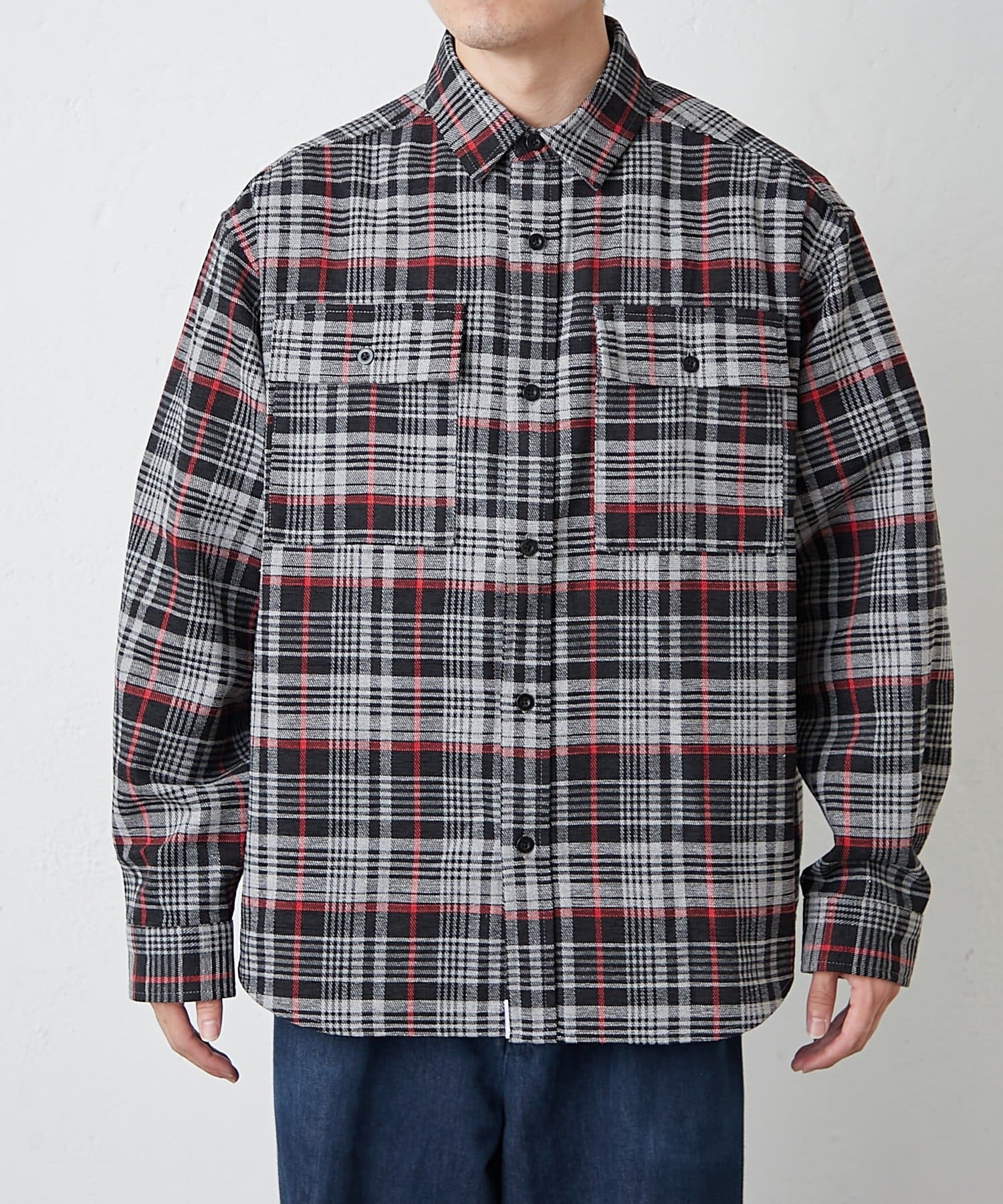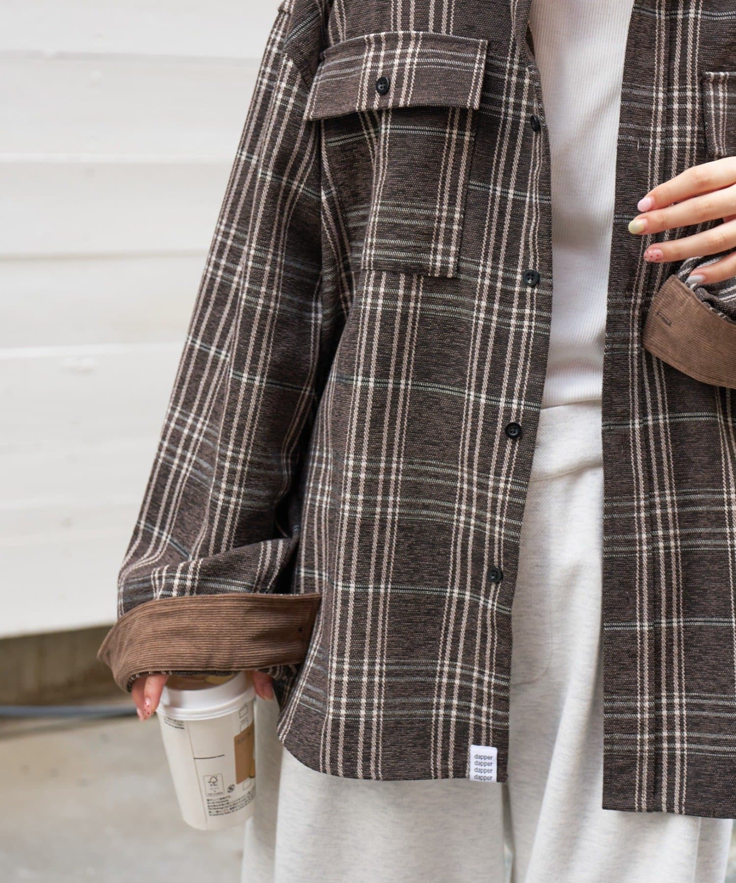 【コーデュロイ袖切り替え】【ユニセックス】モールチェックシャツジャケット