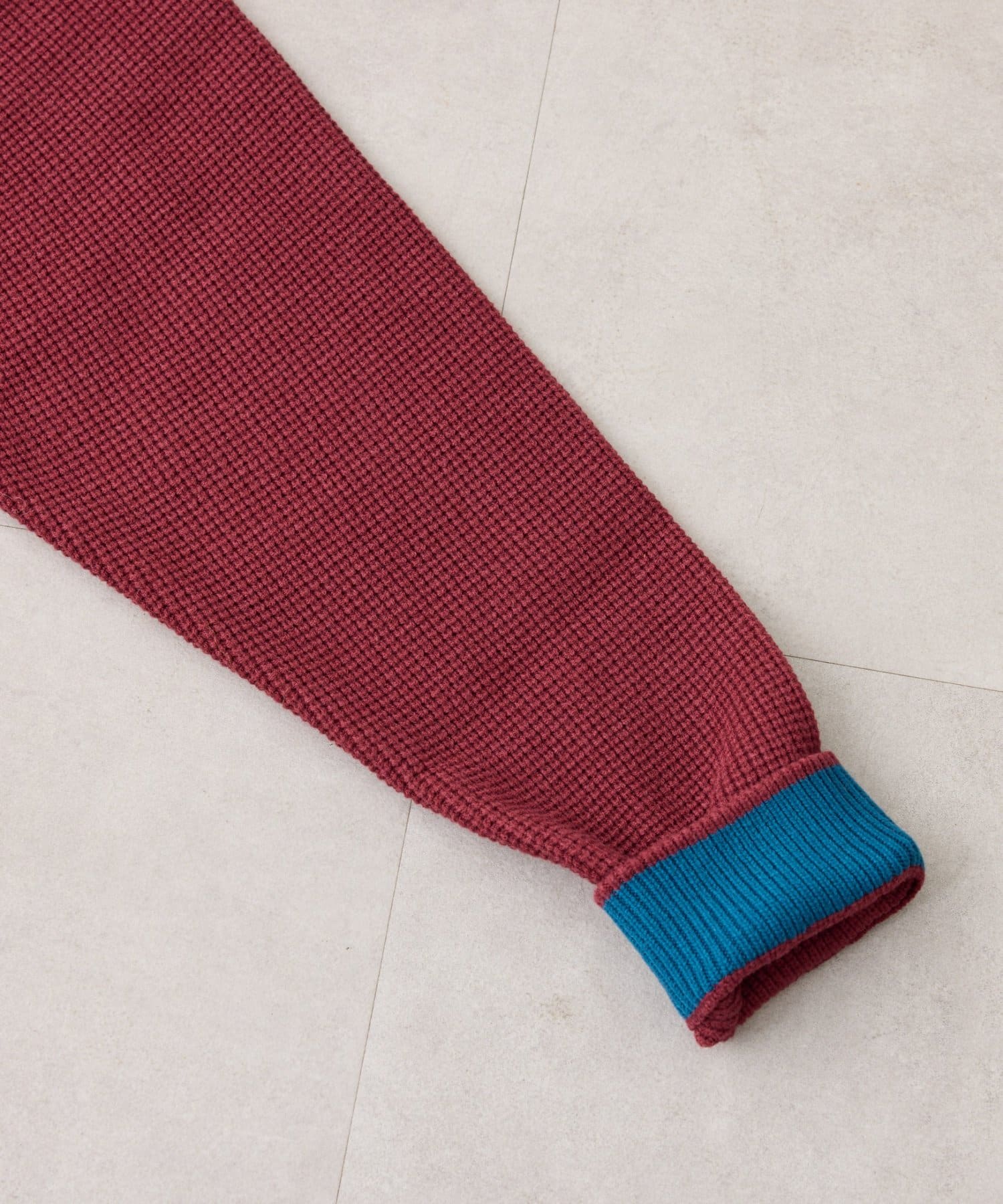 【ヨレ・伸びが起こりずらくお手入れ簡単】ユニセックス/袖配色/洗える/リシェイプワッフルニットプルオーバー
