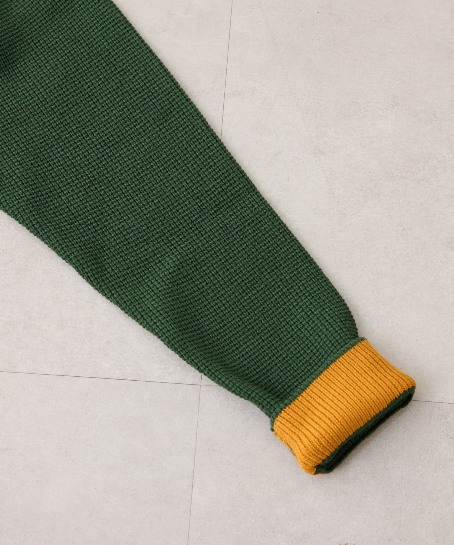 【ヨレ・伸びが起こりずらくお手入れ簡単】ユニセックス/袖配色/洗える/リシェイプワッフルニットプルオーバー