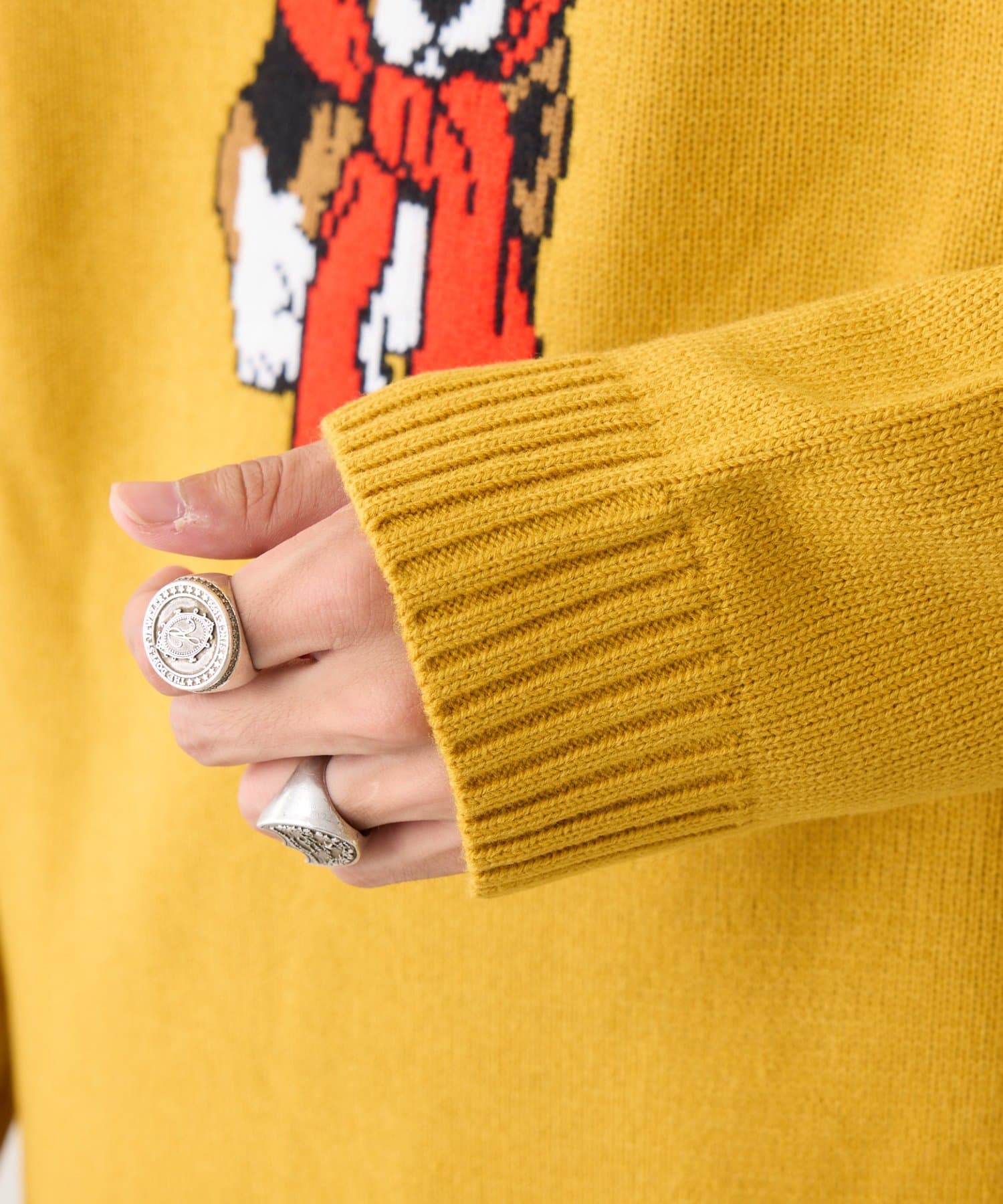 【ユニセックス】犬アソート柄ロゴジャガードニット