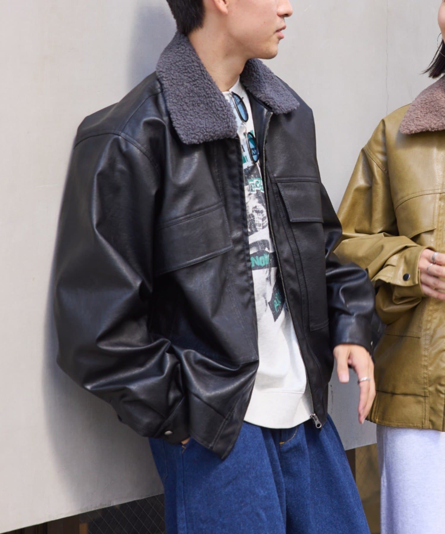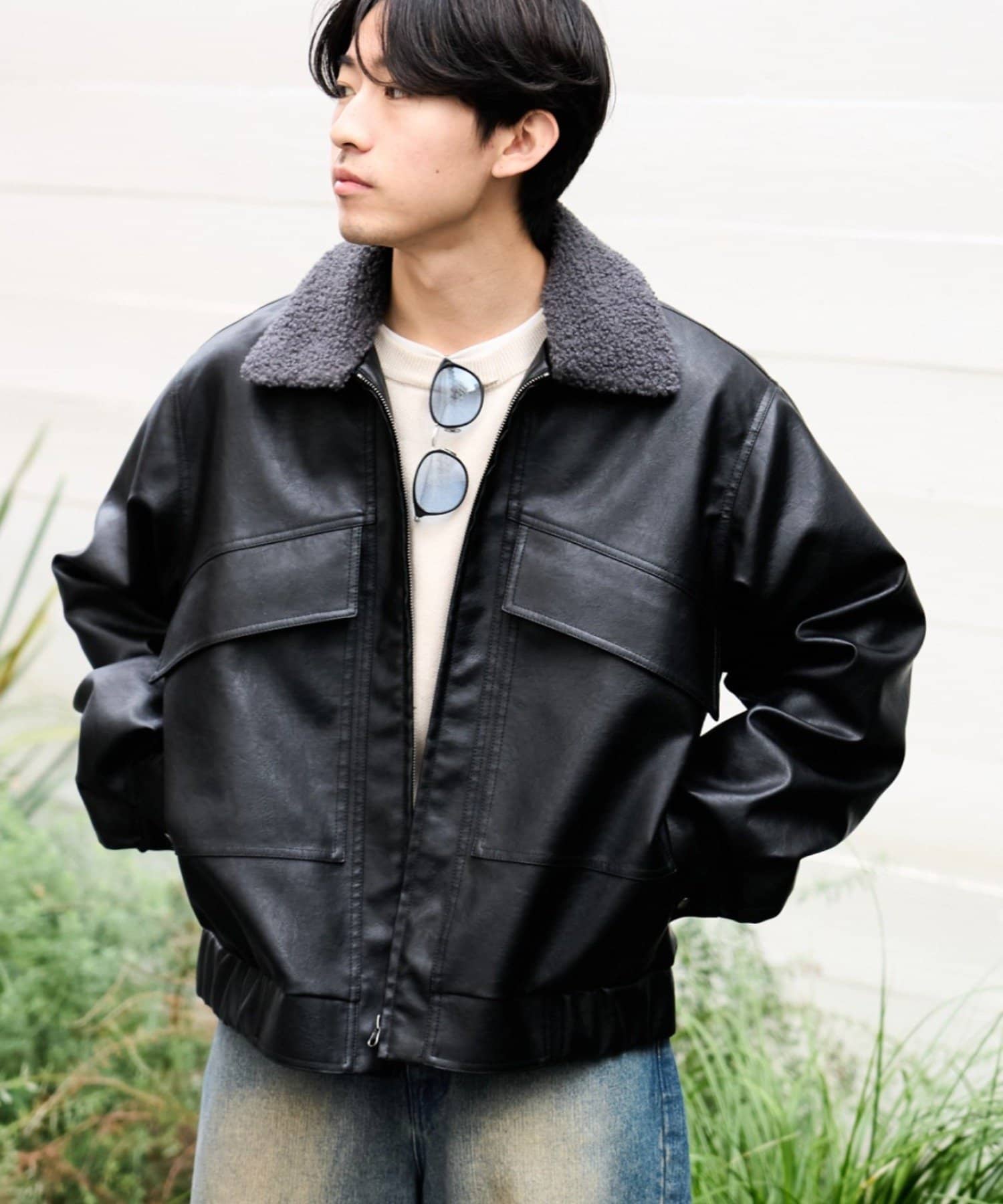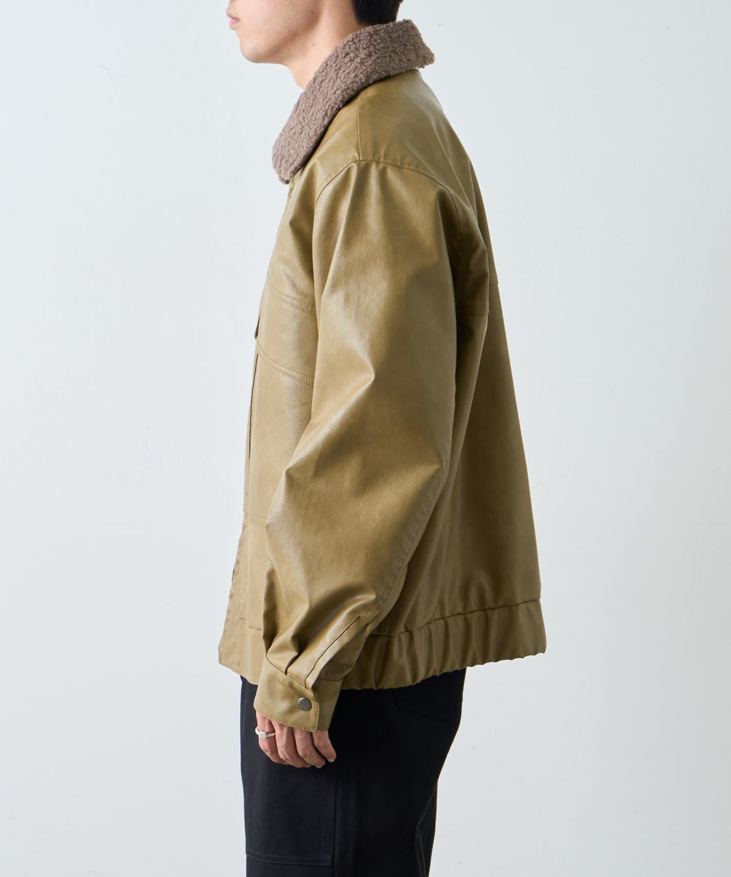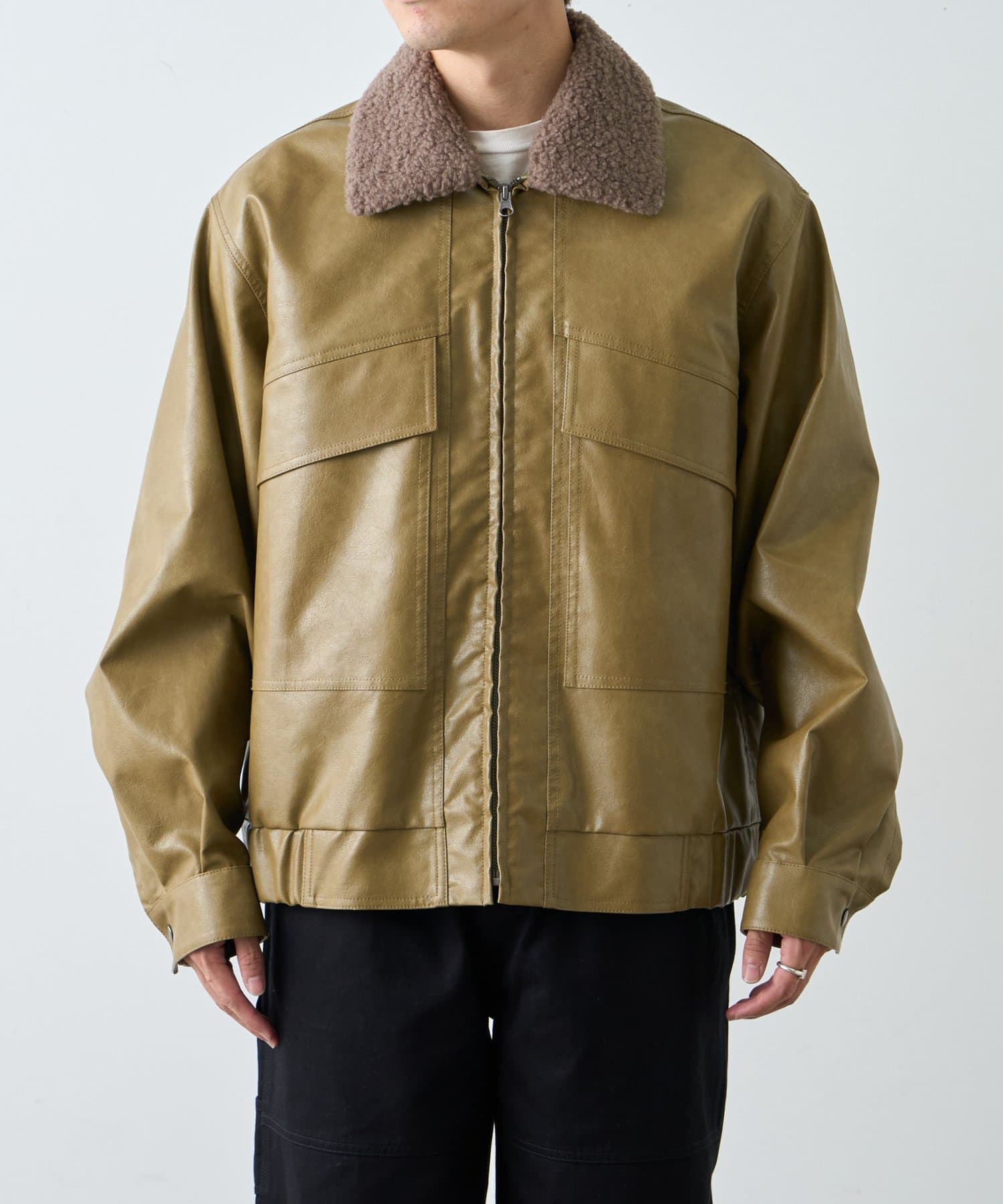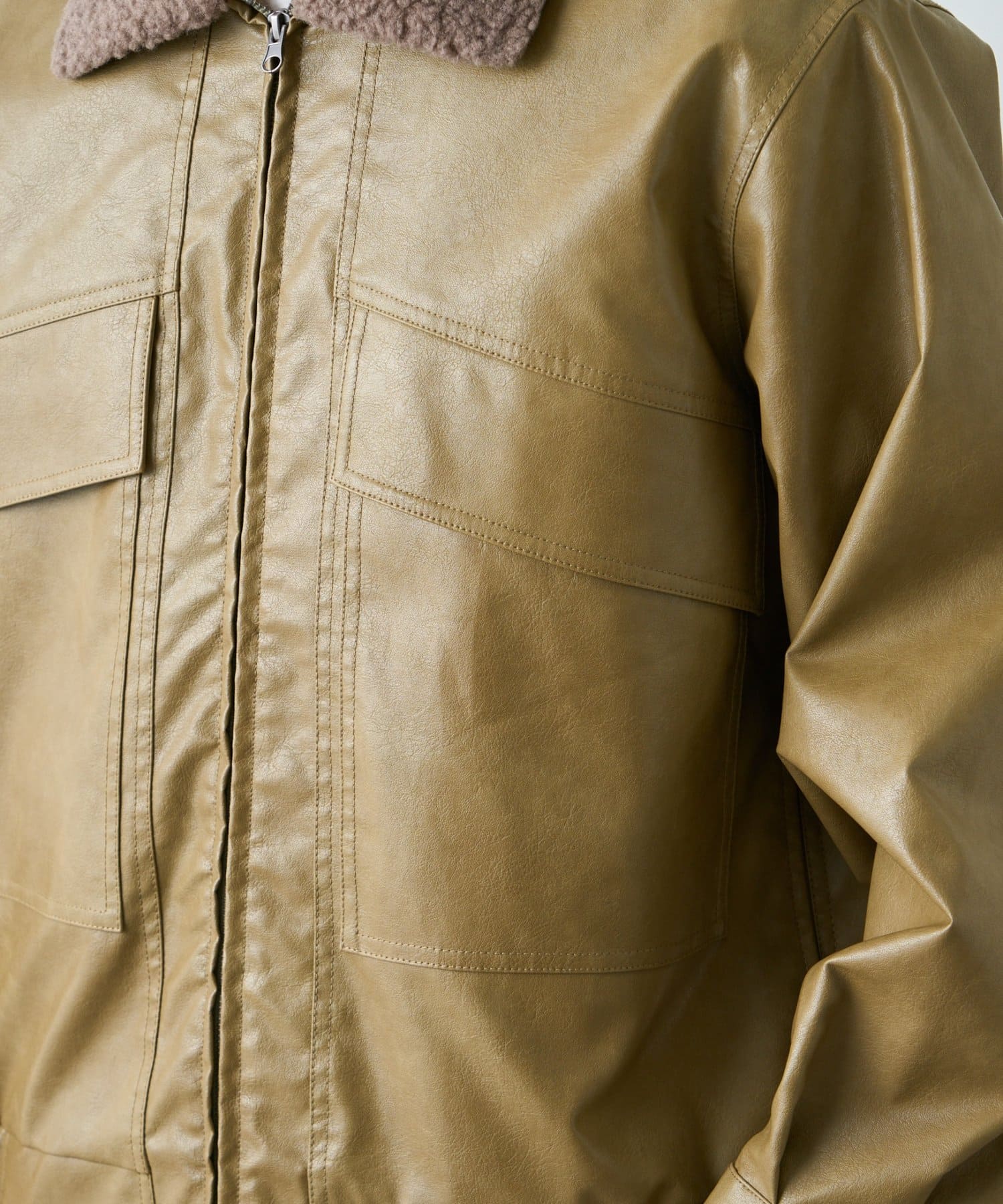 【ユニセックス】襟ボア取り外し可能/合皮/レザージップアップブルゾン