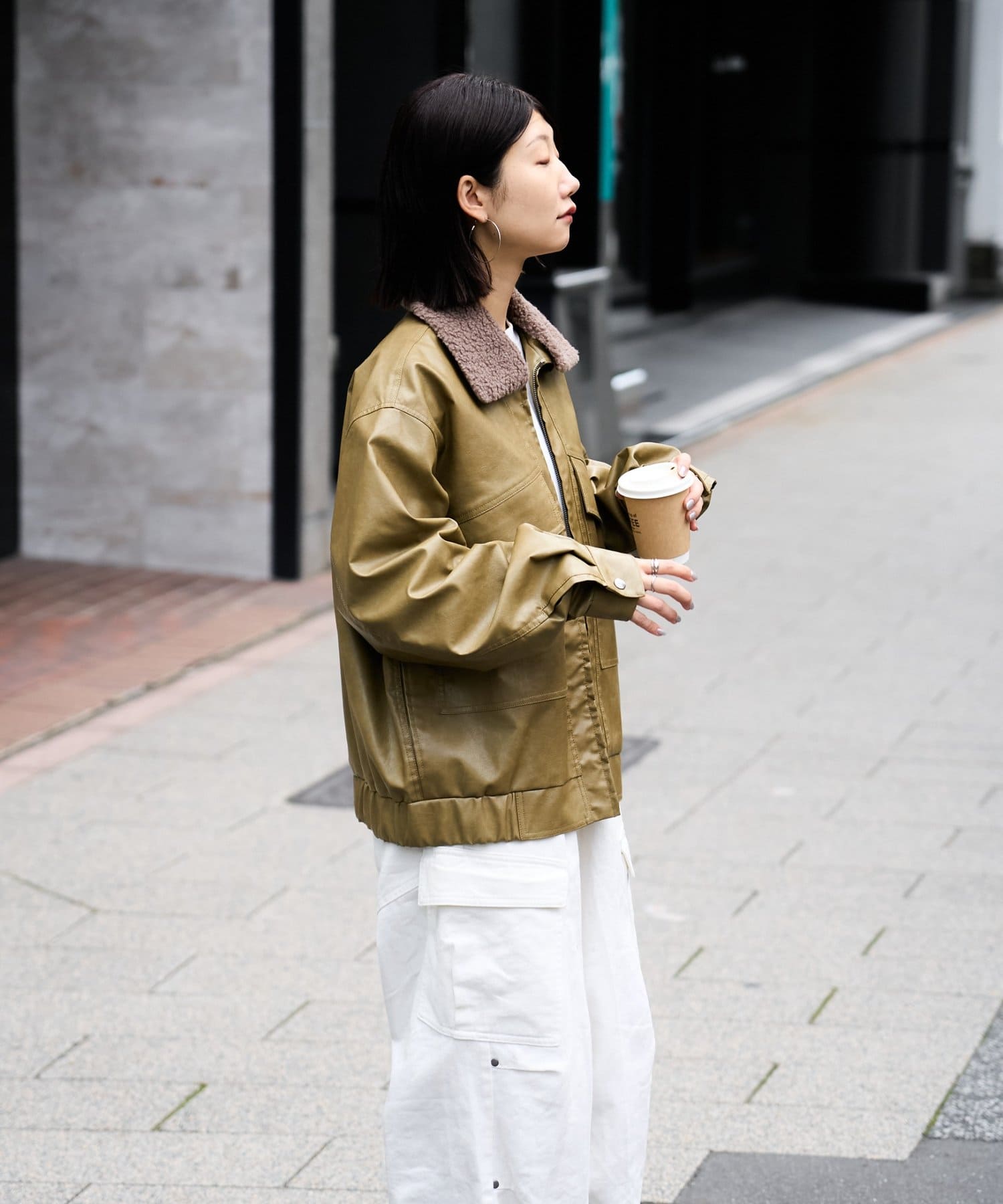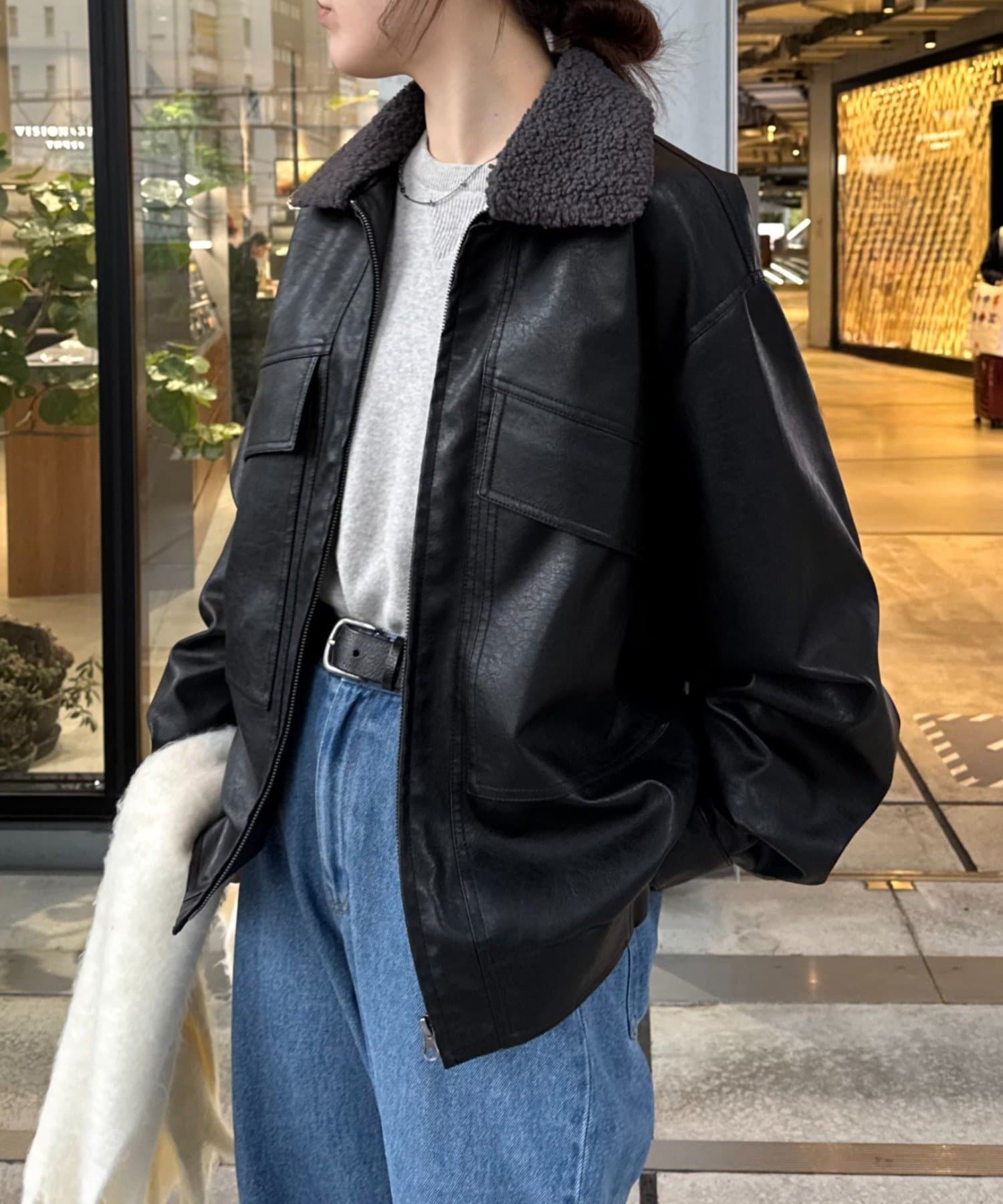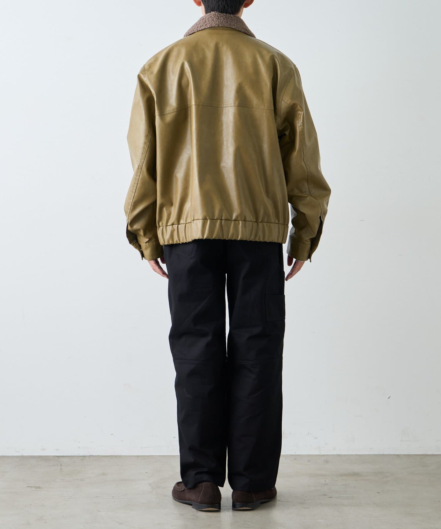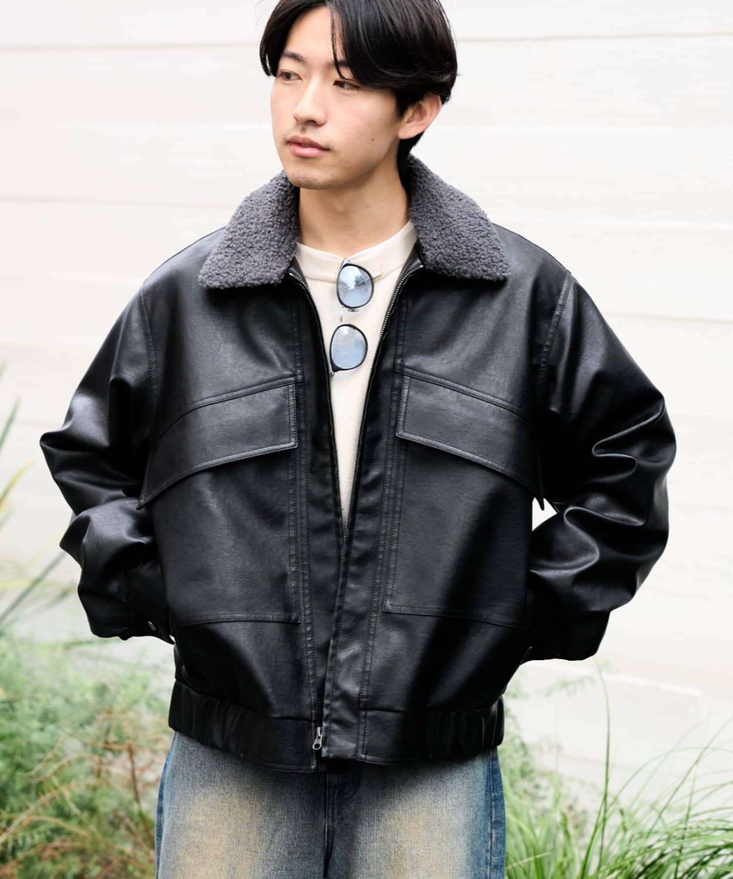 【ユニセックス】襟ボア取り外し可能/合皮/レザージップアップブルゾン