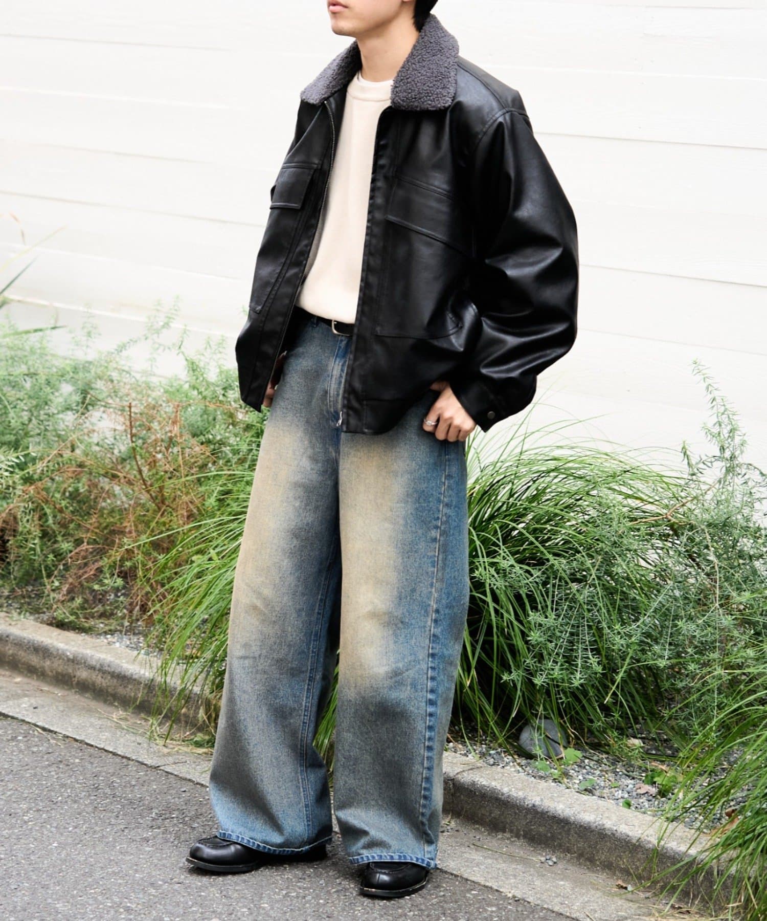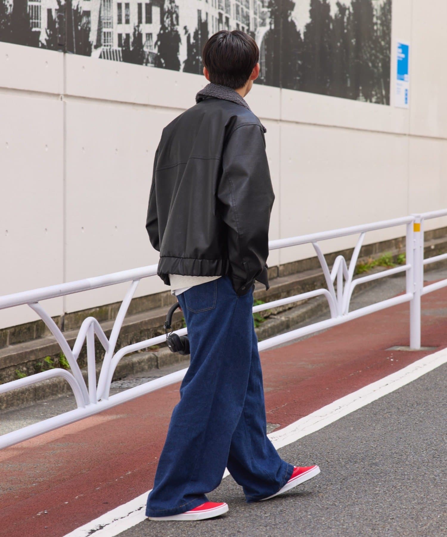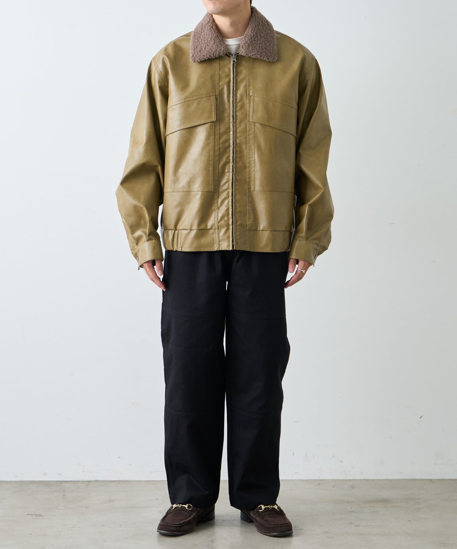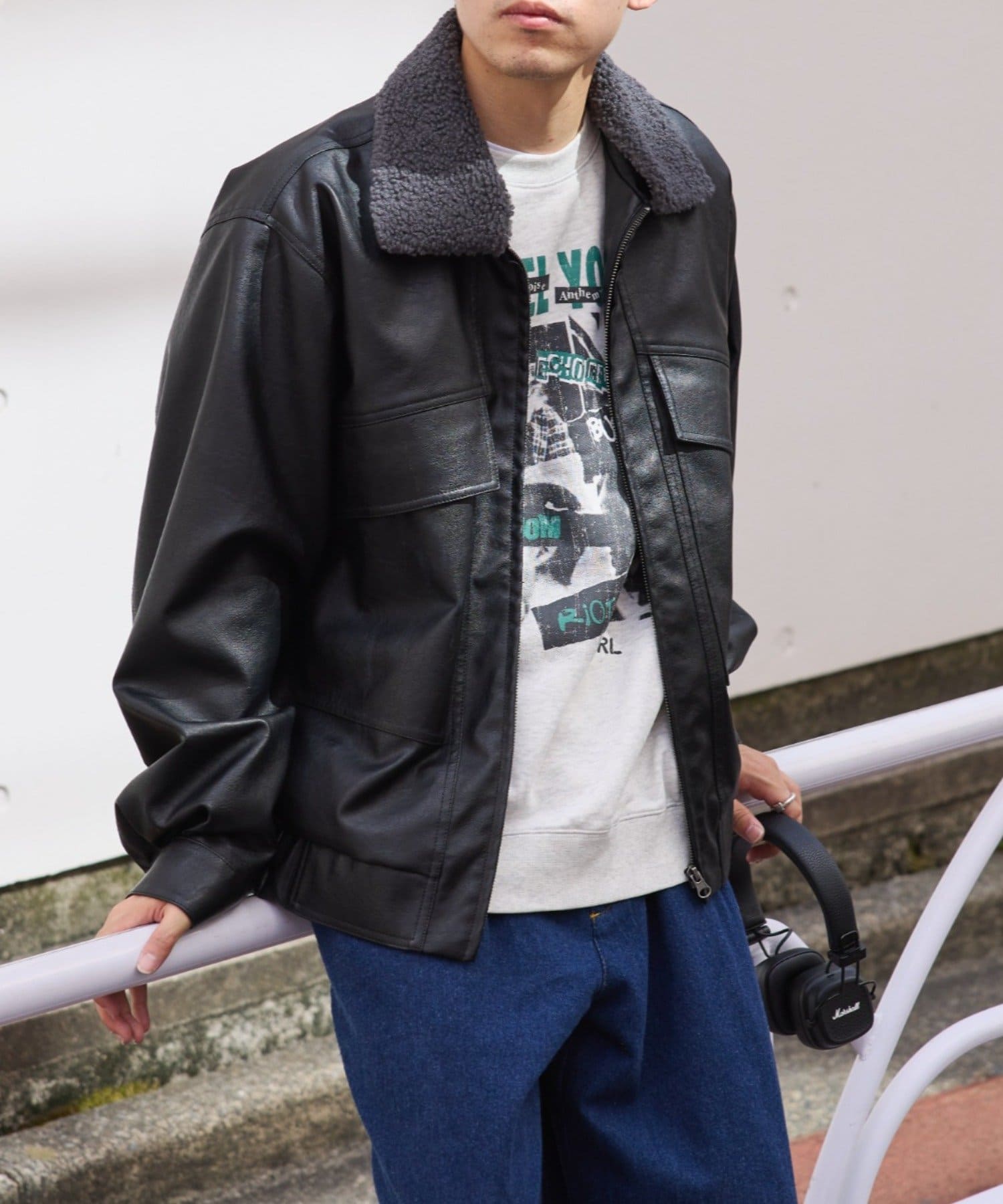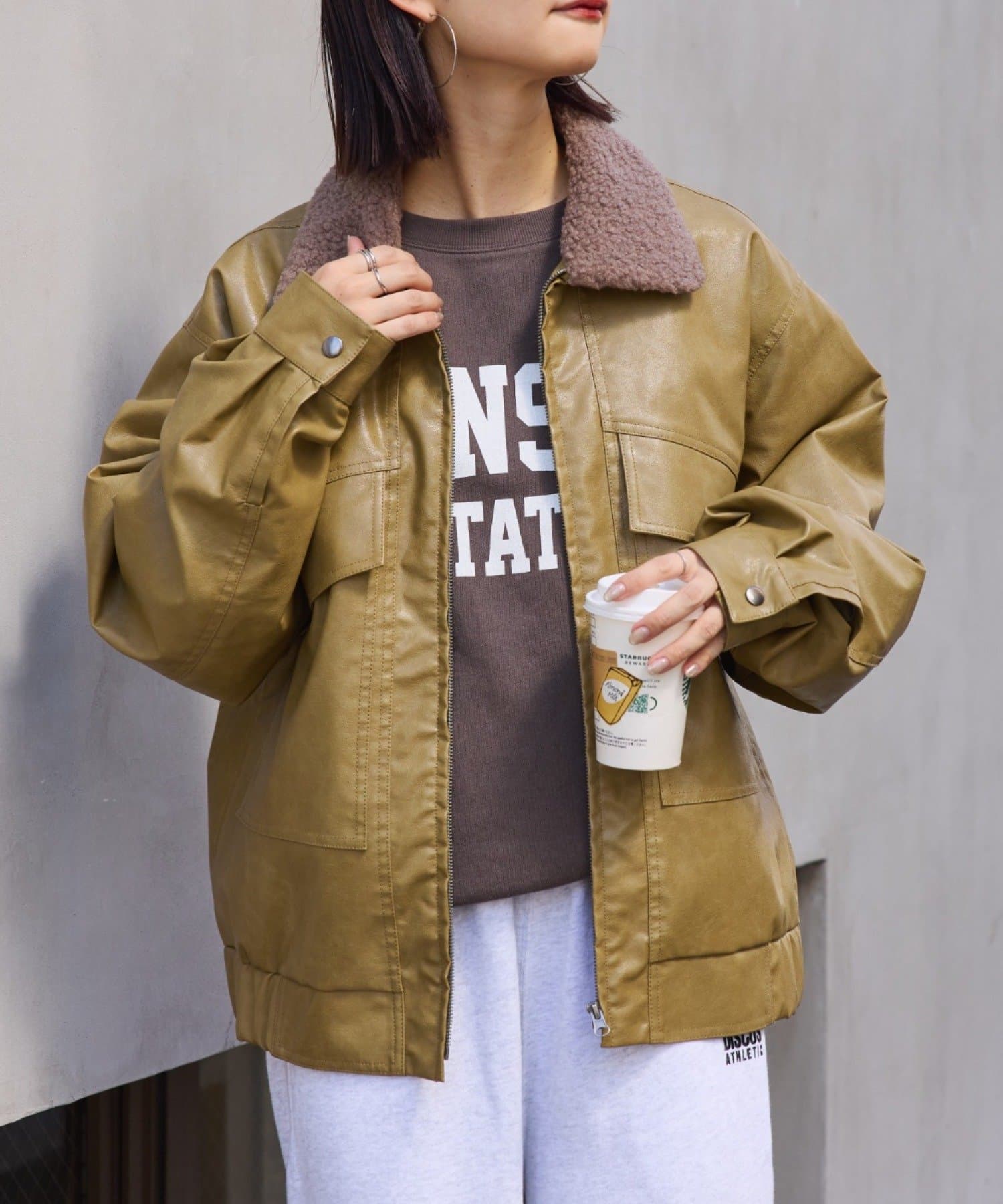 【ユニセックス】襟ボア取り外し可能/合皮/レザージップアップブルゾン