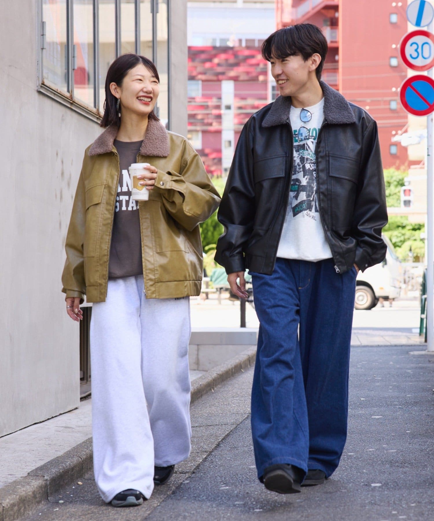 ショートボトムにロングブーツなど女性がオーバーに着るのも可愛いユニセックス仕様です♩