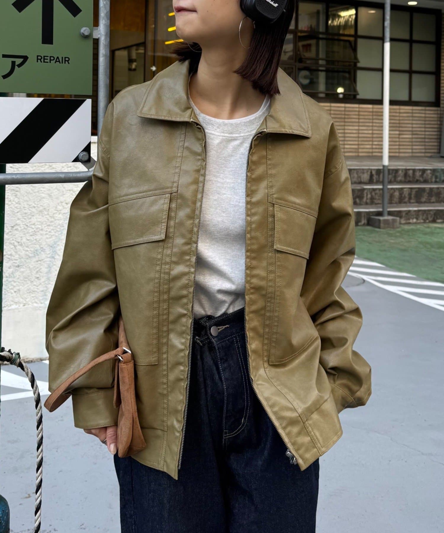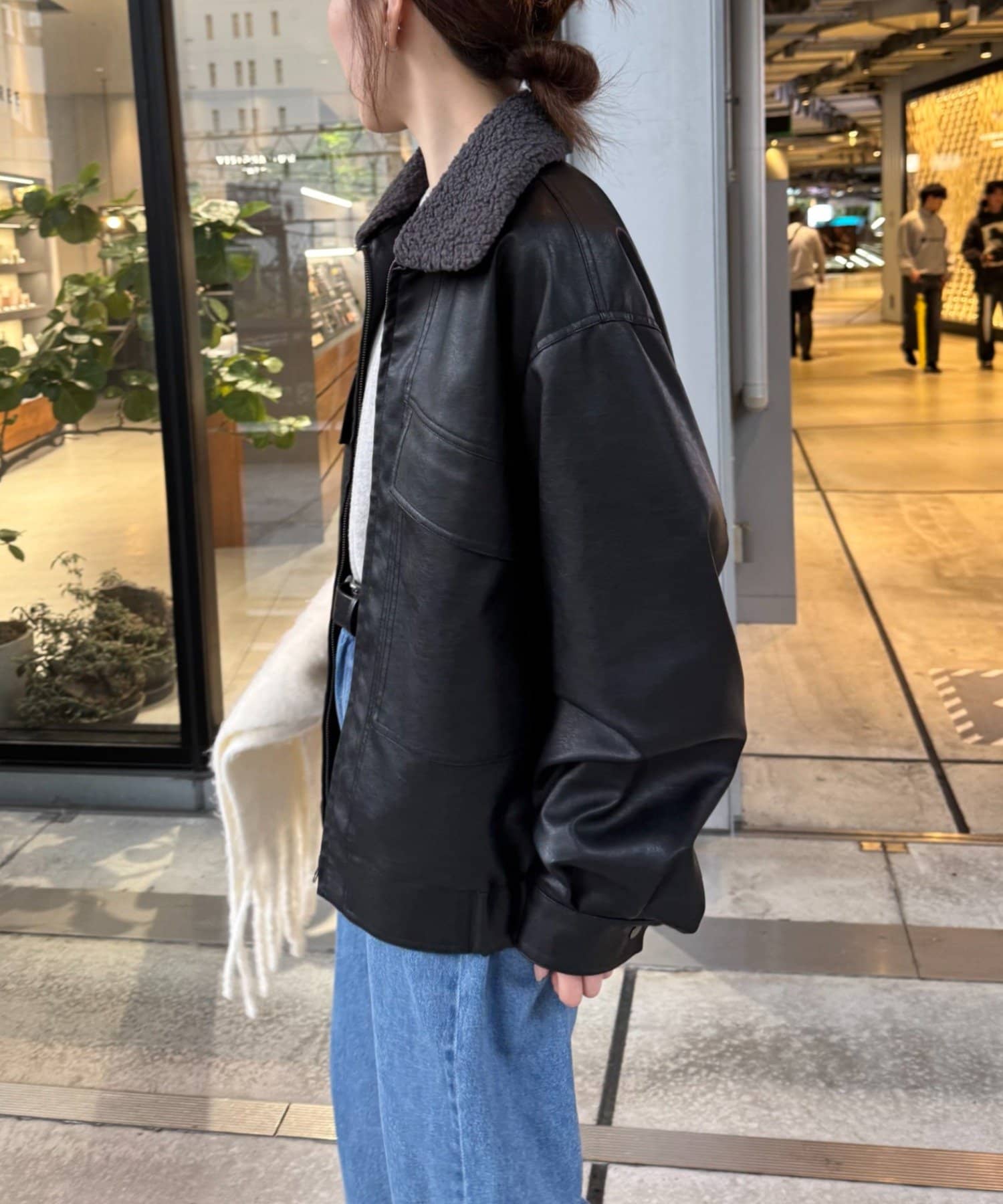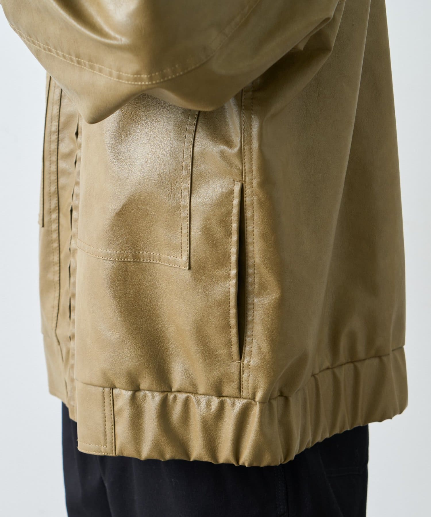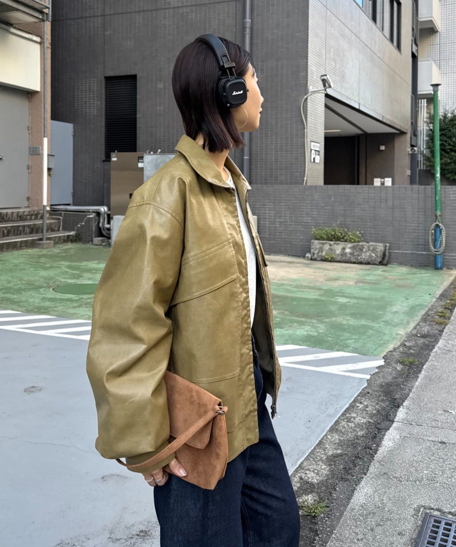 程よい光沢感とハリのあるヴィーガンレザーを使用したブルゾン!