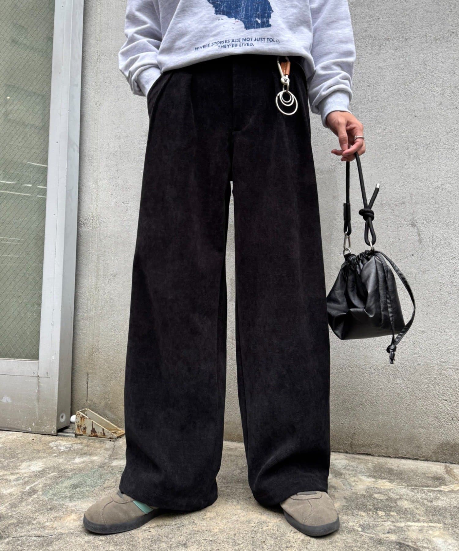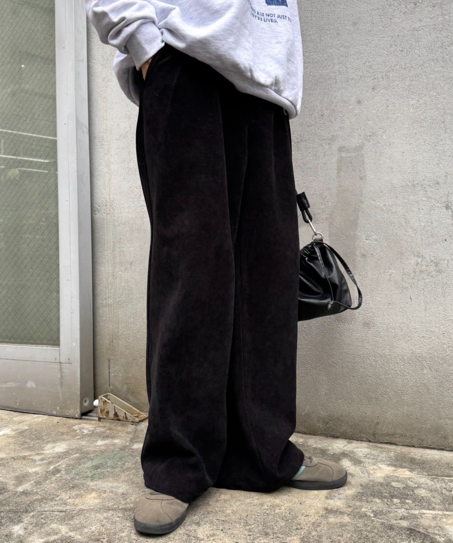 ほどよい肉感と起毛感のある生地を使用した、シーズンライクなボトム◎