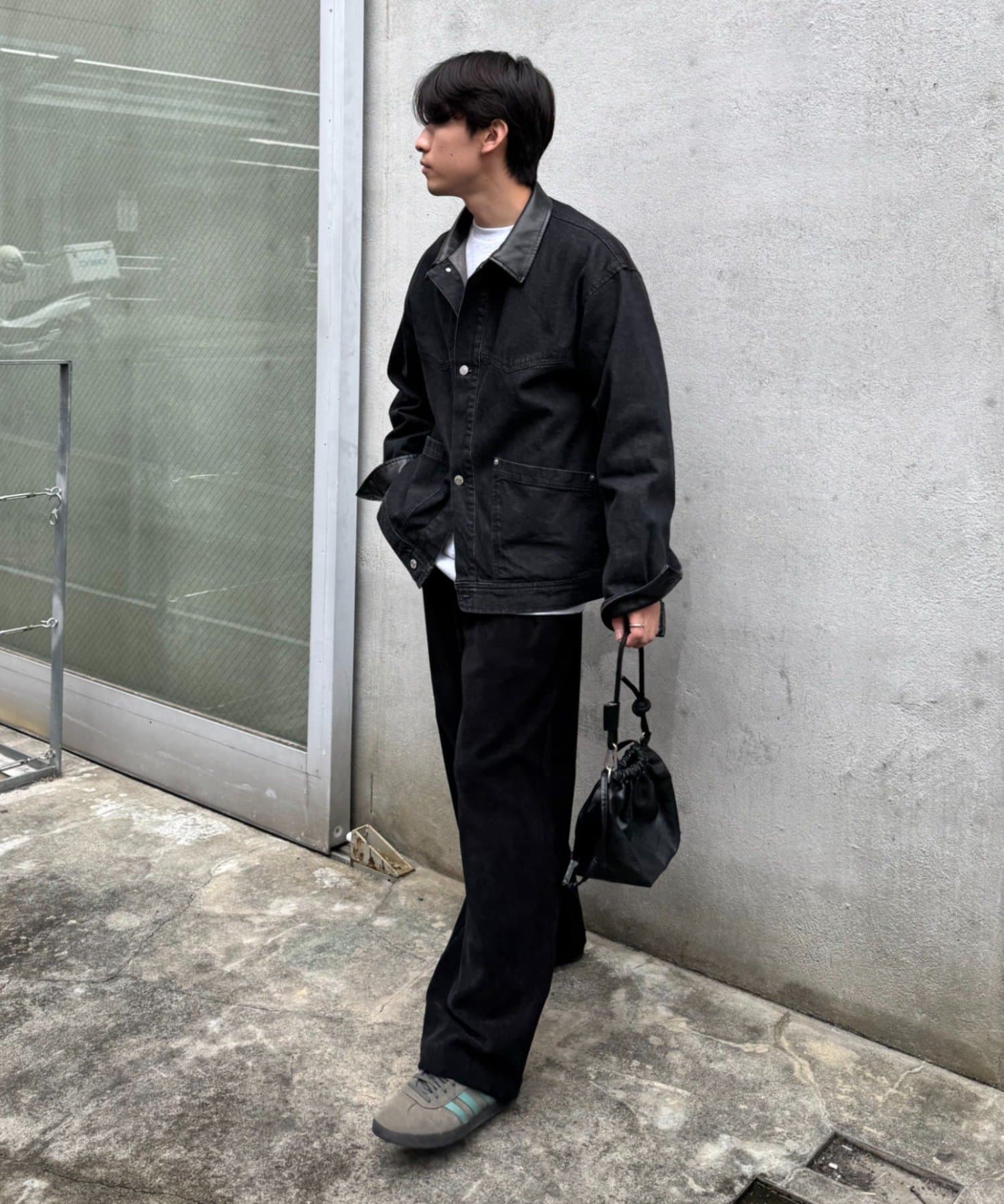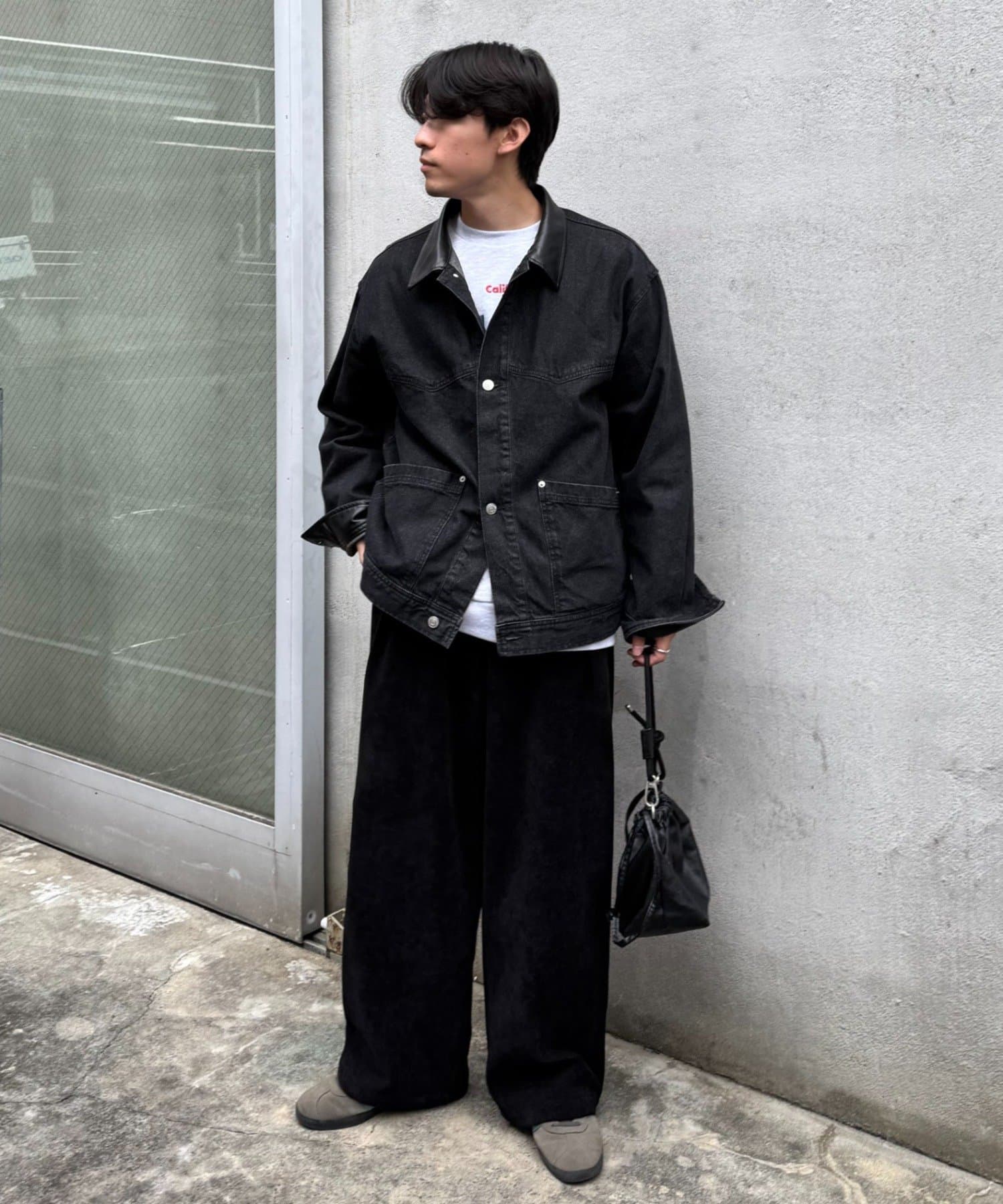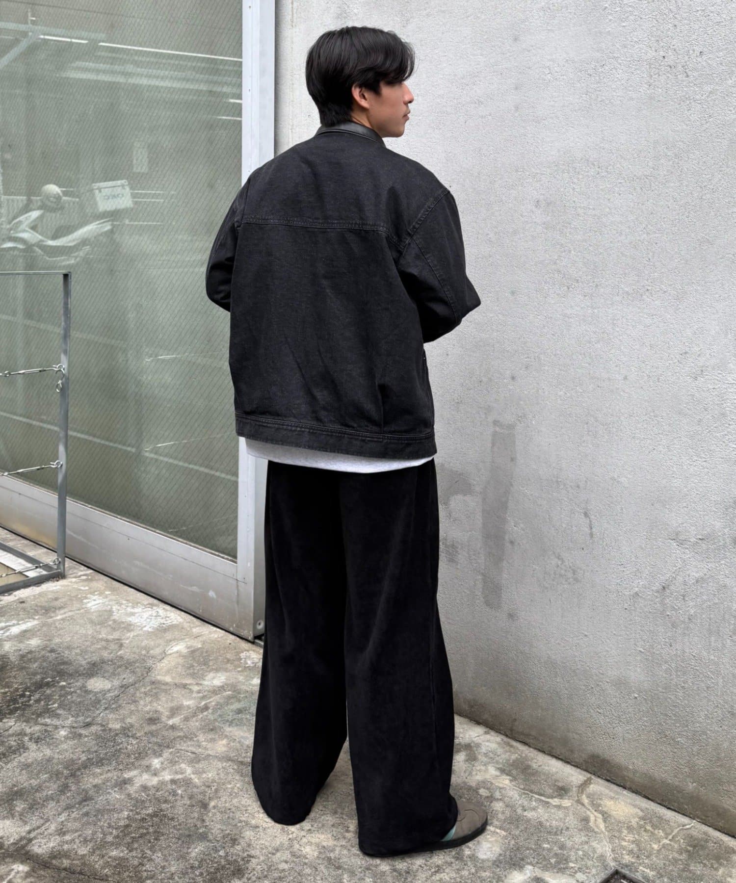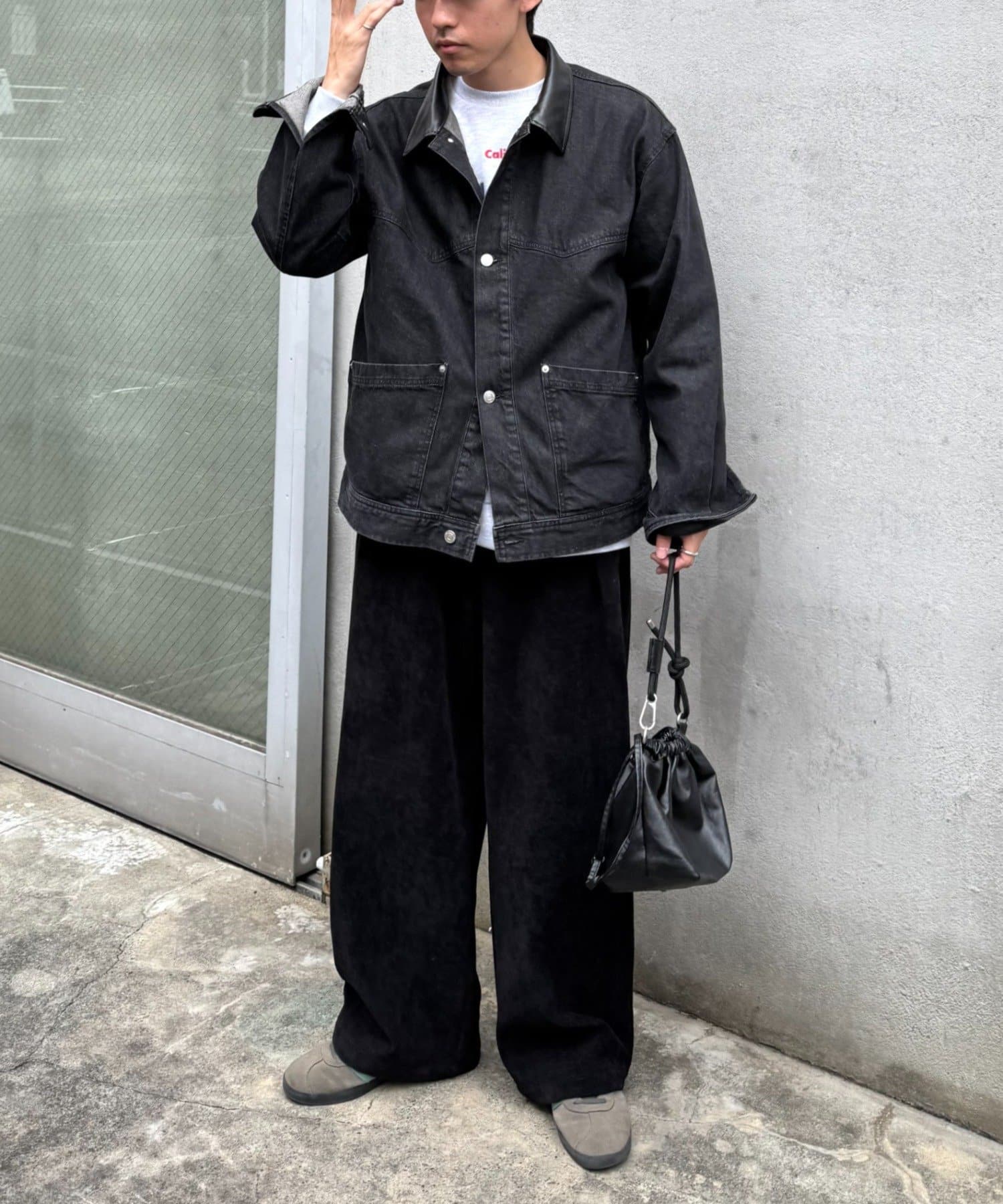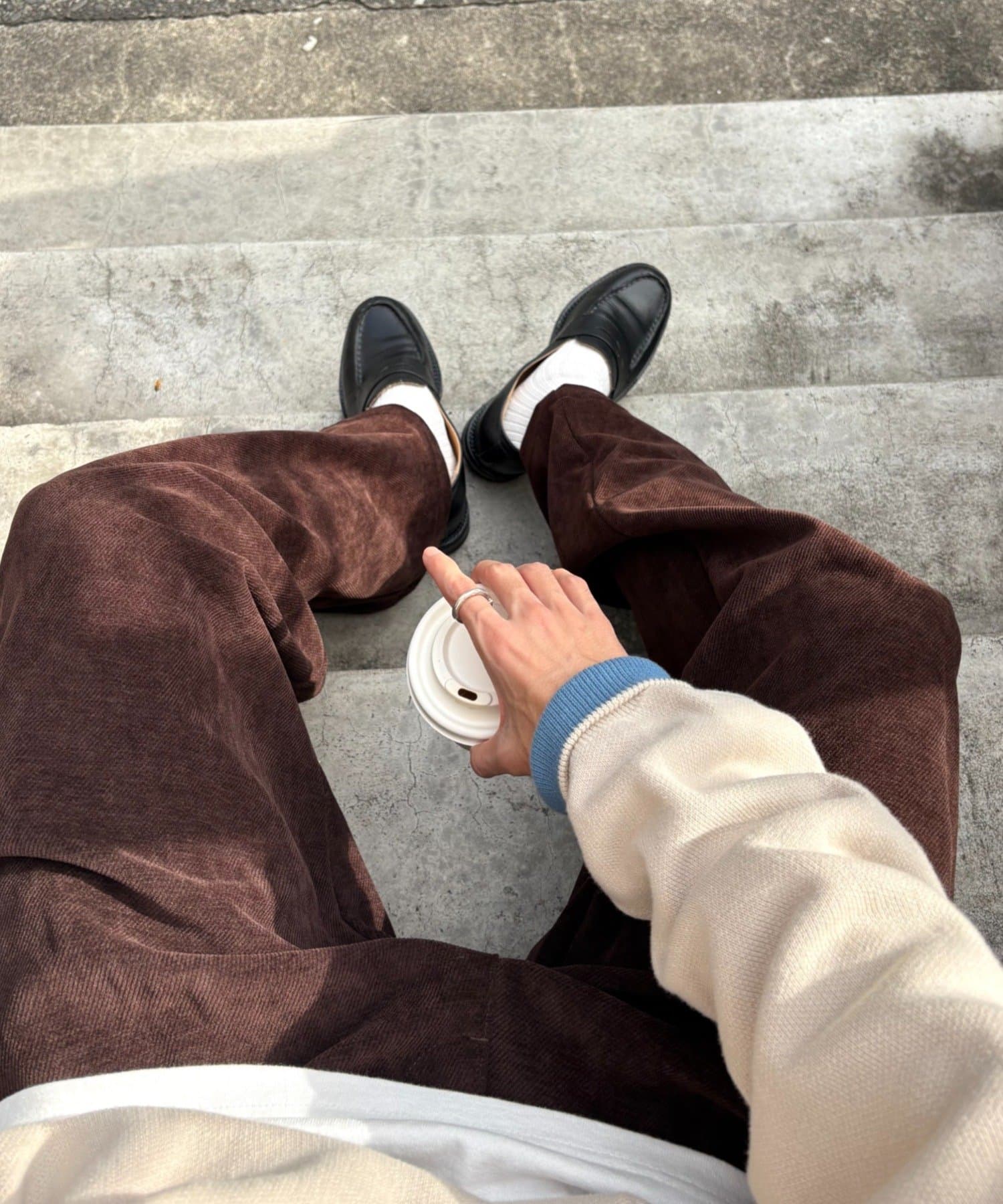 2タックとストレートシルエットでルーズすぎず大人っぽく決まり、