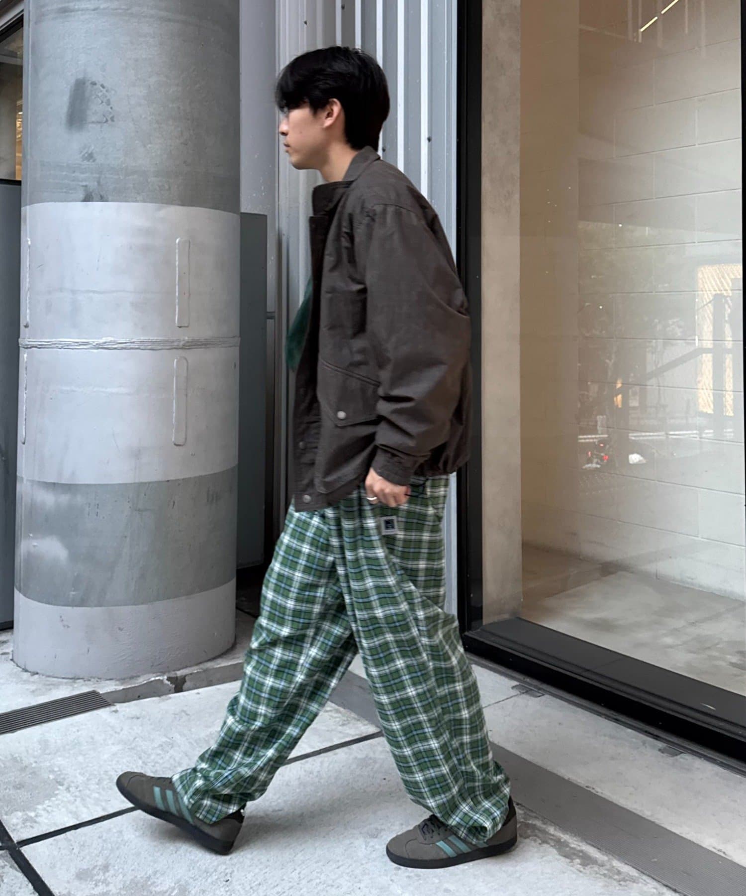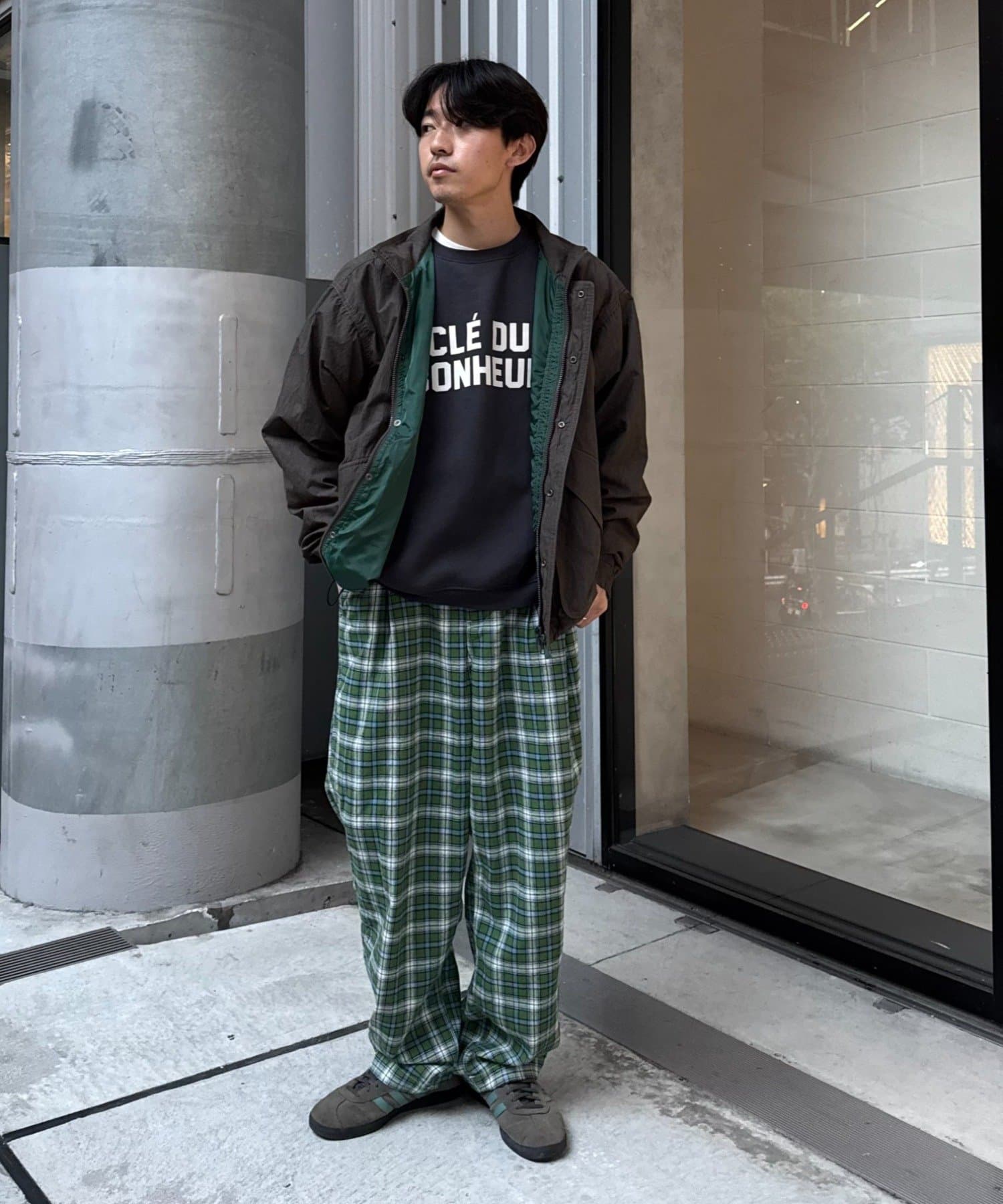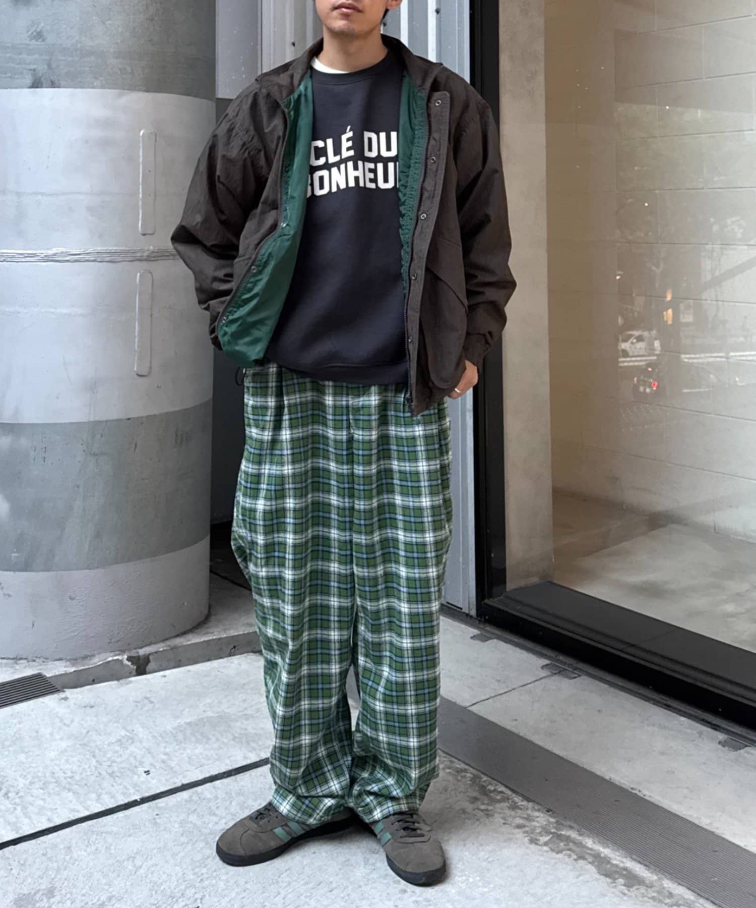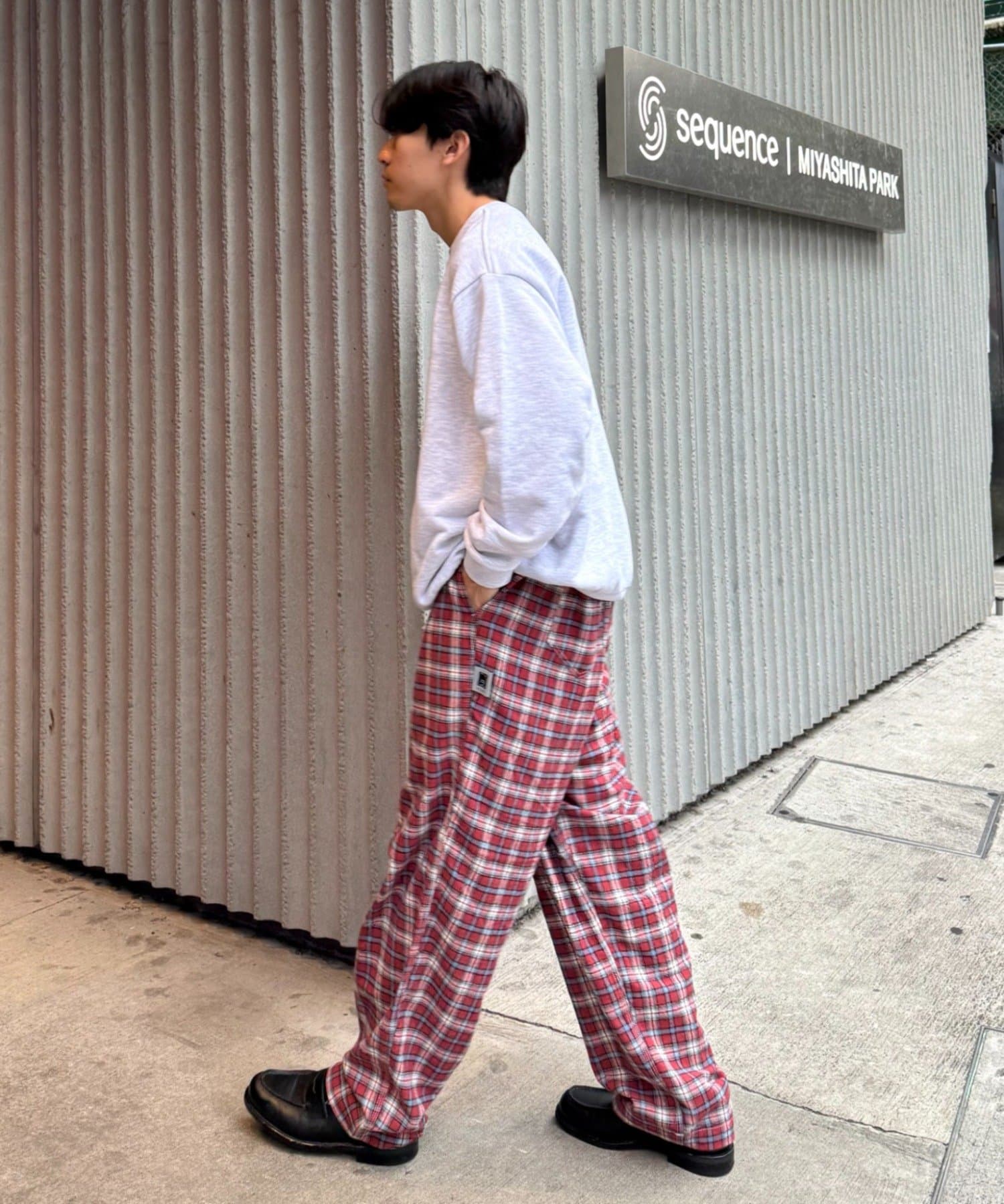 ゆったりとしたサイズ感を活かして、トップスはコンパクトにまとめるとバランス良く決まります。無地のスウェットやロンTと合わせてカジュアルに、セットアップで着れば洒落感のある大人ストリートスタイルに。スニーカーはもちろん、ブーツを合わせても季節感が出て◎。シンプルだけど存在感のあるチェック柄が、いつものスタイリングをアップデートしてくれます。