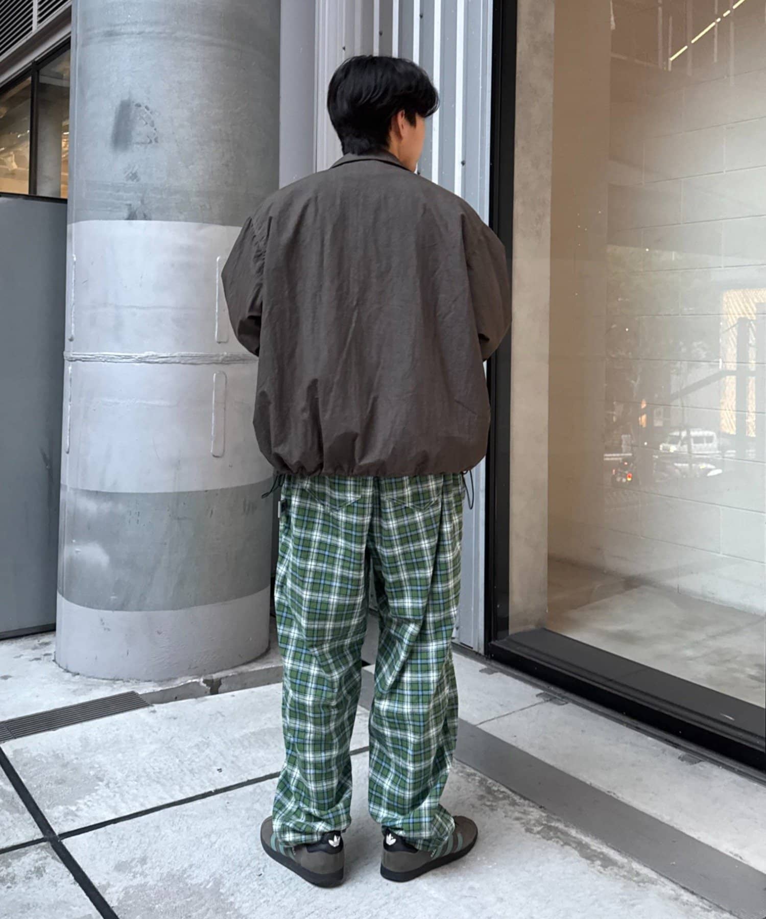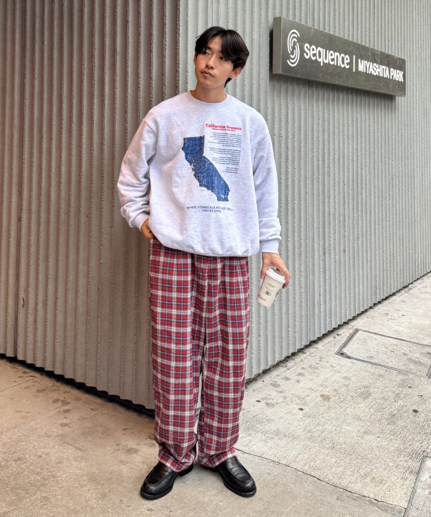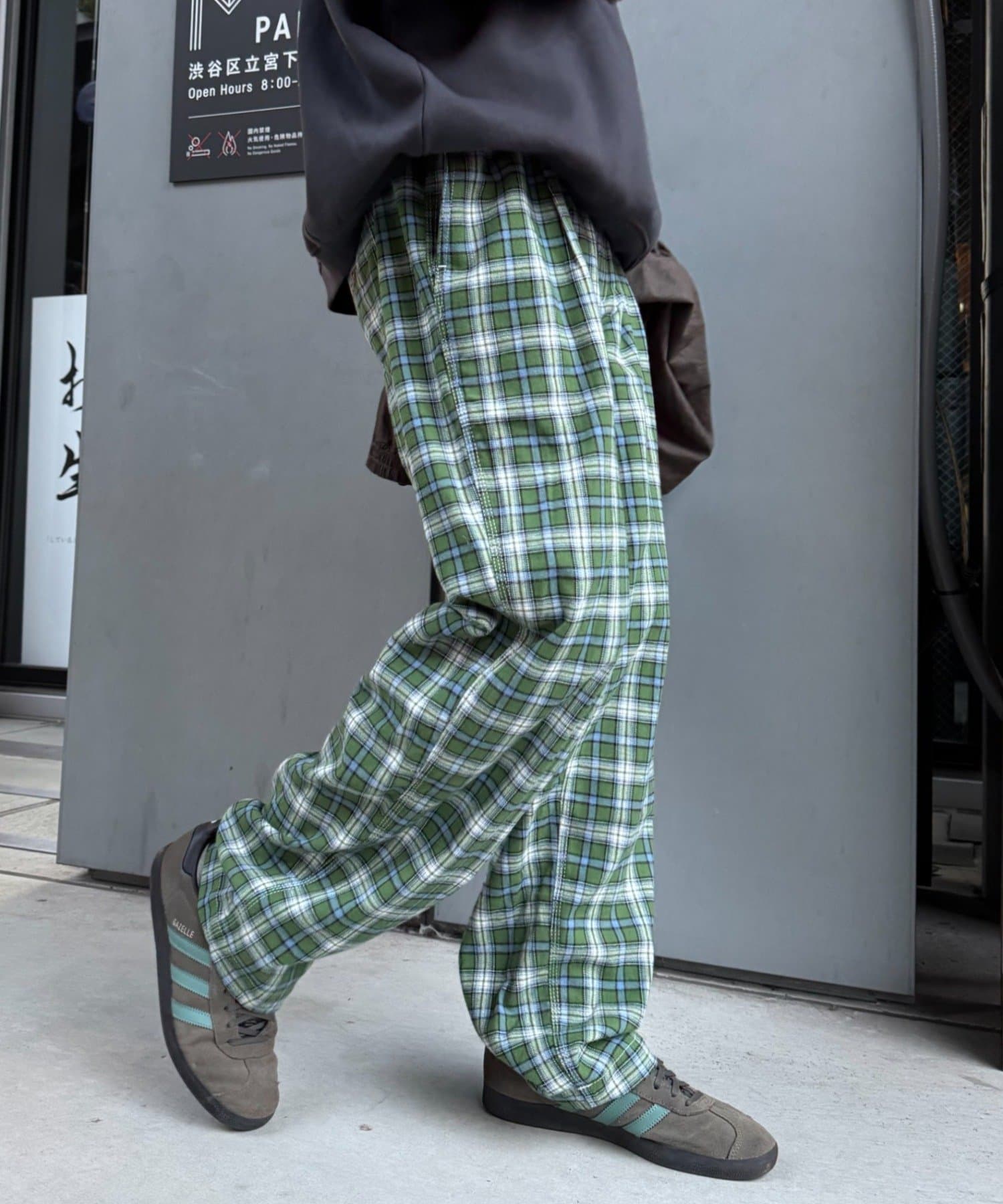 ゆったりとしたサイズ感を活かして、トップスはコンパクトにまとめるとバランス良く決まります。無地のスウェットやロンTと合わせてカジュアルに、セットアップで着れば洒落感のある大人ストリートスタイルに。スニーカーはもちろん、ブーツを合わせても季節感が出て◎。シンプルだけど存在感のあるチェック柄が、いつものスタイリングをアップデートしてくれます。