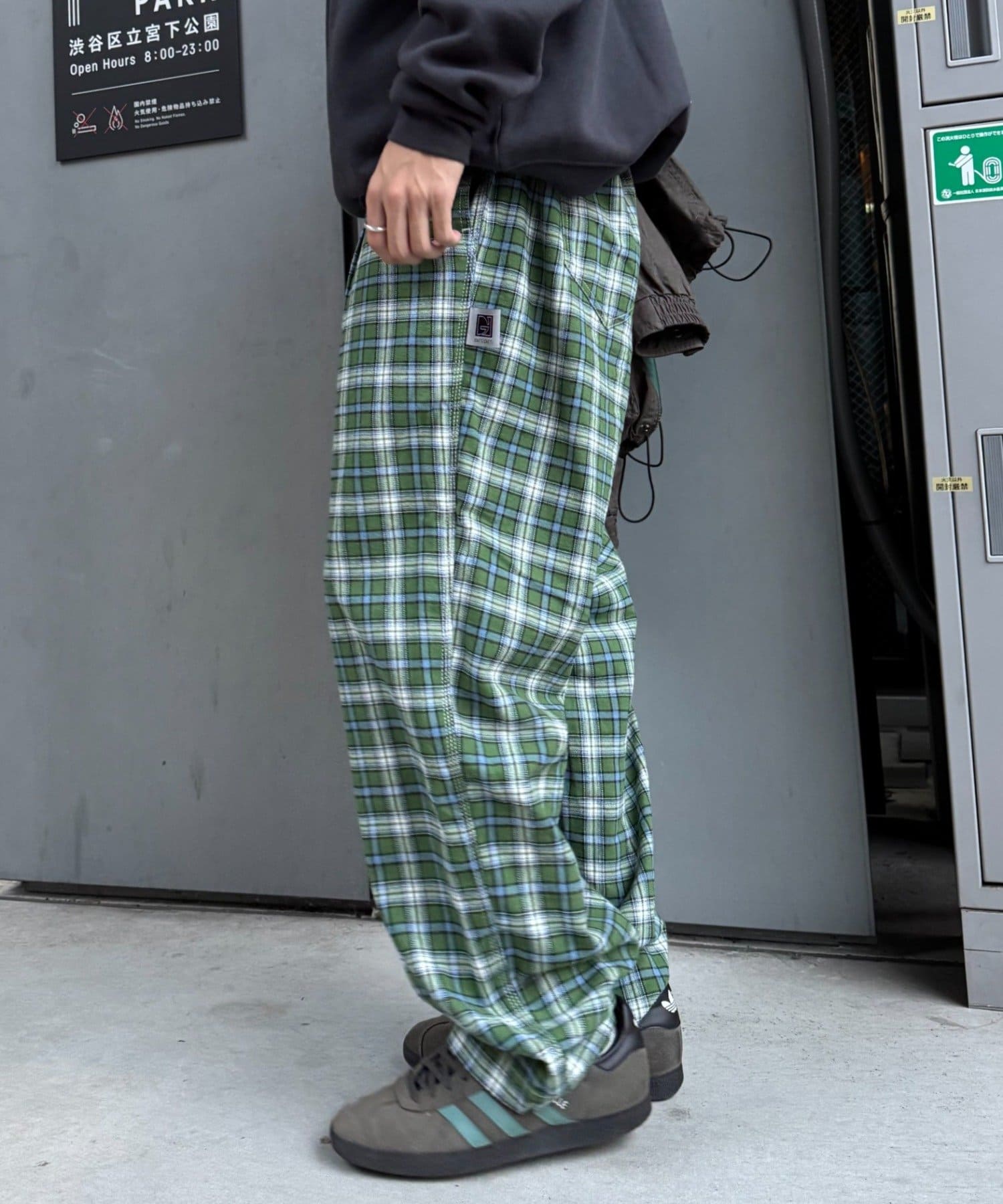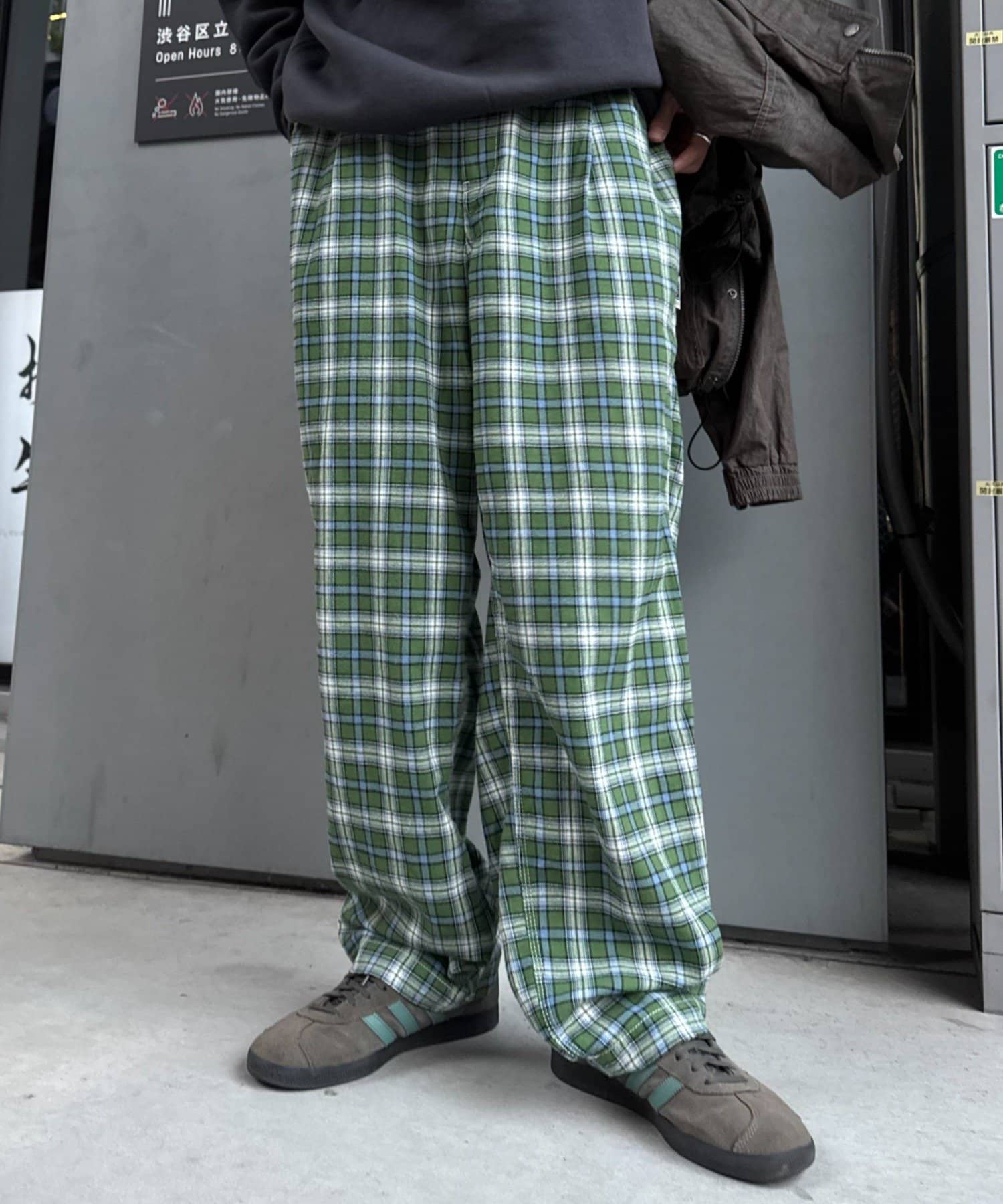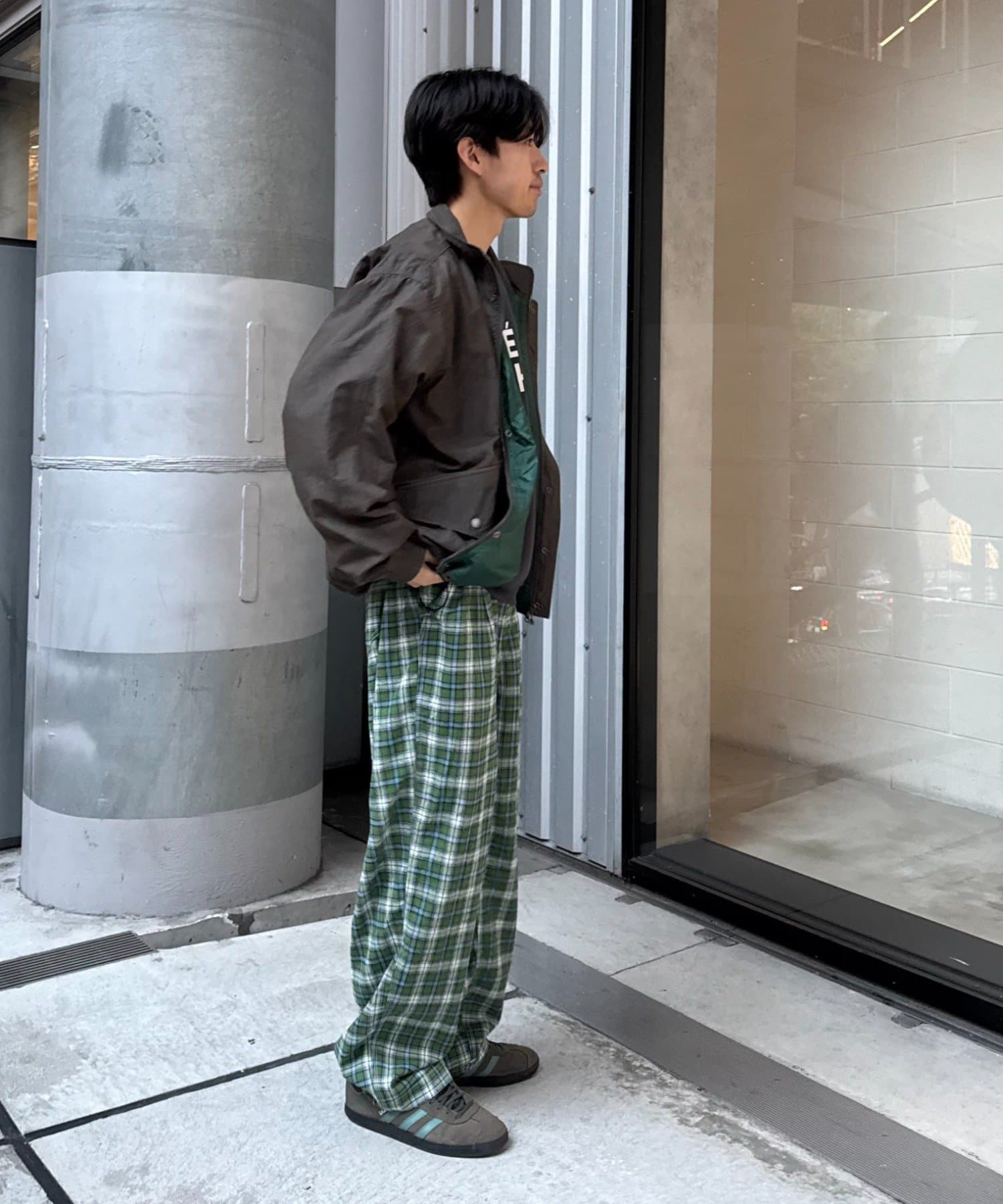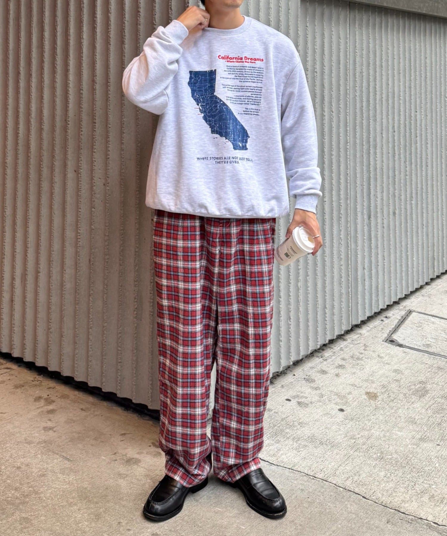 ゆったりとしたサイズ感を活かして、トップスはコンパクトにまとめるとバランス良く決まります。無地のスウェットやロンTと合わせてカジュアルに、セットアップで着れば洒落感のある大人ストリートスタイルに。スニーカーはもちろん、ブーツを合わせても季節感が出て◎。シンプルだけど存在感のあるチェック柄が、いつものスタイリングをアップデートしてくれます。