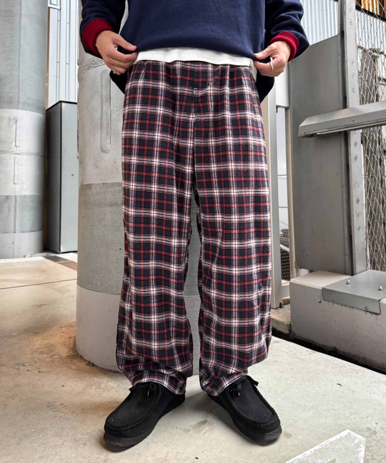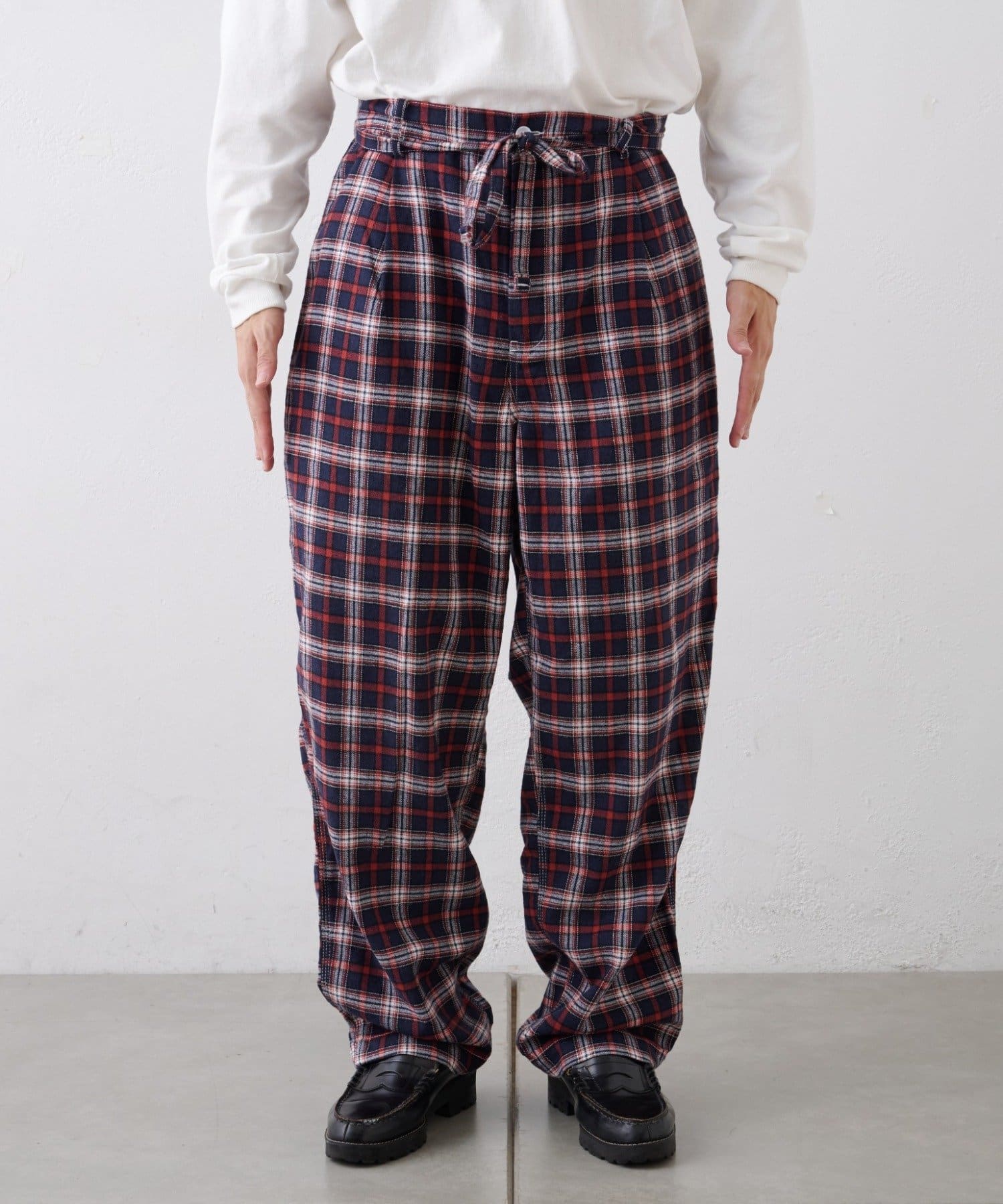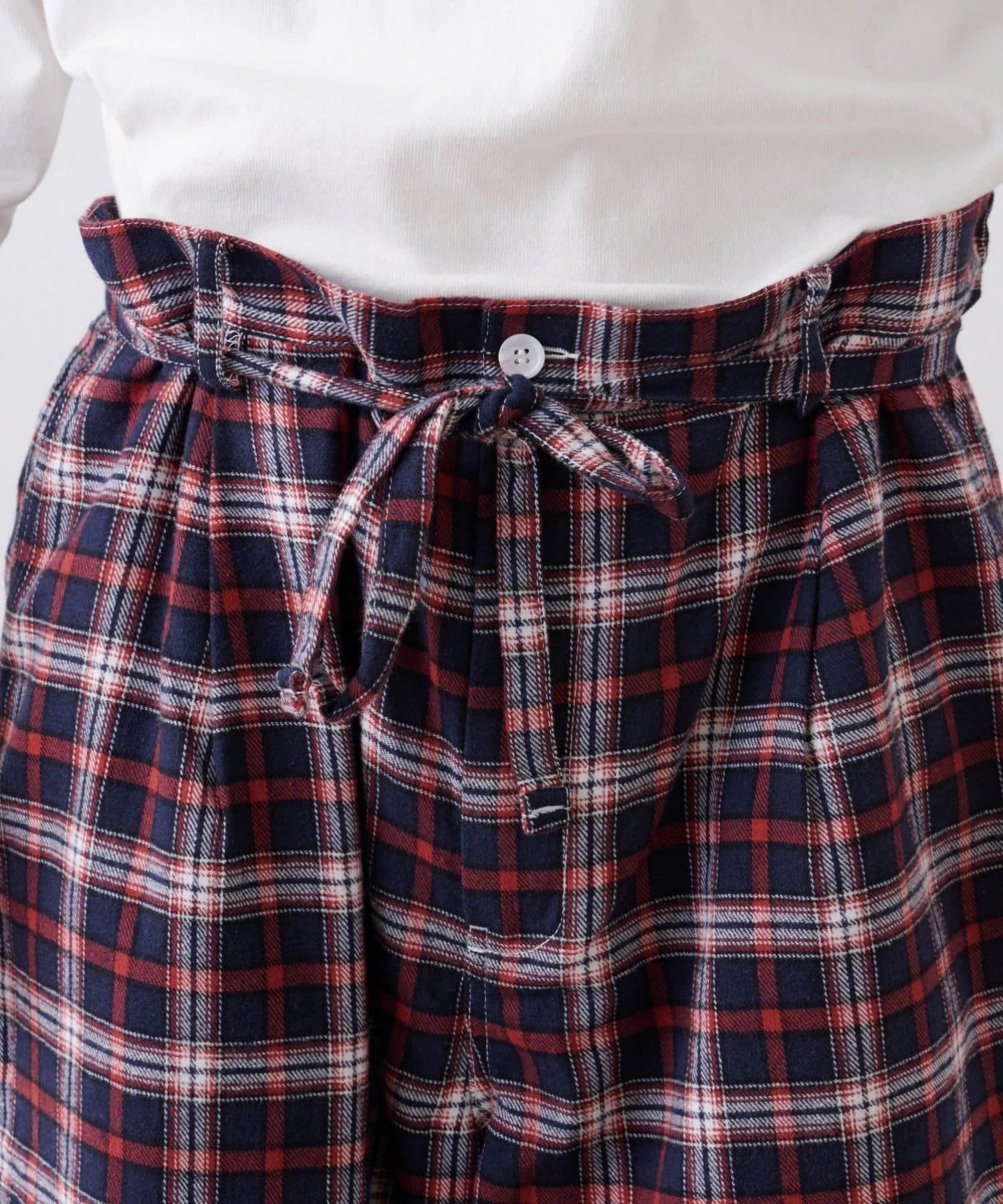 ブランケットのようにふんわりとした肌ざわりが魅力のネル素材を使用したチェックパンツ。
