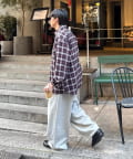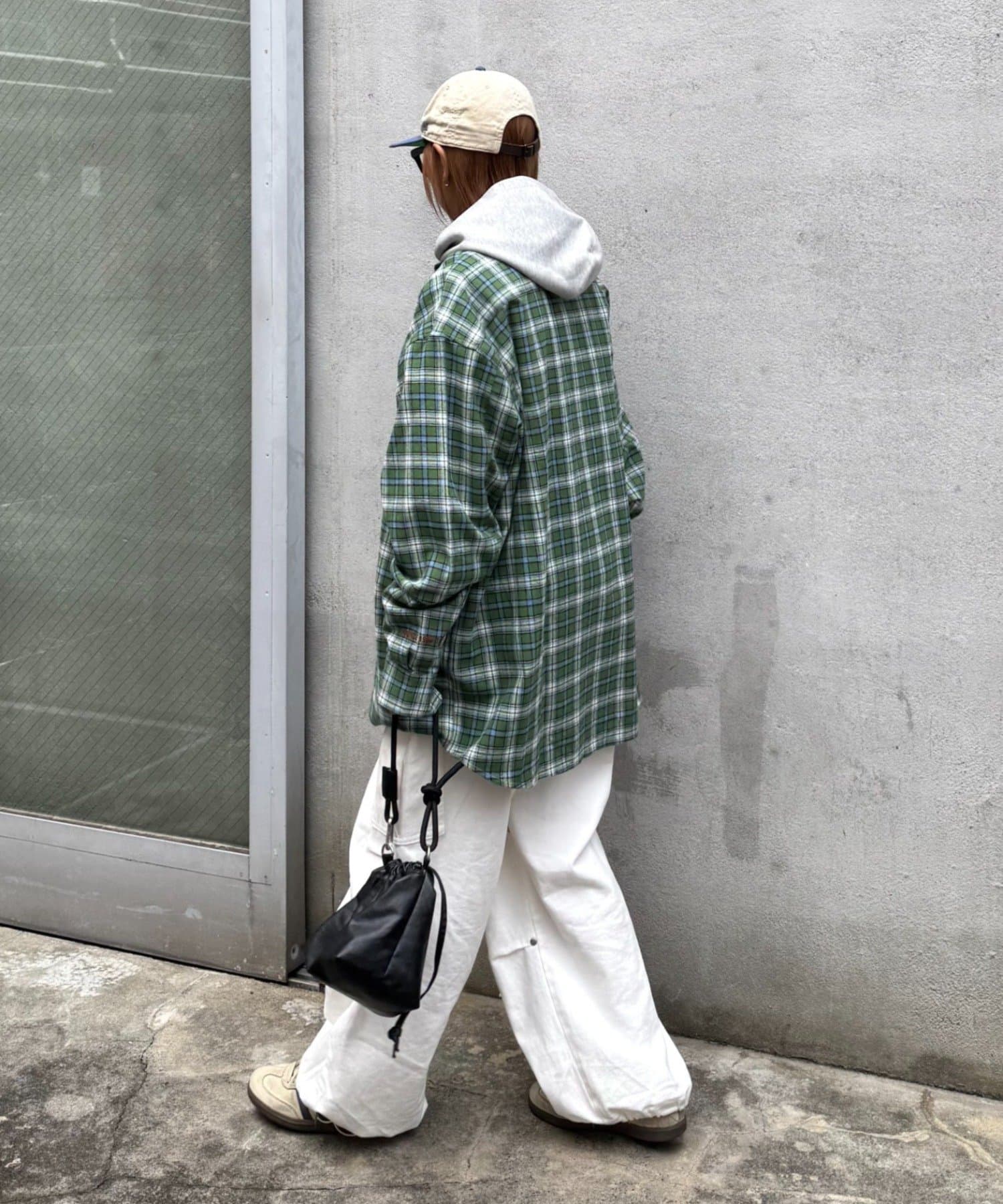 ボタンを閉じて太めのパンツを合わせれば、旬なストリートムードにまとまります。