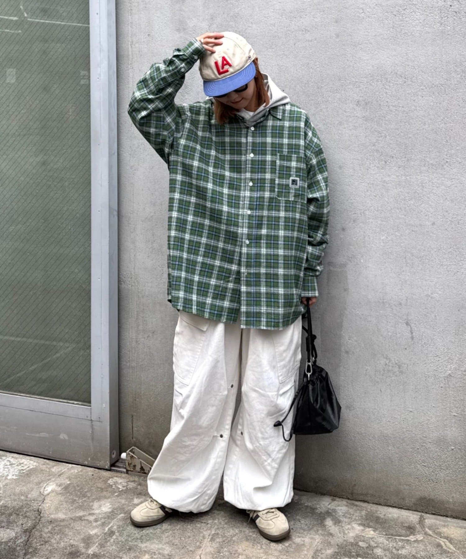【PATTIPATTI】ビックシルエットブランケットネルチェックシャツ