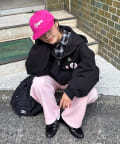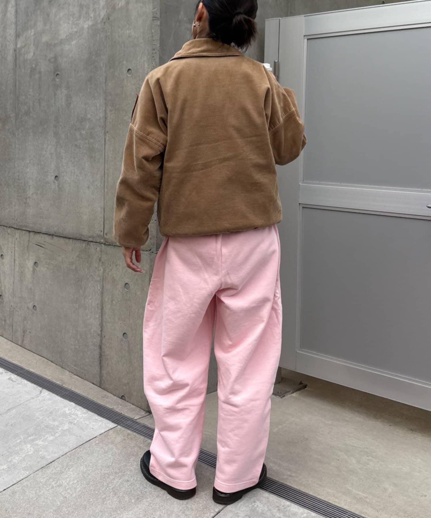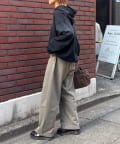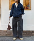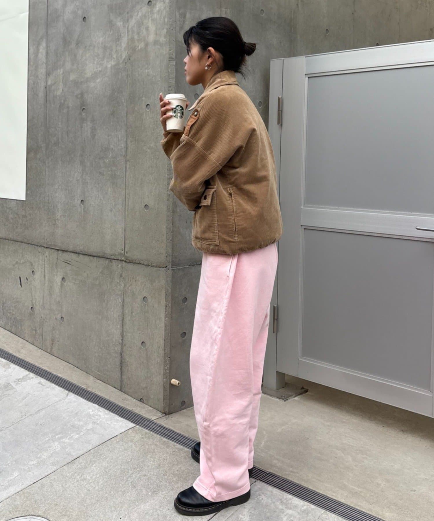 ワイドシルエットなので、トップスはコンパクトなものを選ぶとバランスが取りやすいです。