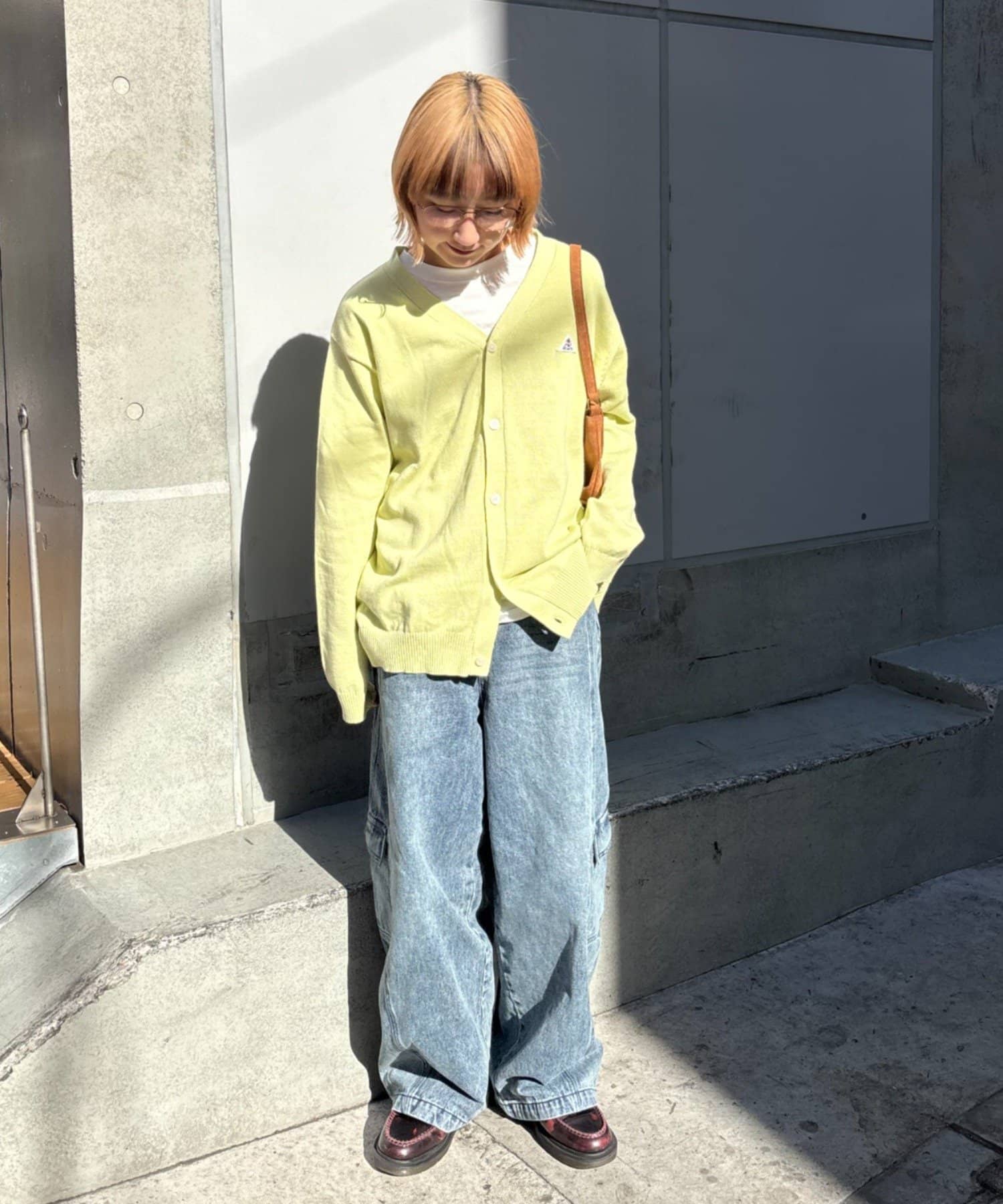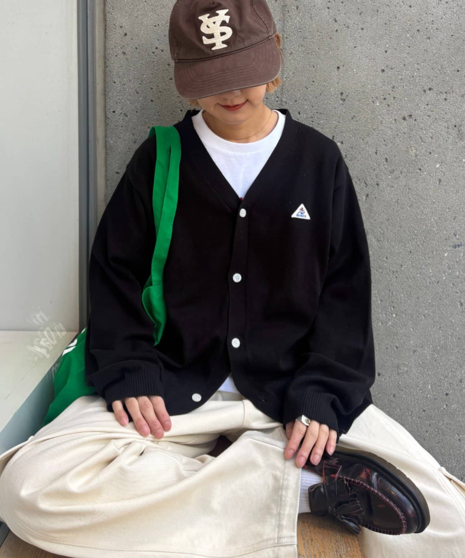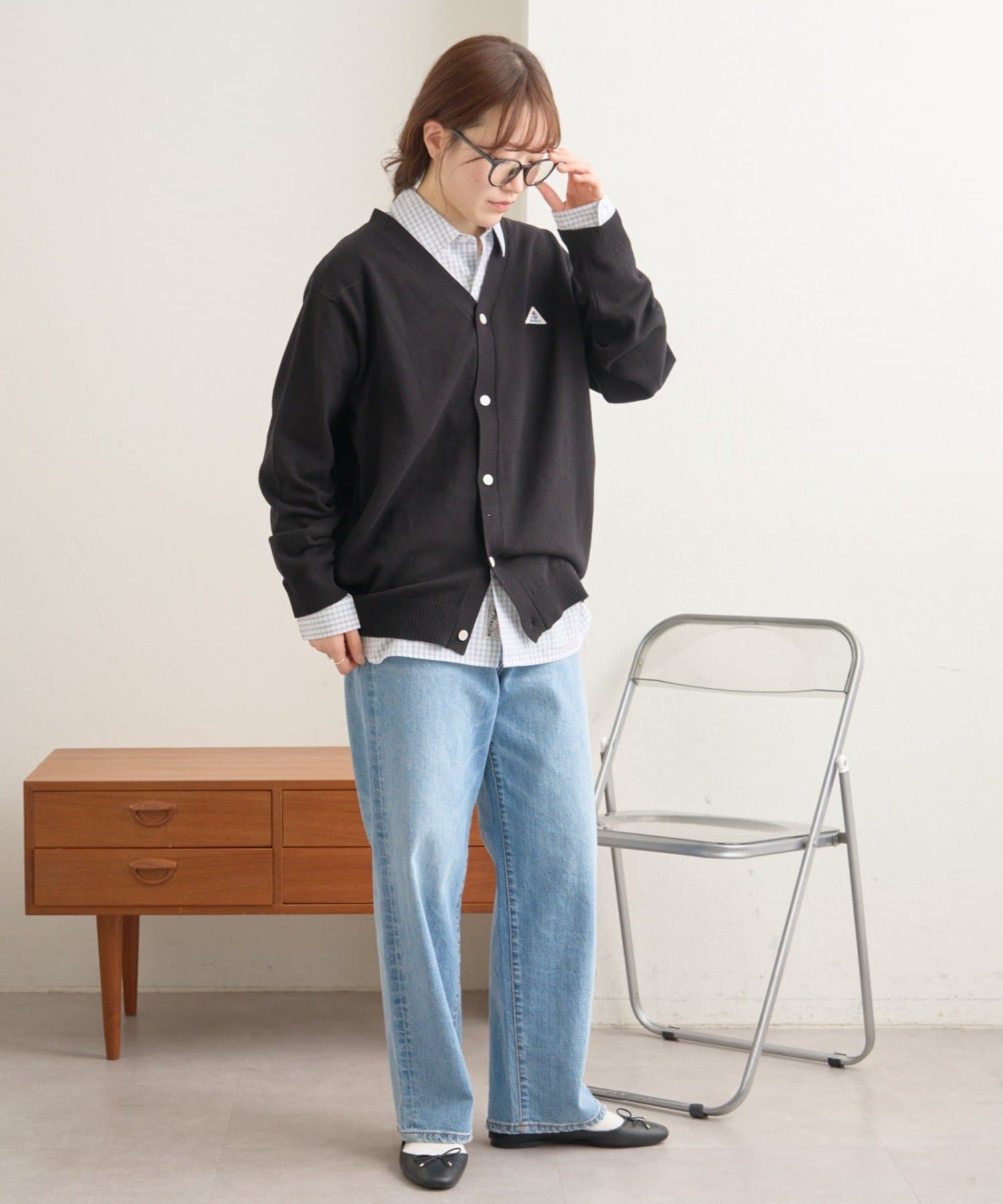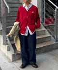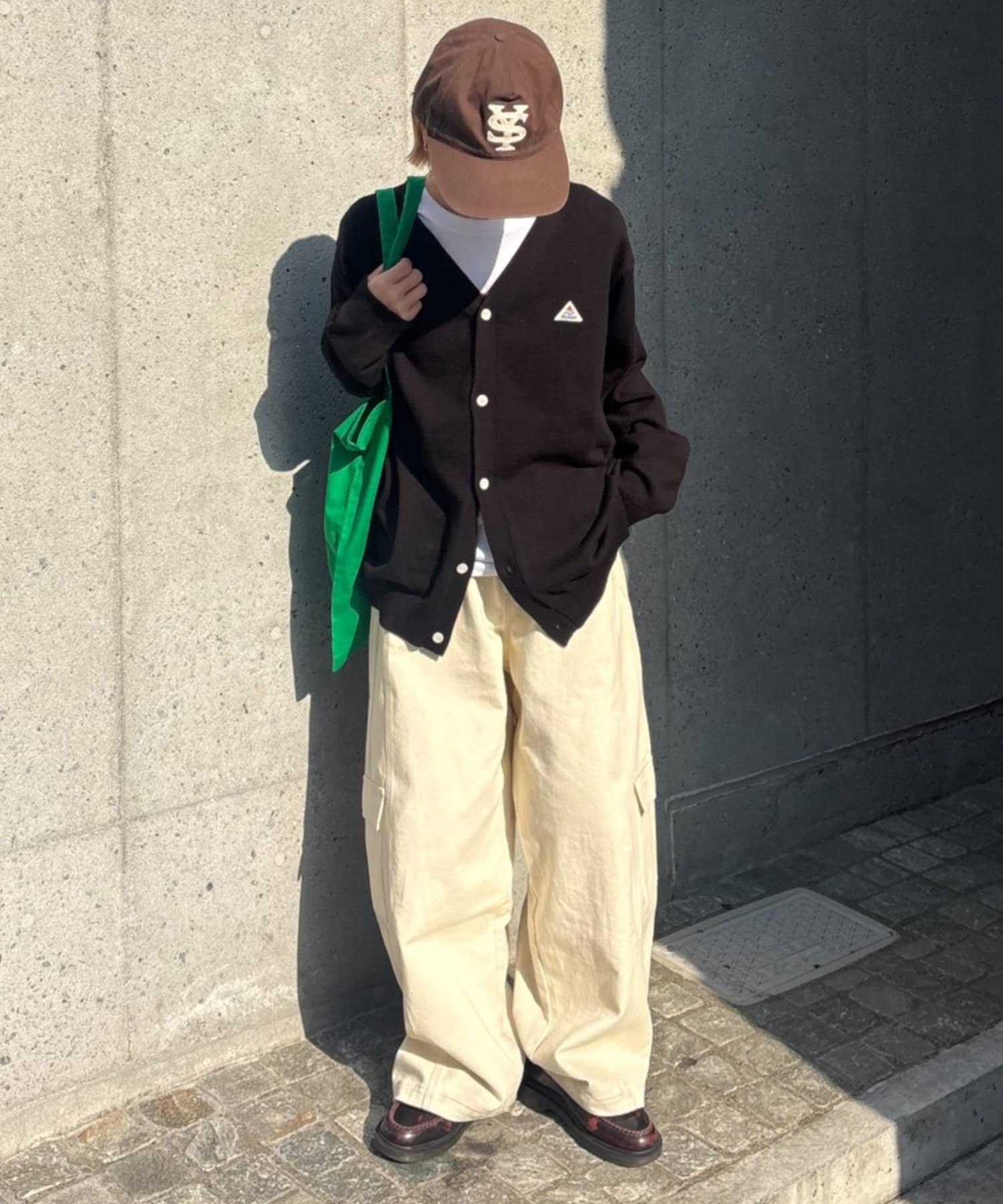 スラックスにローファーで綺麗めも演出できる万能カーディガンです。