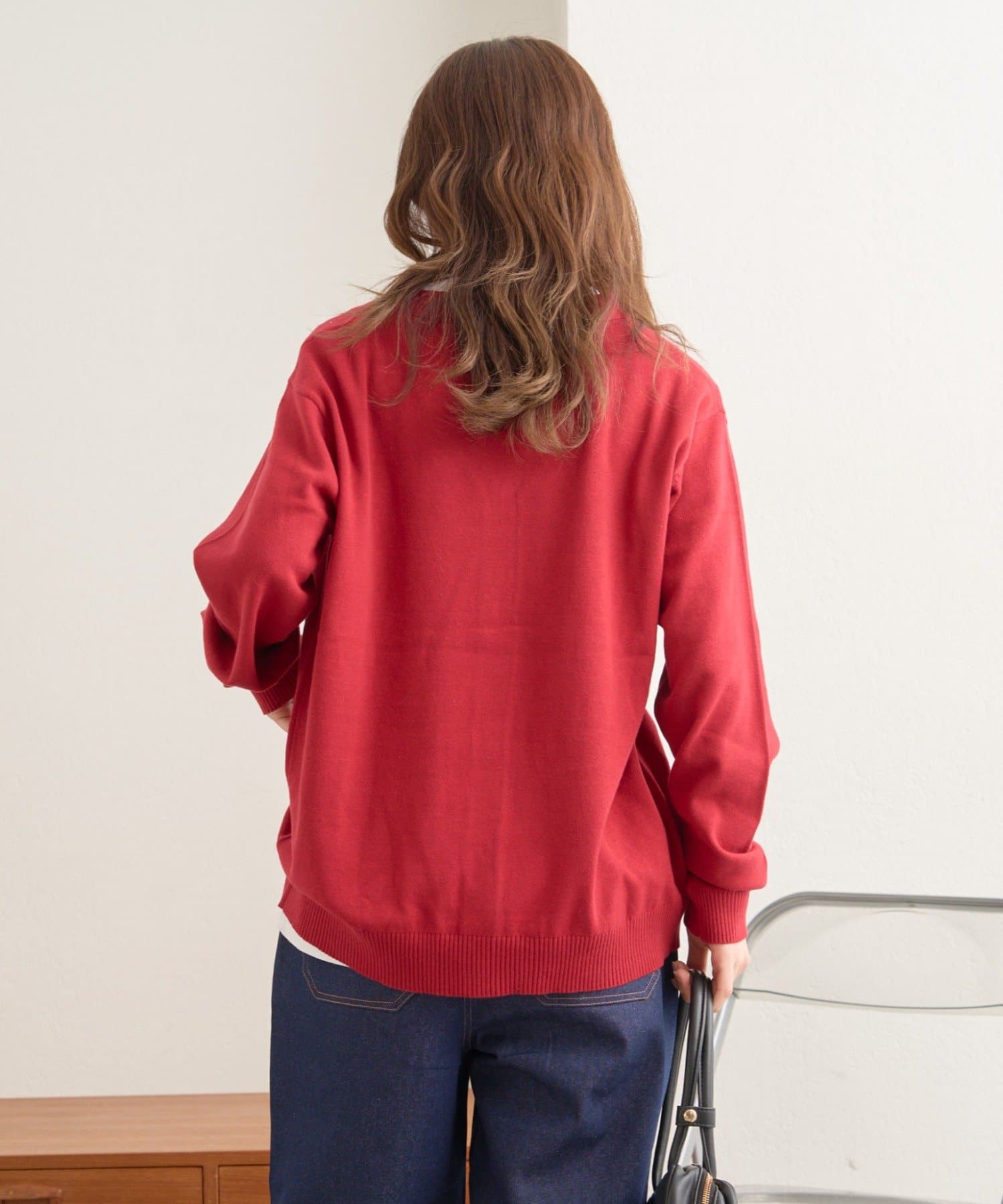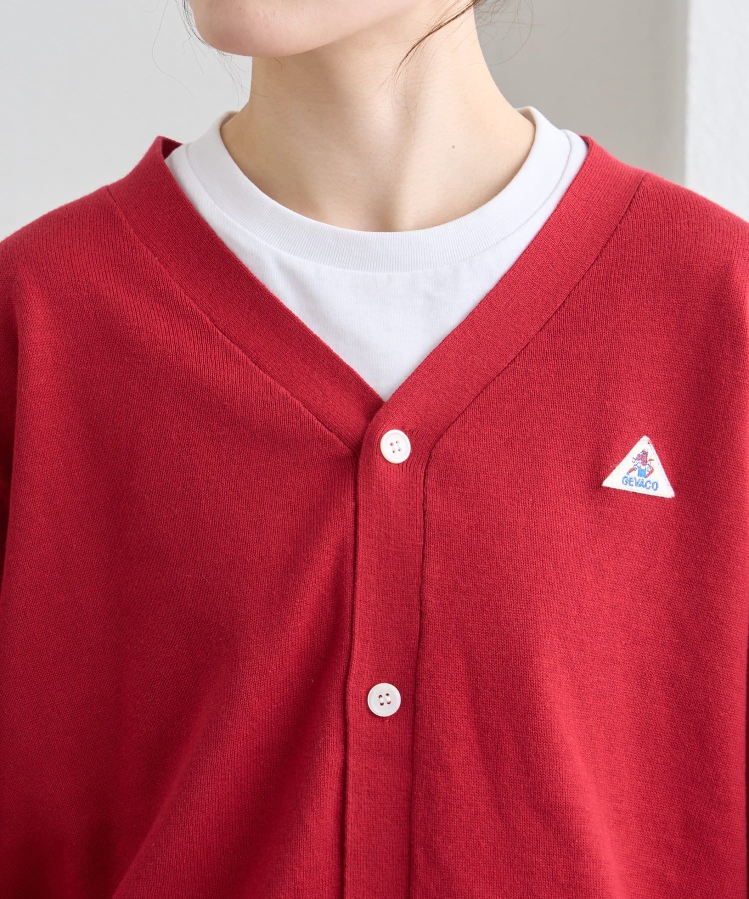 シンプルディテールに胸元のパッチがGEVACOらしいカーディガン。