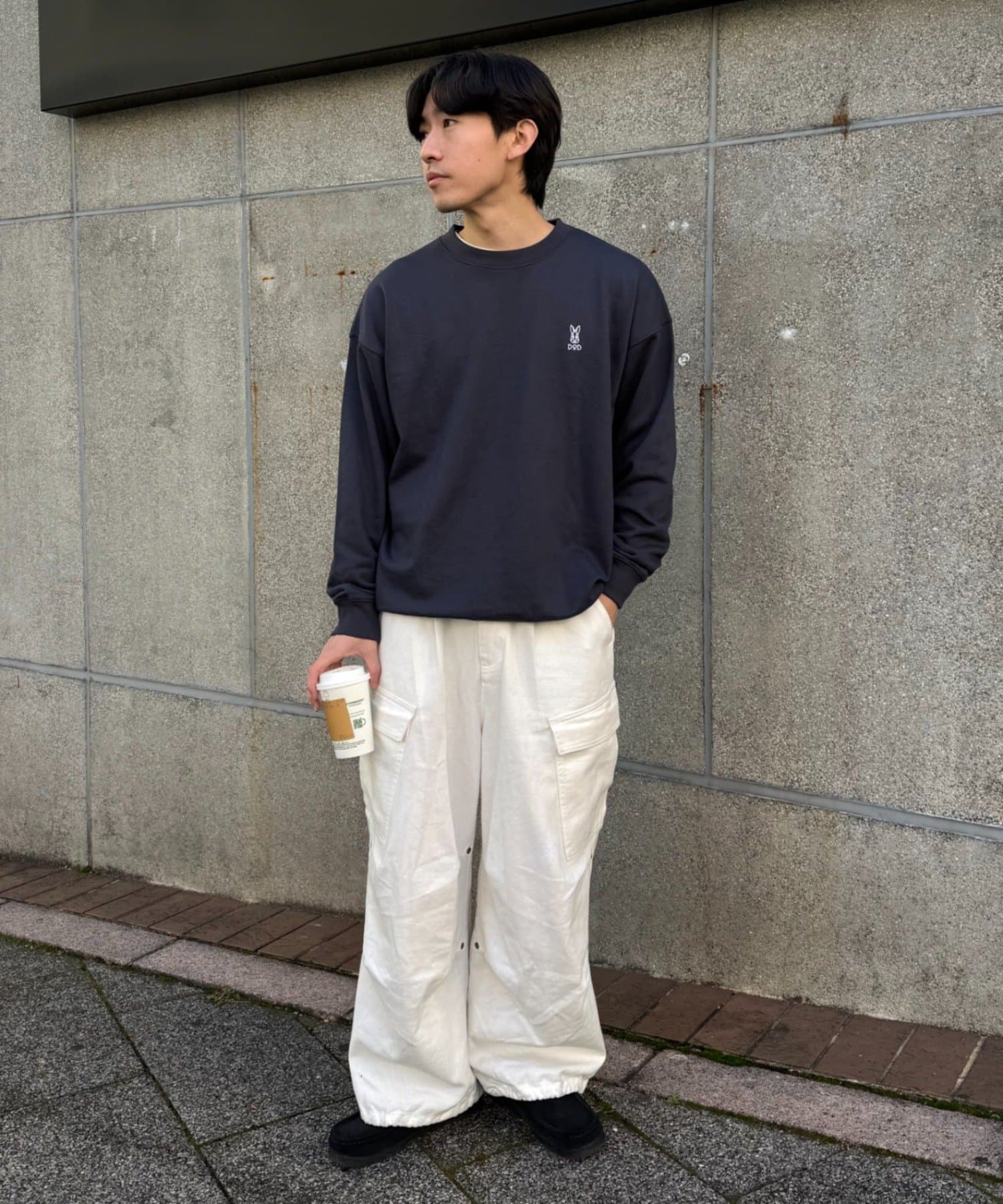 ゆったりめのシルエットで春も使いやすい裏毛素材で長くお使いいただけます。