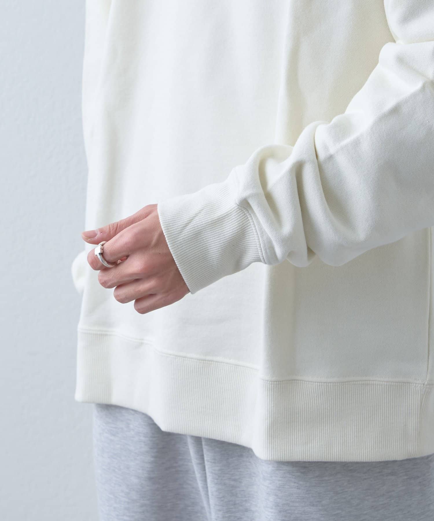 肩の落ち感を持たせたオーバーサイズが、ユニセックスで着やすくルーズな抜け感を演出。