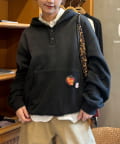 ラフになりがちなパーカーを、ヘンリーネックとヴィンテージライクなスプレー加工で