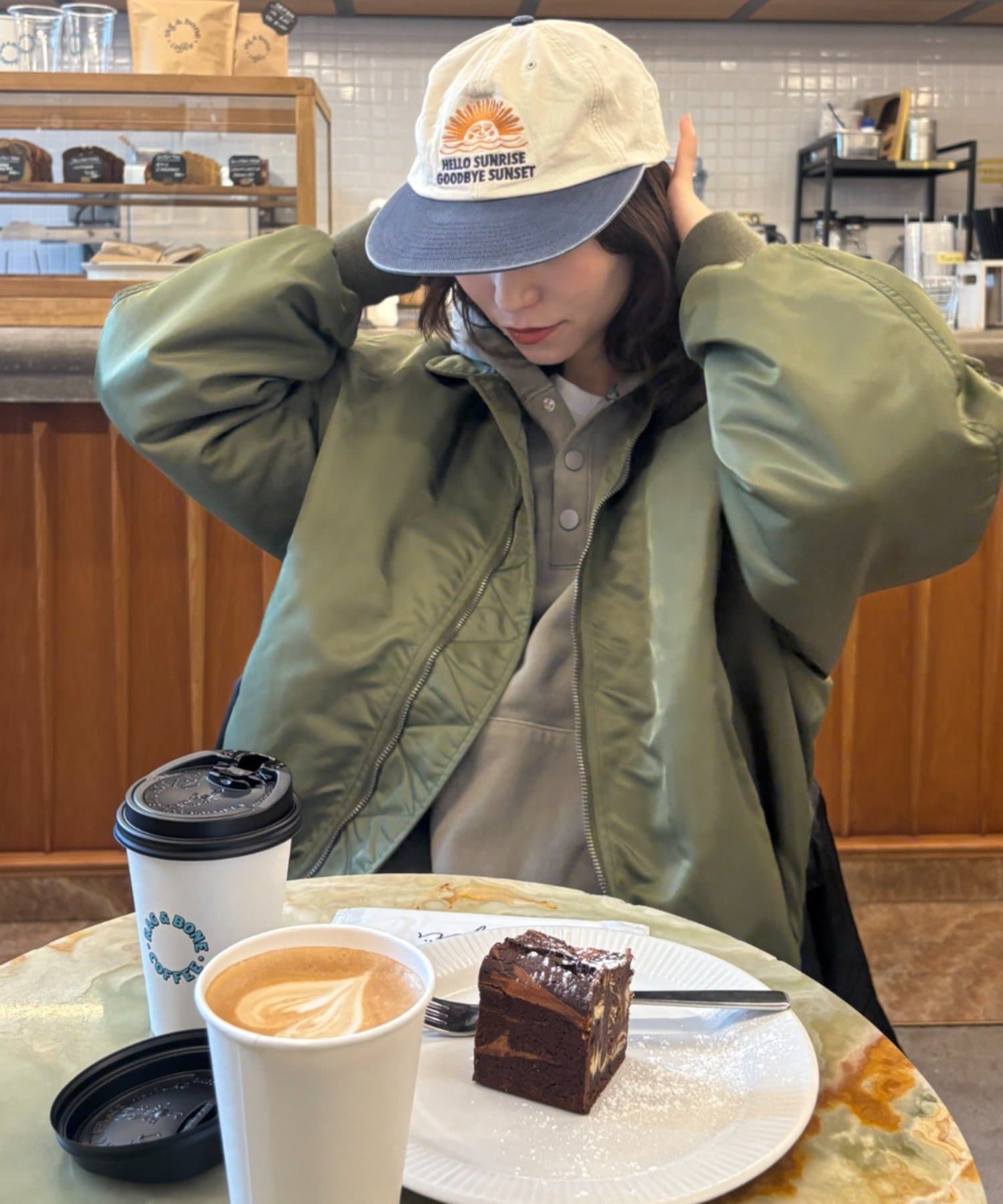 全体的にゆったりとしたシルエットで、丈はお尻が隠れるくらいです。