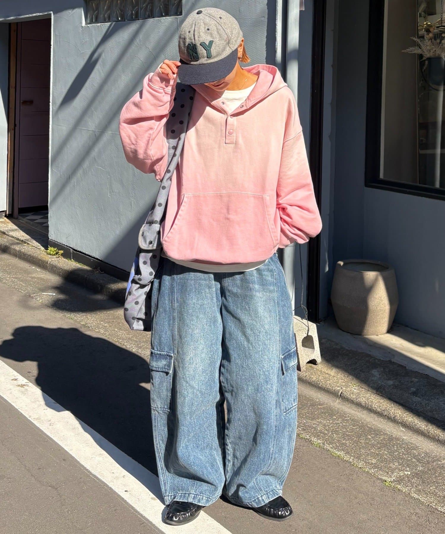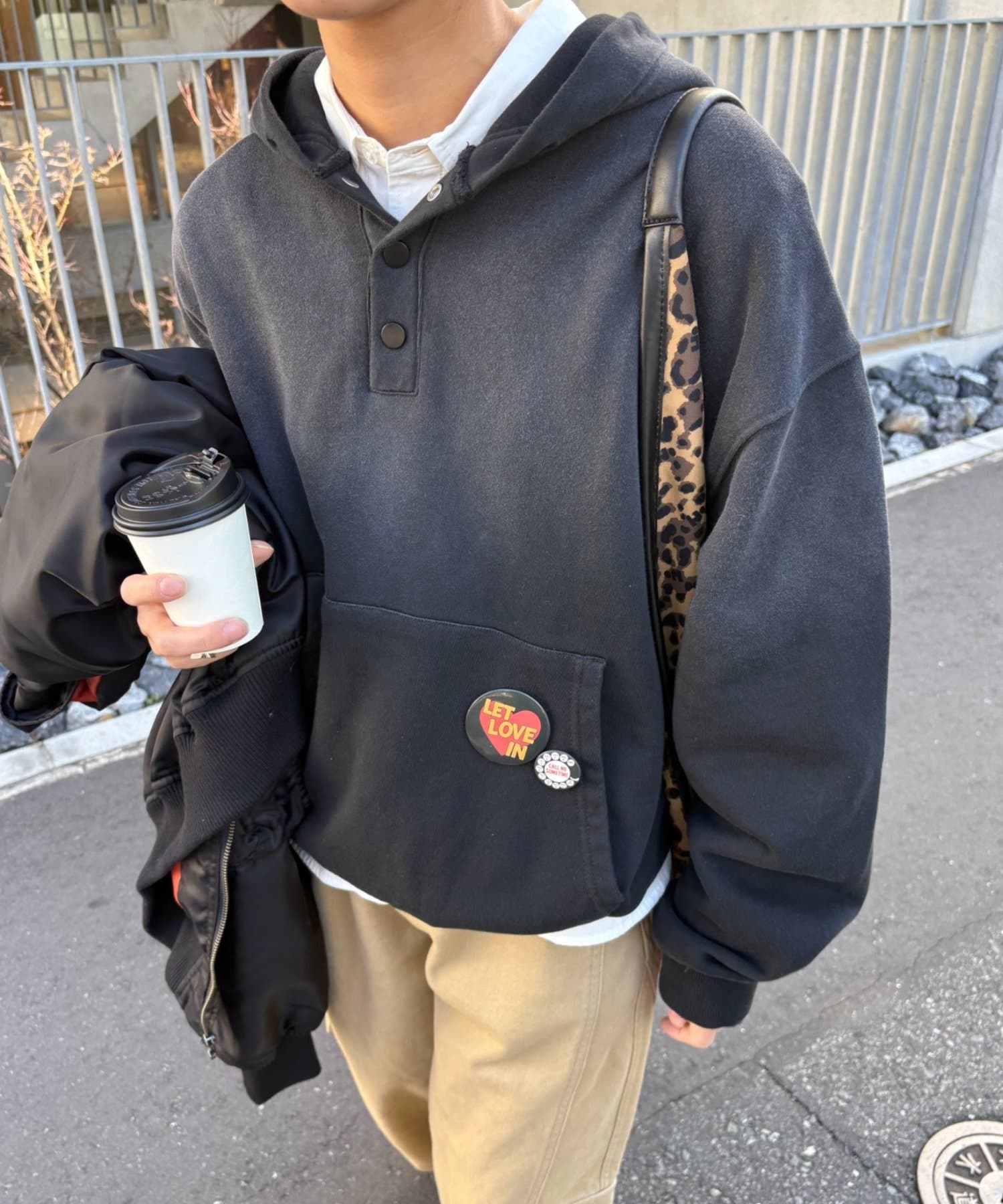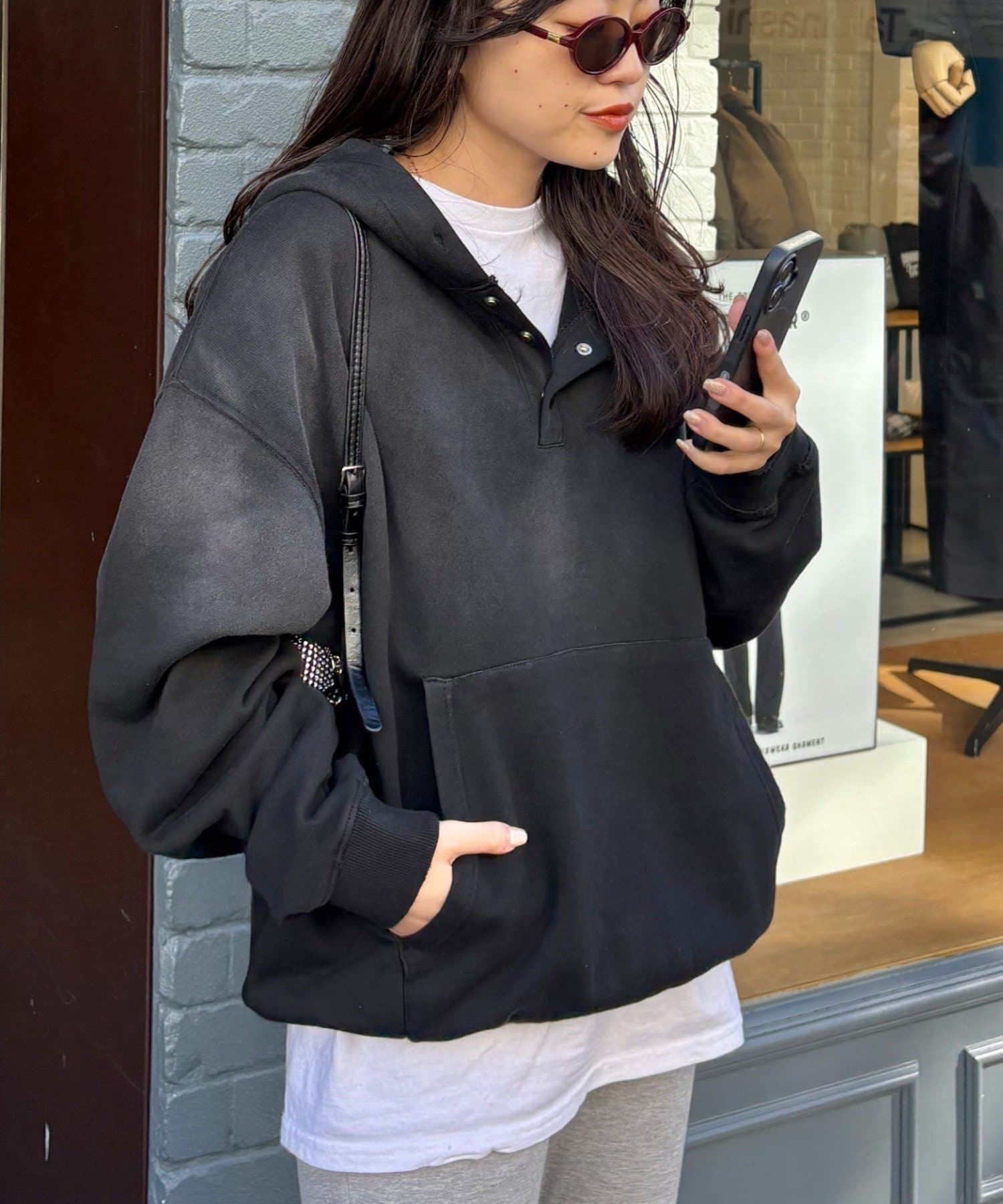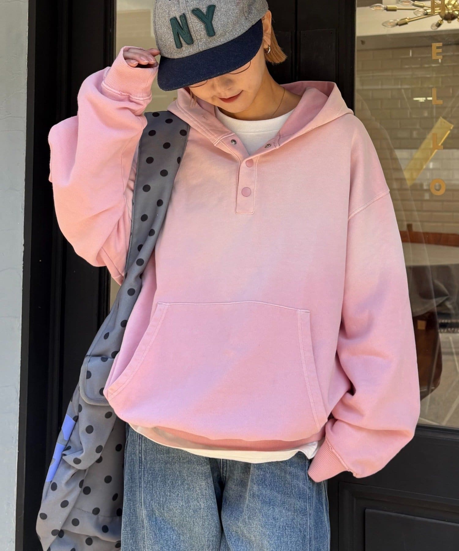 【こなれ感UP&垢抜け】スプレー加工ヘンリースナップフーディー