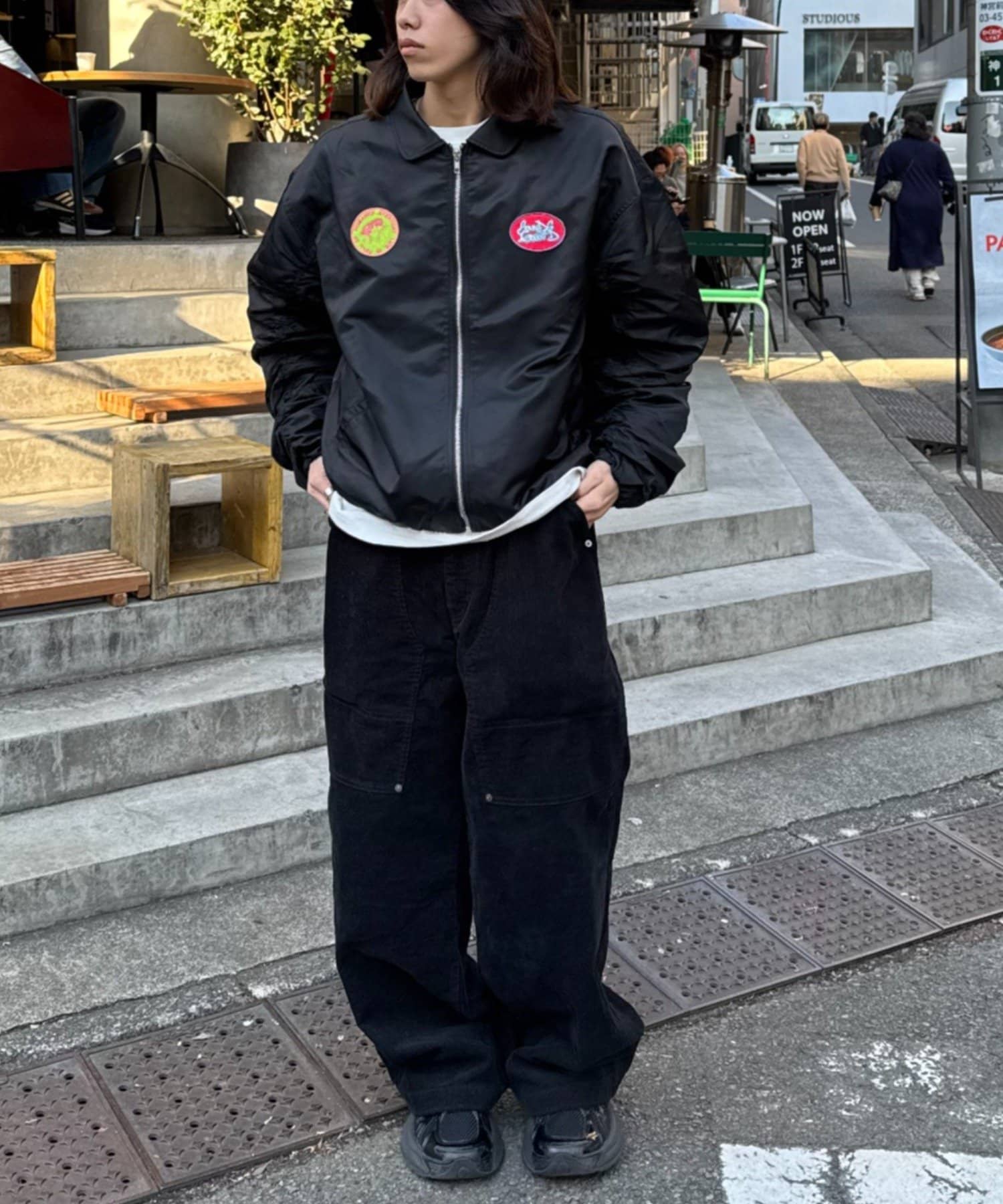 フロントを飾る個性的なワッペンが、一際目を引くジップアップブルゾン。