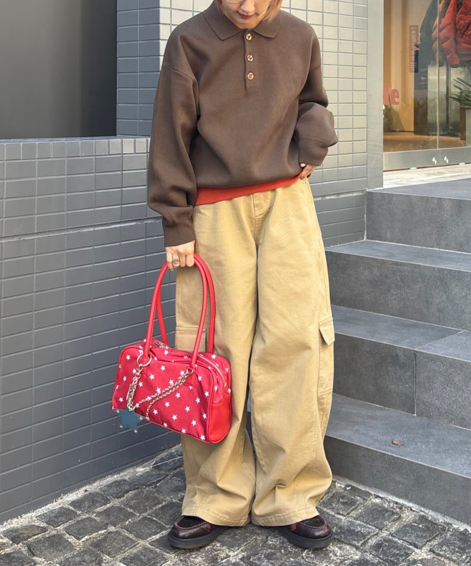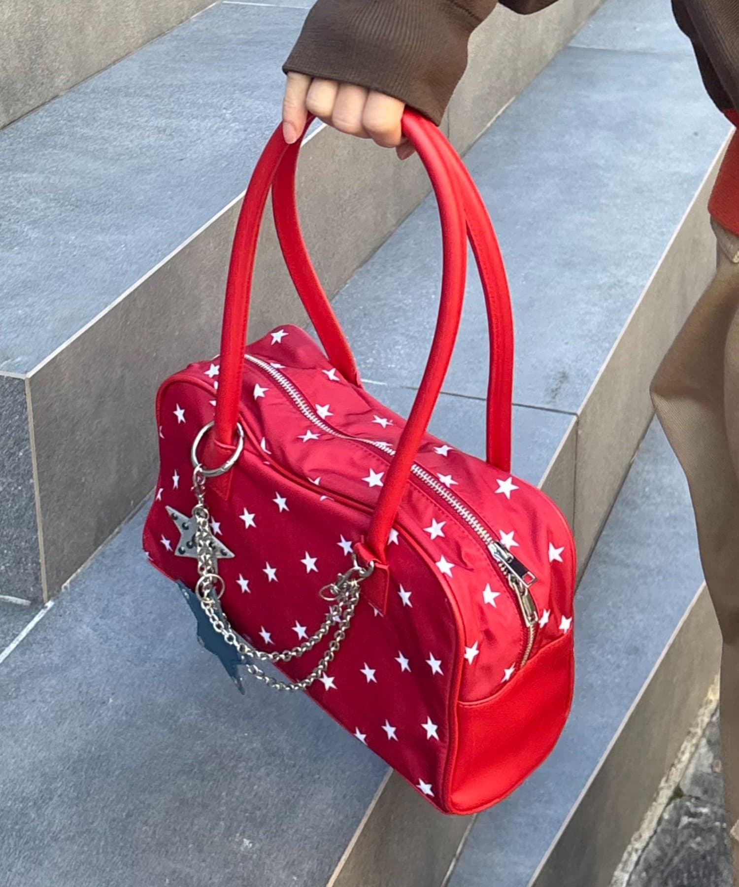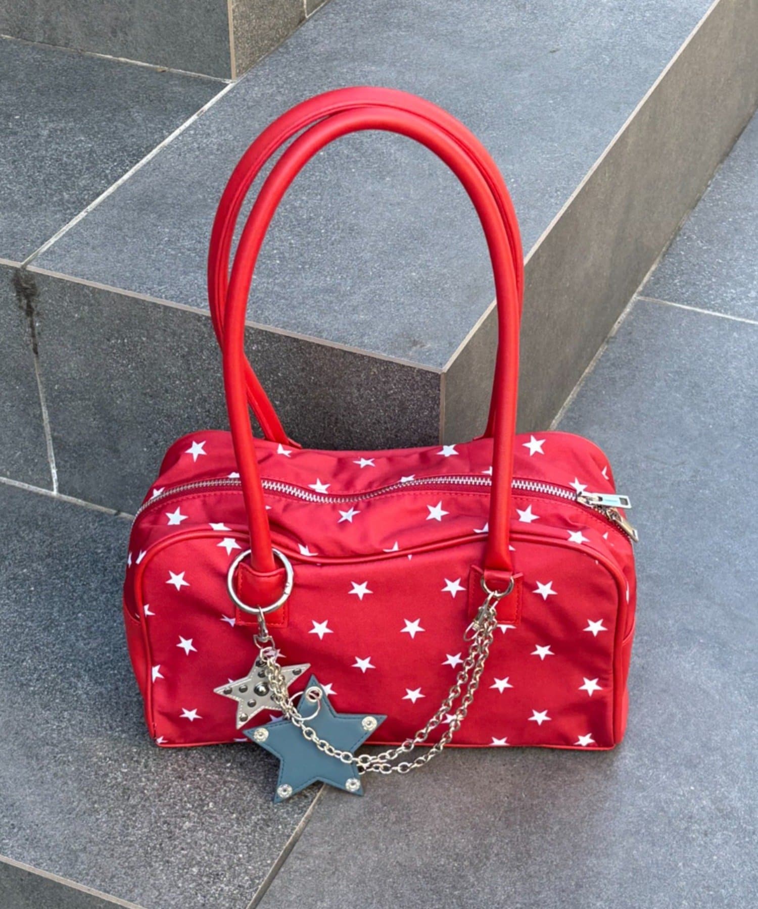 【UNISEX】星チャーム付きアソート柄ボストンBAG