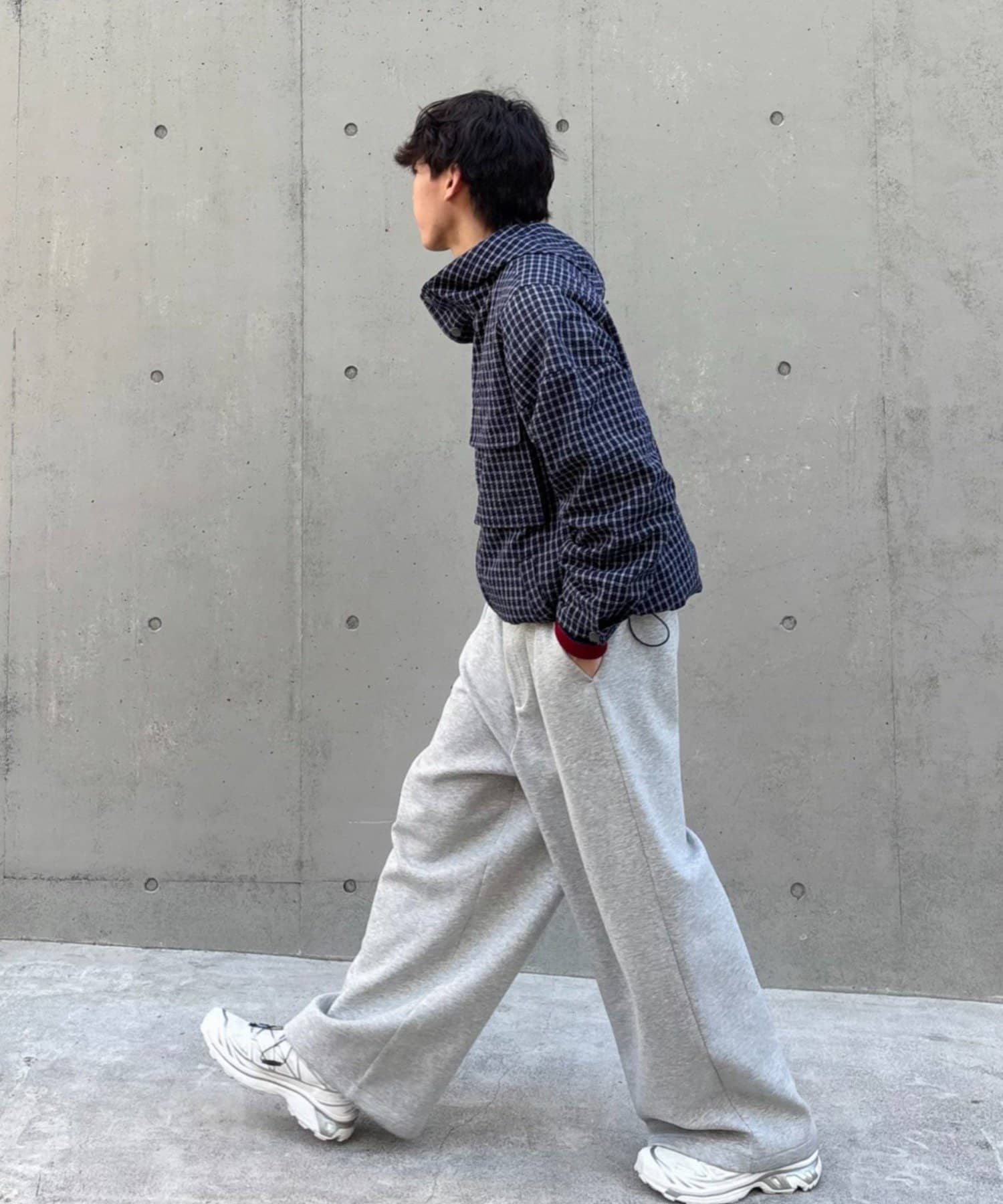 ≪26SS展示会アイテム≫【UNISEX】チェックフードシャウター
