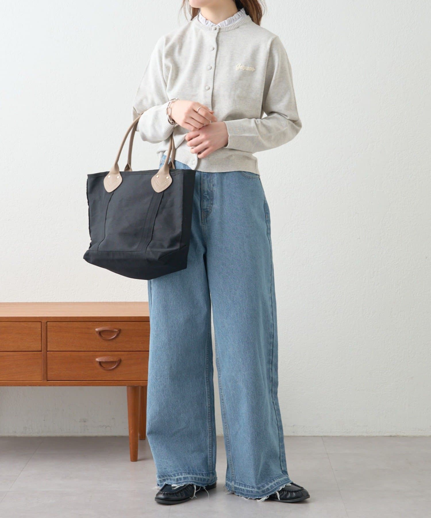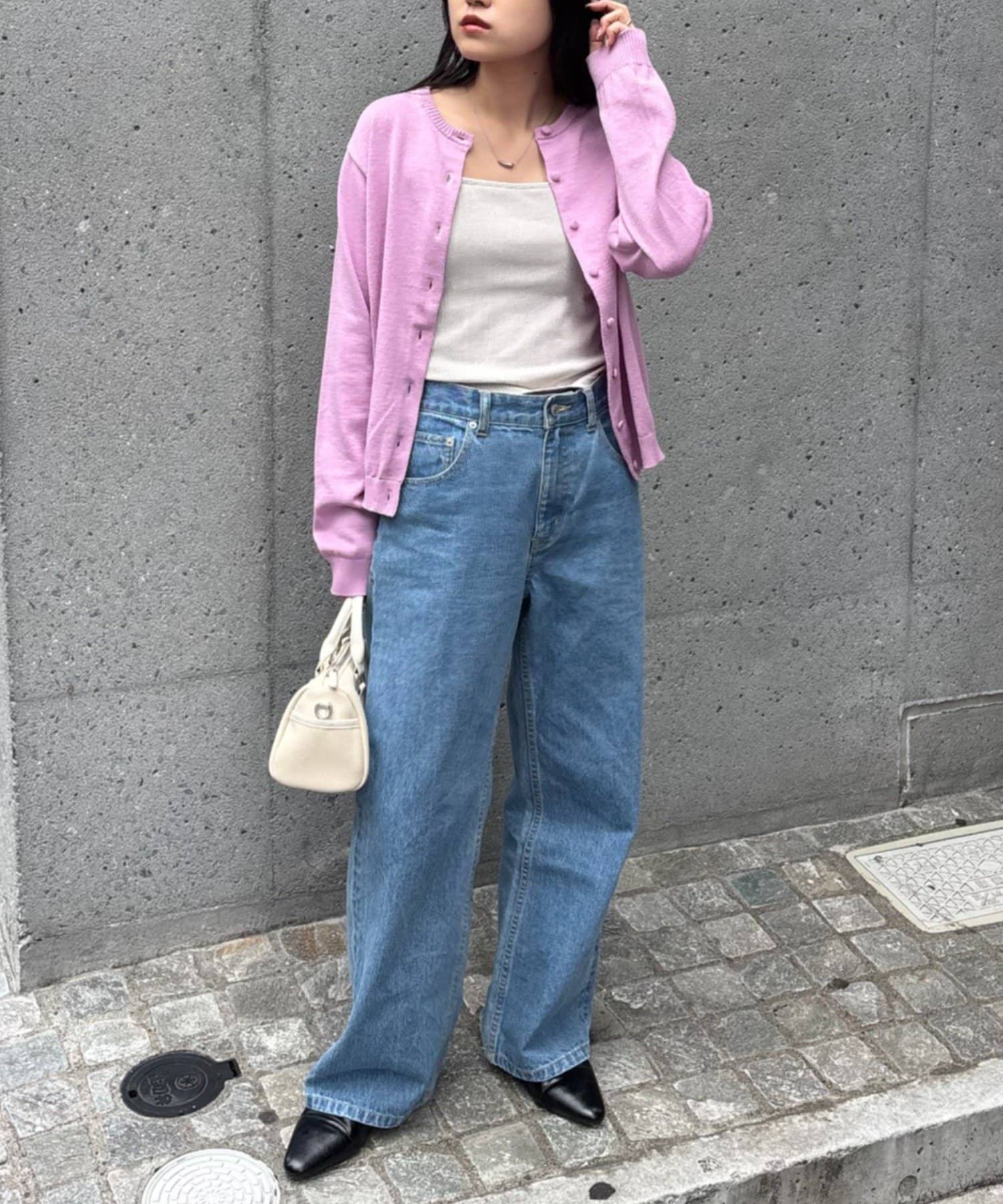 デニムやシンプルボトム合わせもお洒落な雰囲気にまとまるのが魅力です。
