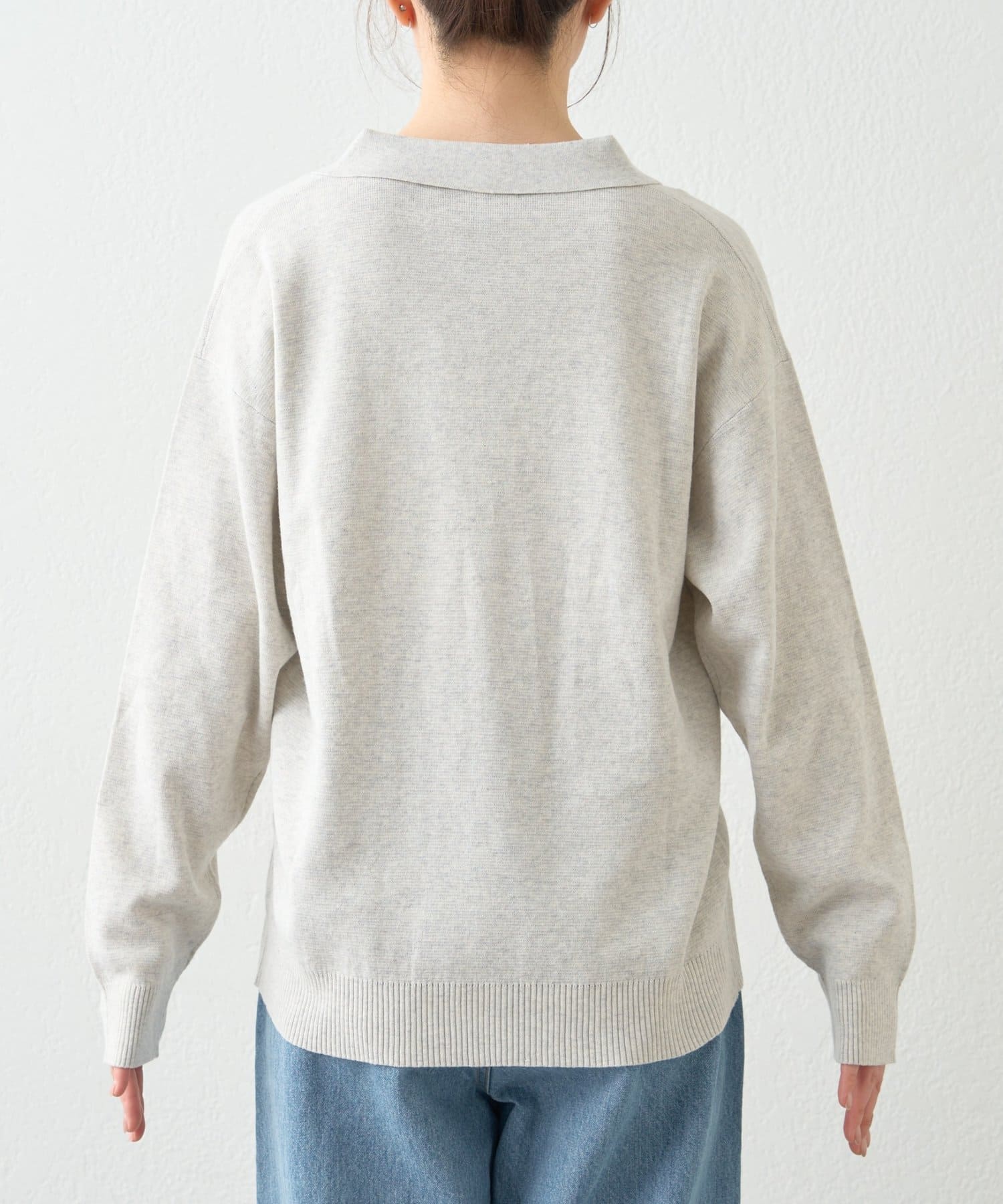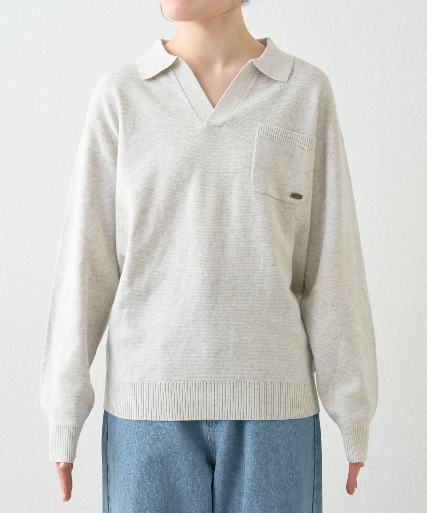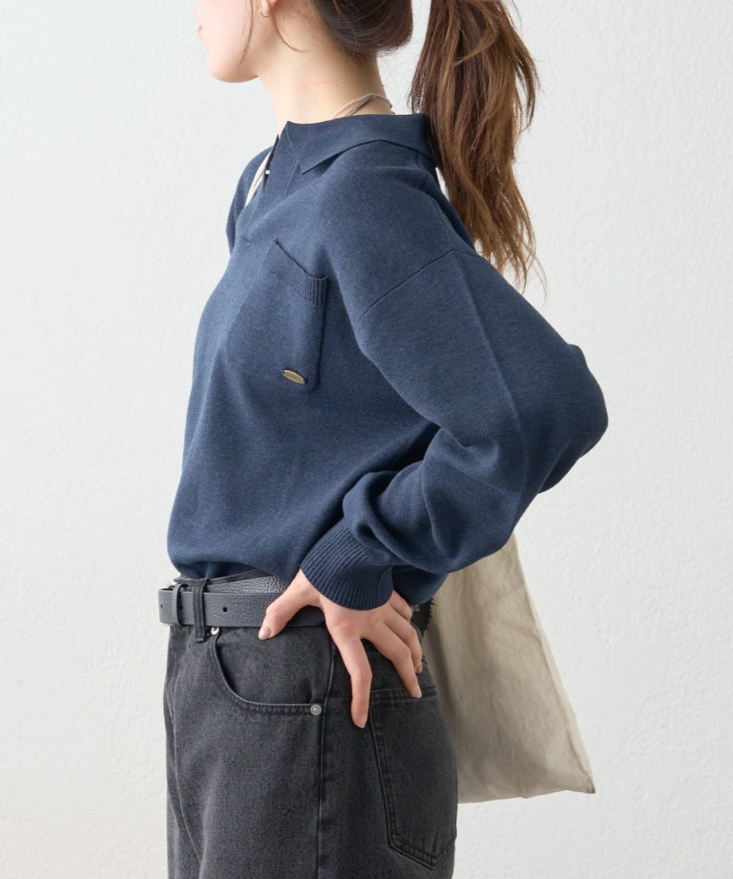 襟付きのスキッパーが程よいデザインのニットプルオーバー。
