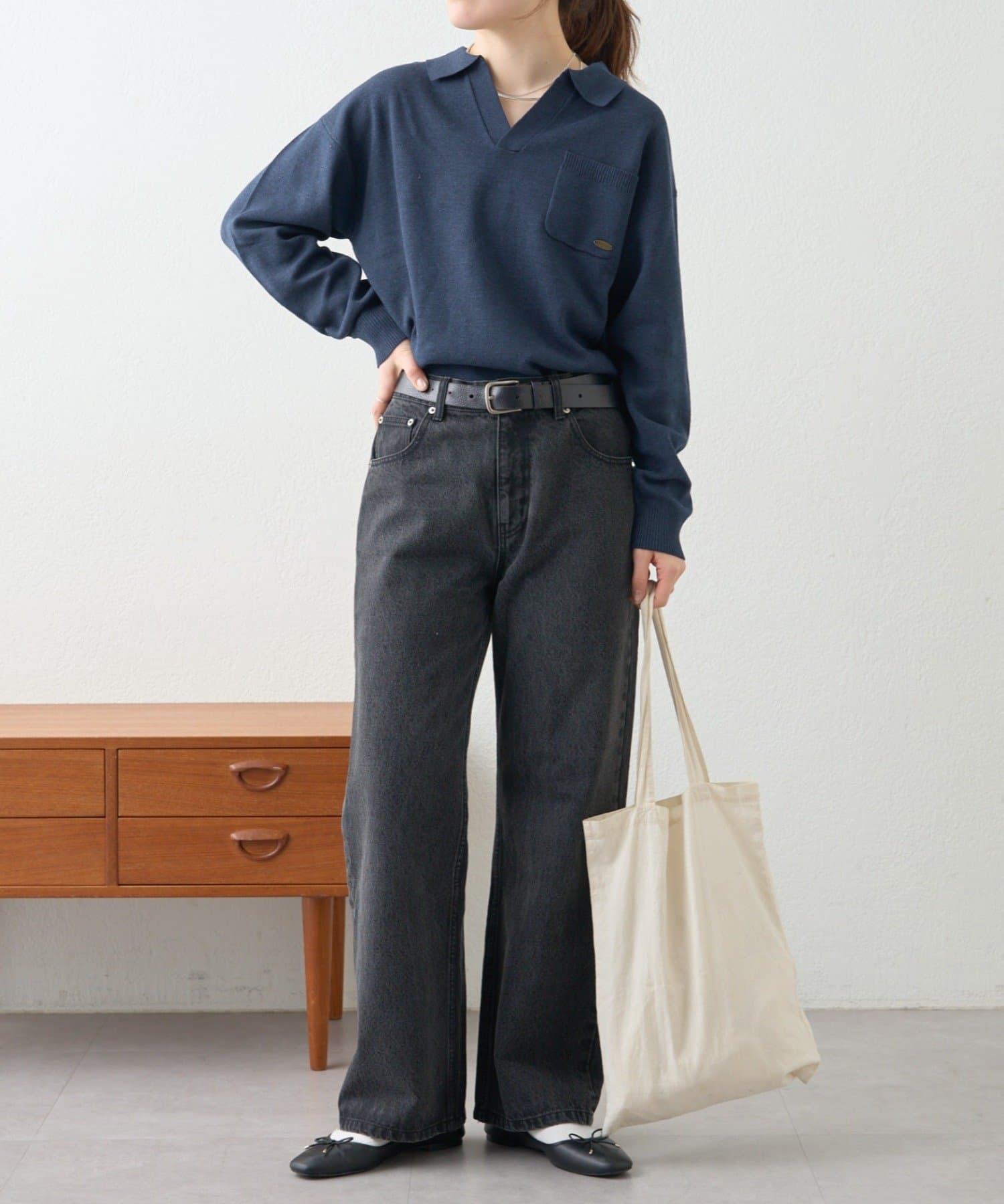 首元がすっきり見え、ニットでありながら重たくならず抜け感を演出◎