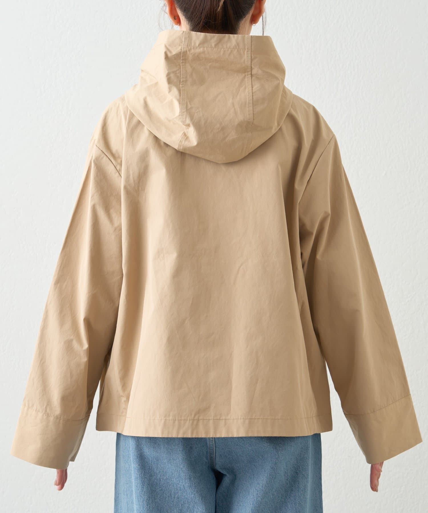 フード付きのデザインにすることでかっちりしすぎず、ラフに羽織れるフードジャケット。
