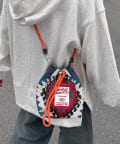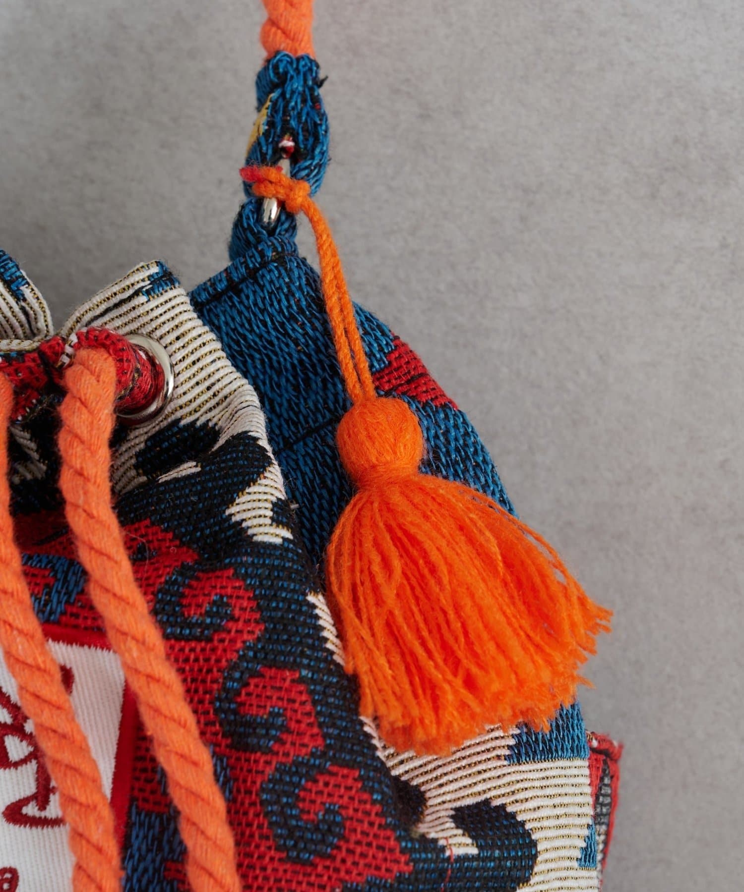 目を引くゴブラン生地と、鮮やかな色のロープが組み合わさった、ユニークな巾着ショルダーバッグが登場。