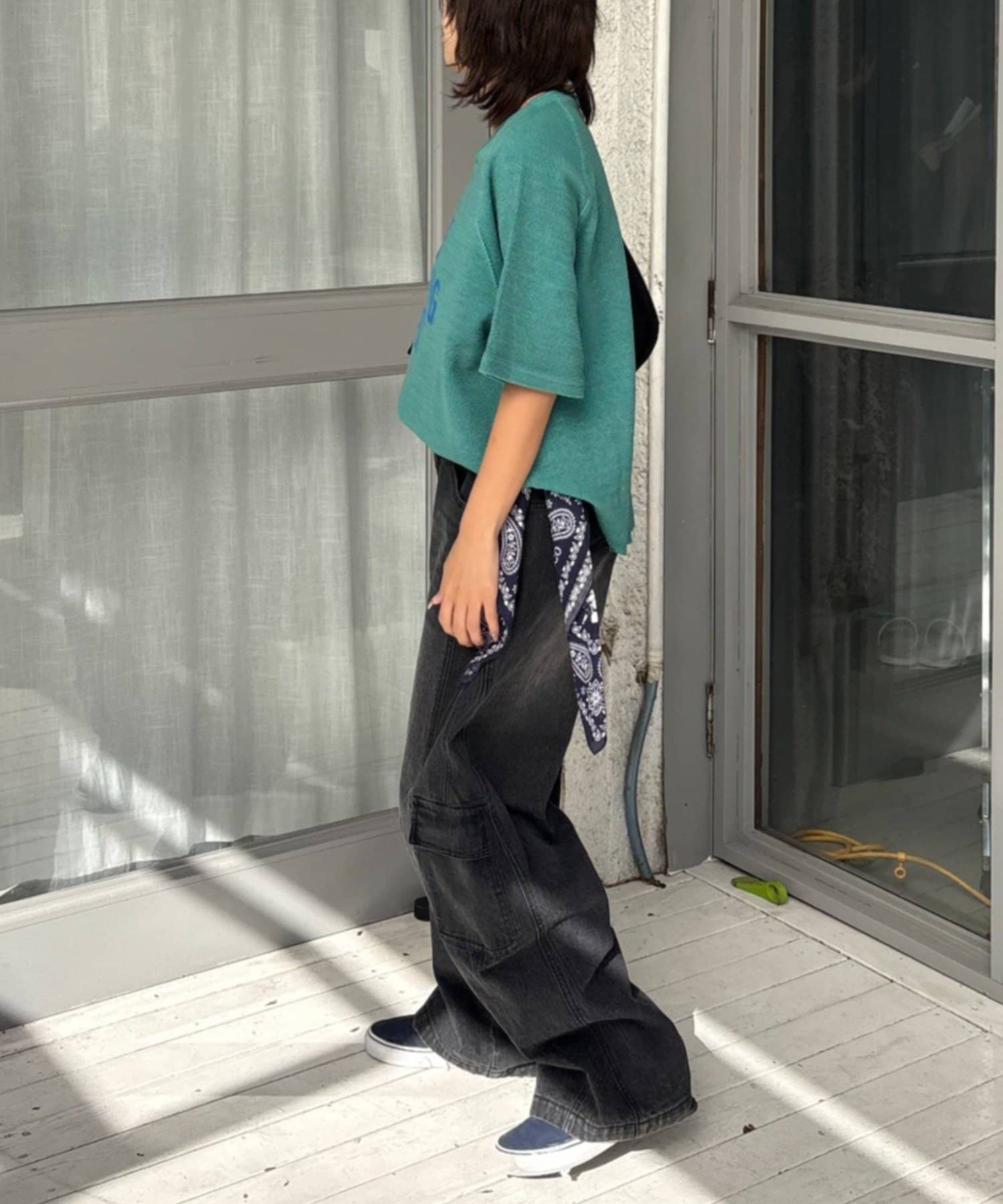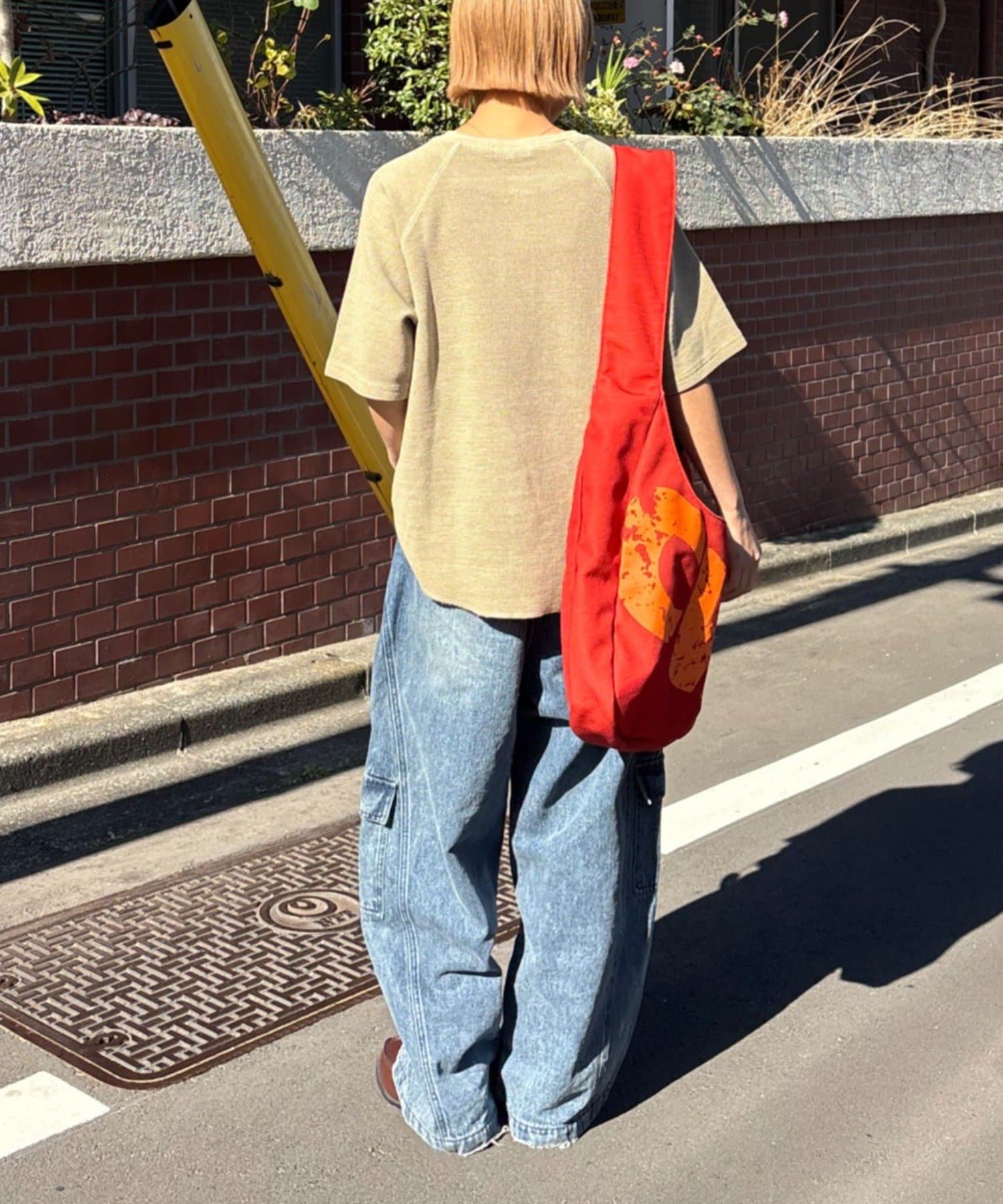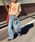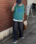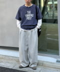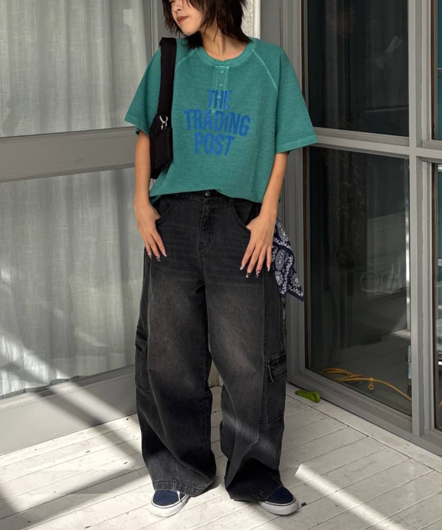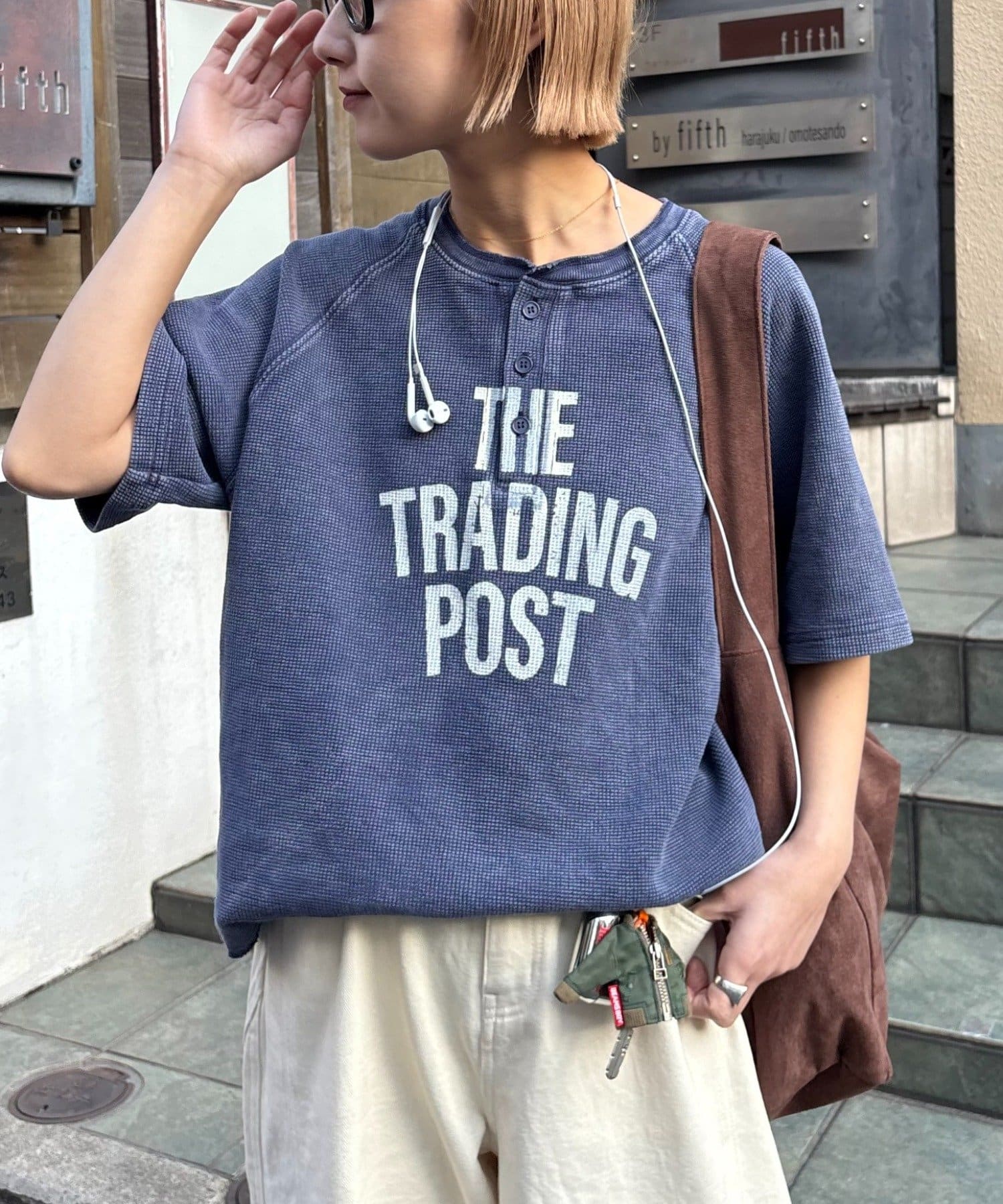 古着のような風合いのワッフル生地に、かすれたロゴプリントがこなれ感を演出します。