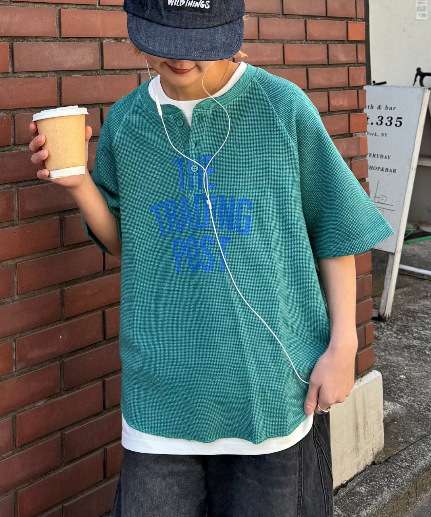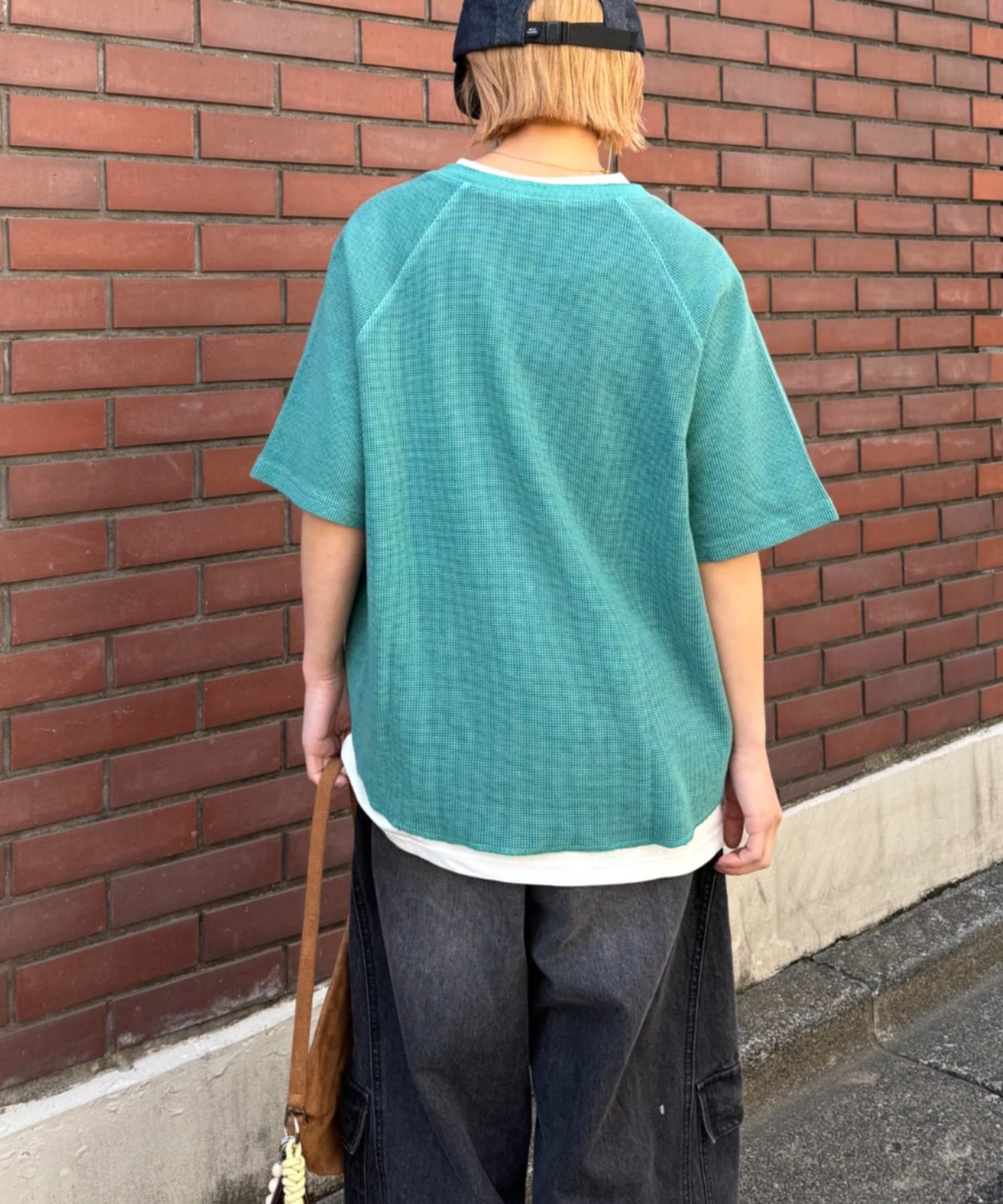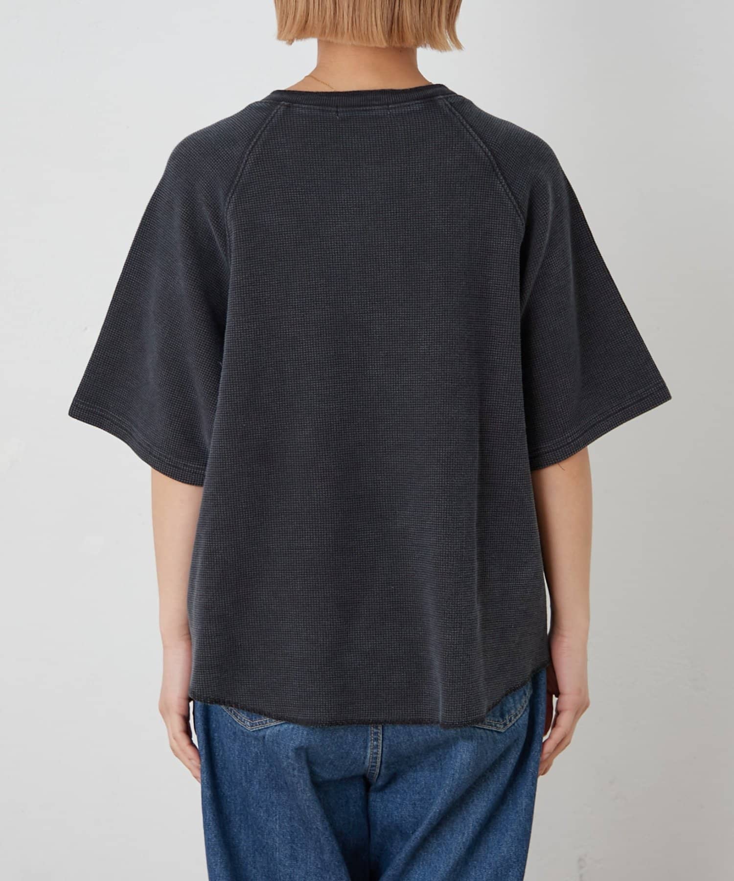【UNISEX】ピグメント加工ラグランワッフルヘンリーTEE